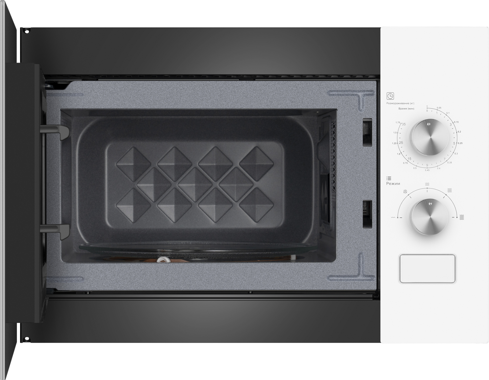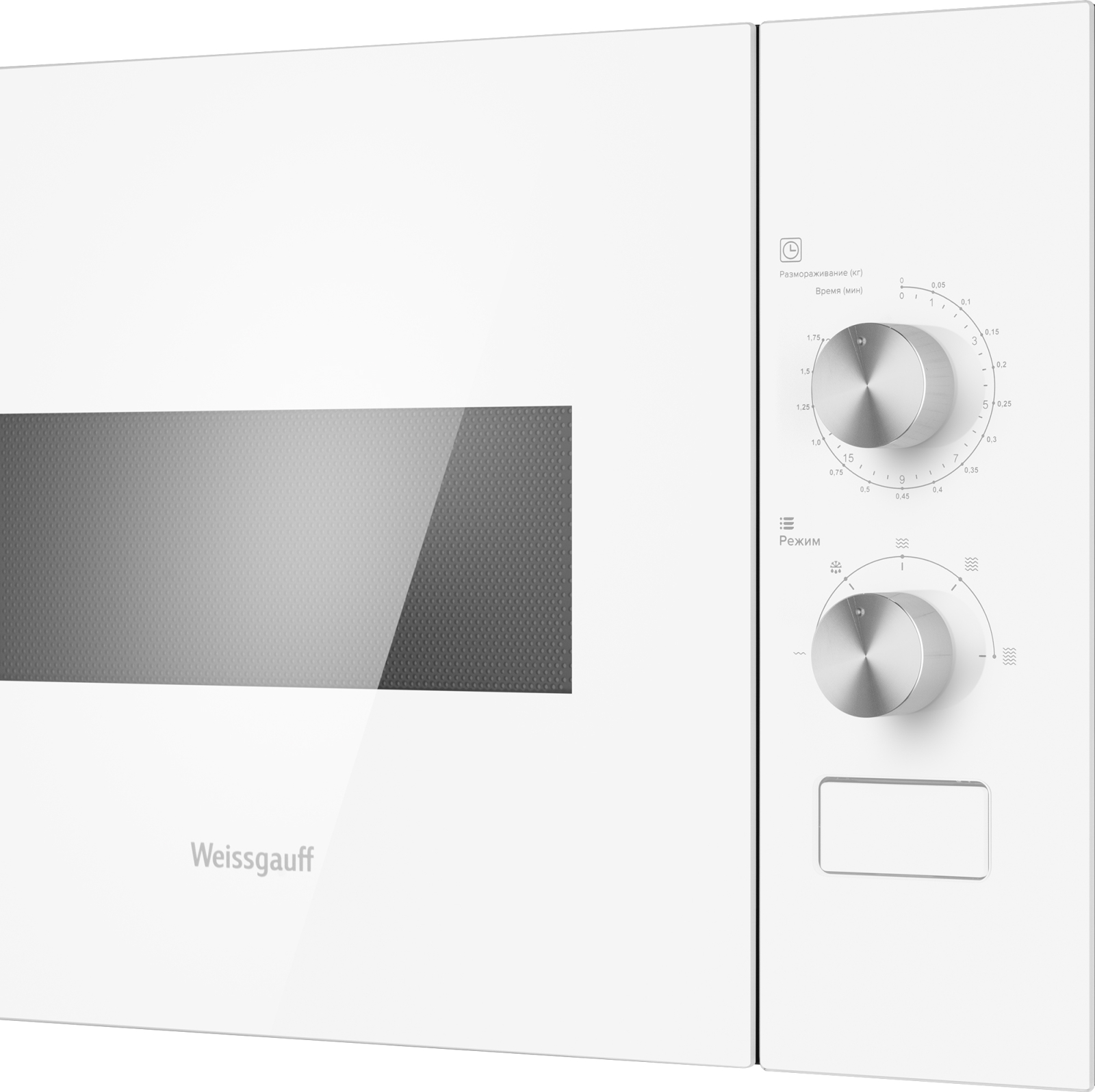 Встраиваемая микроволновая печь Weissgauff шириной 45 сантиметров, выполненная в белом закаленном стекле, оснащённая механическими поворотными рукоятками Soft Switch, имеющая объем 20 литров - это настоящее воплощение о