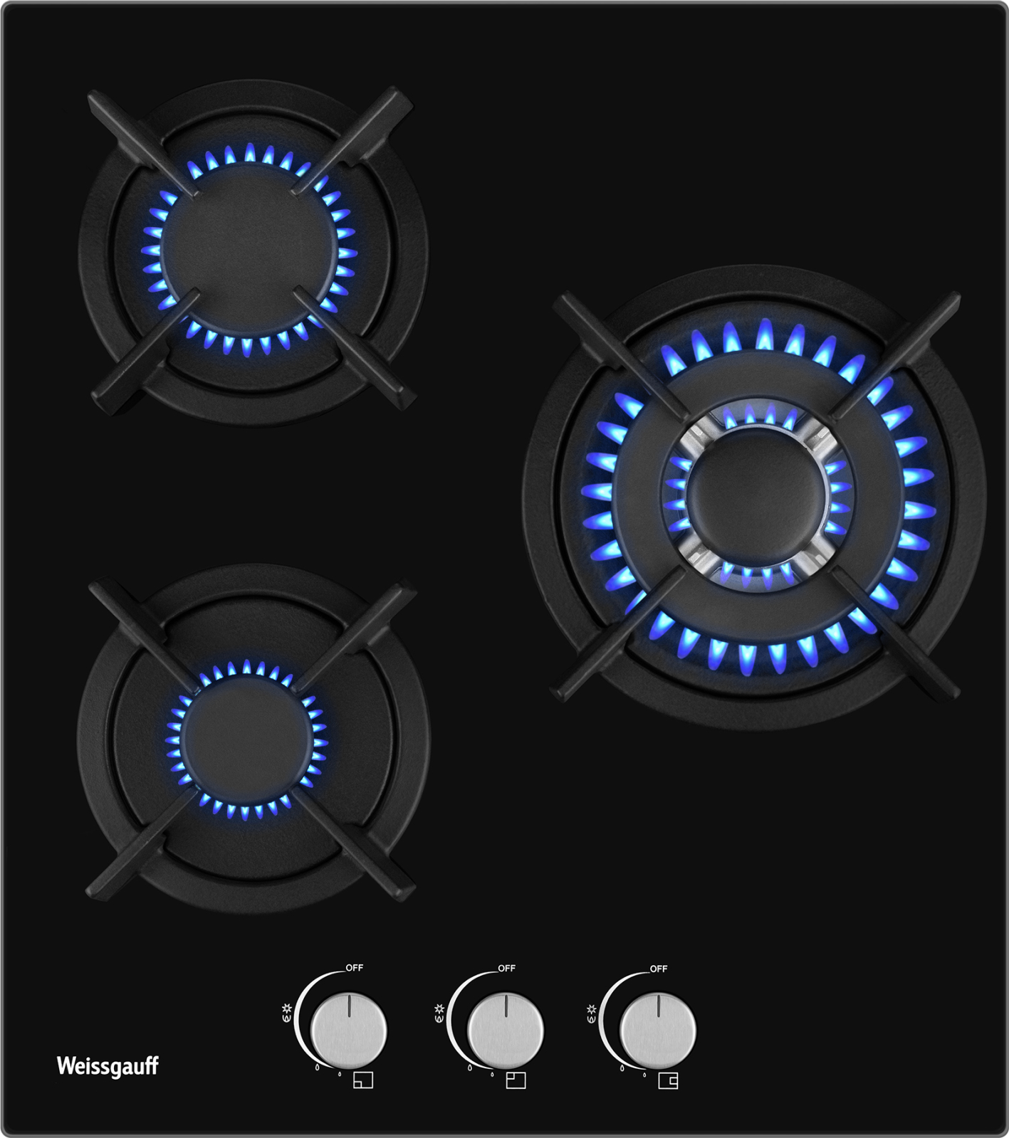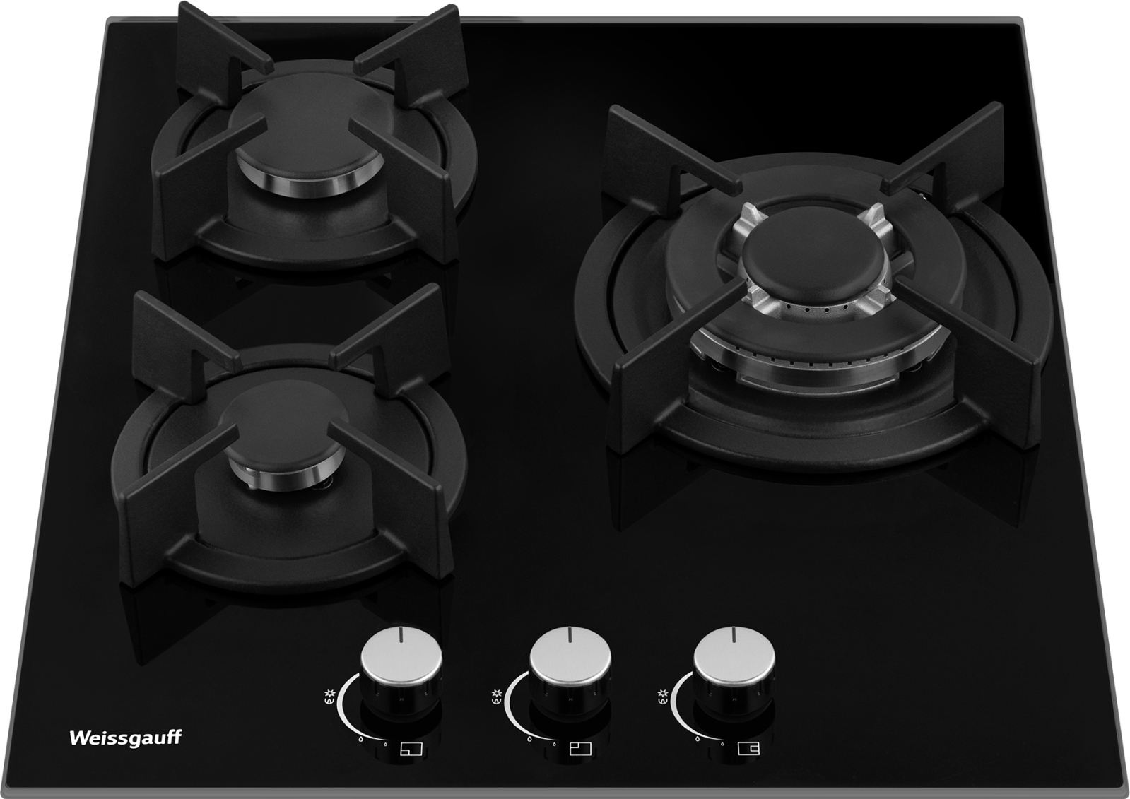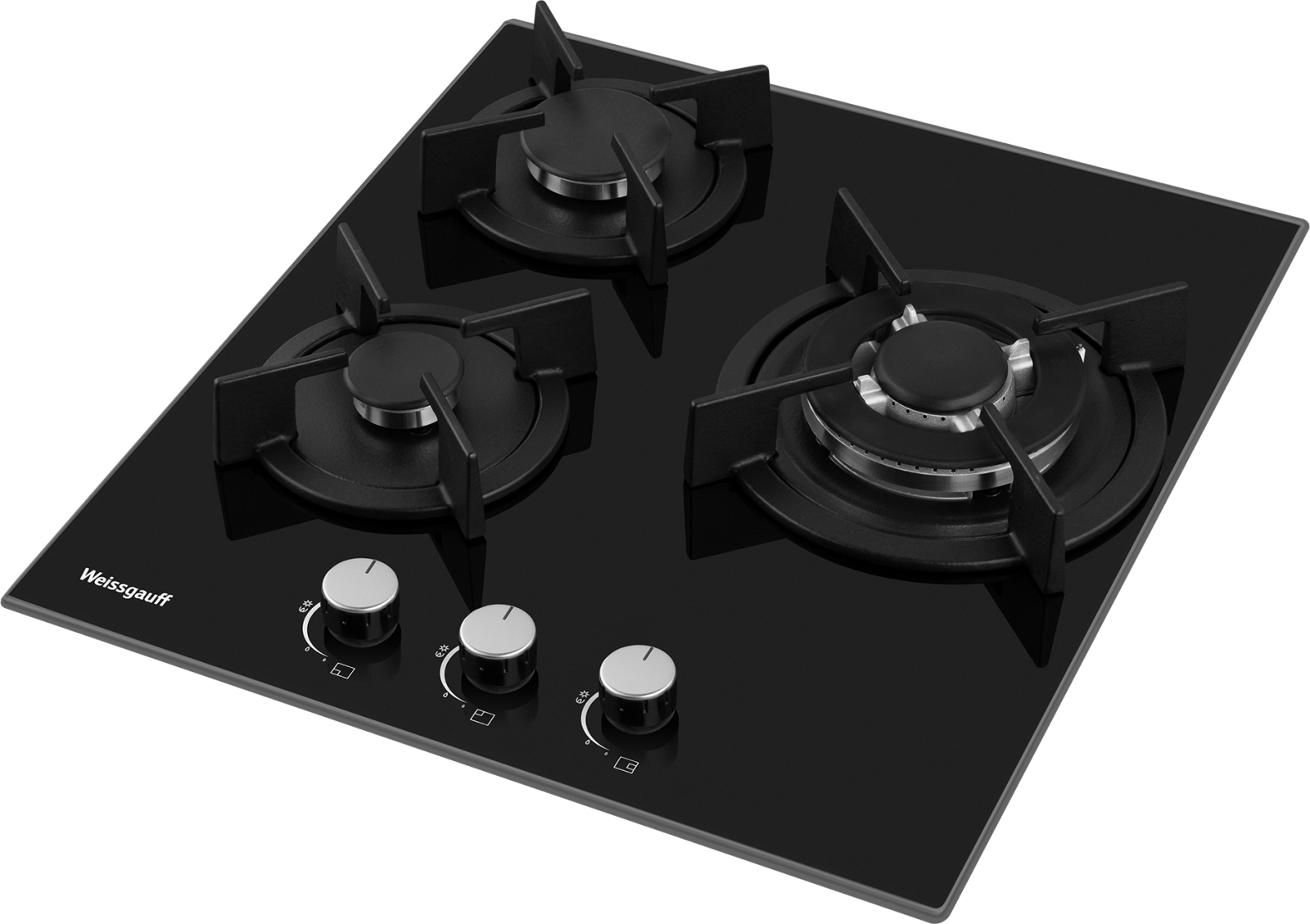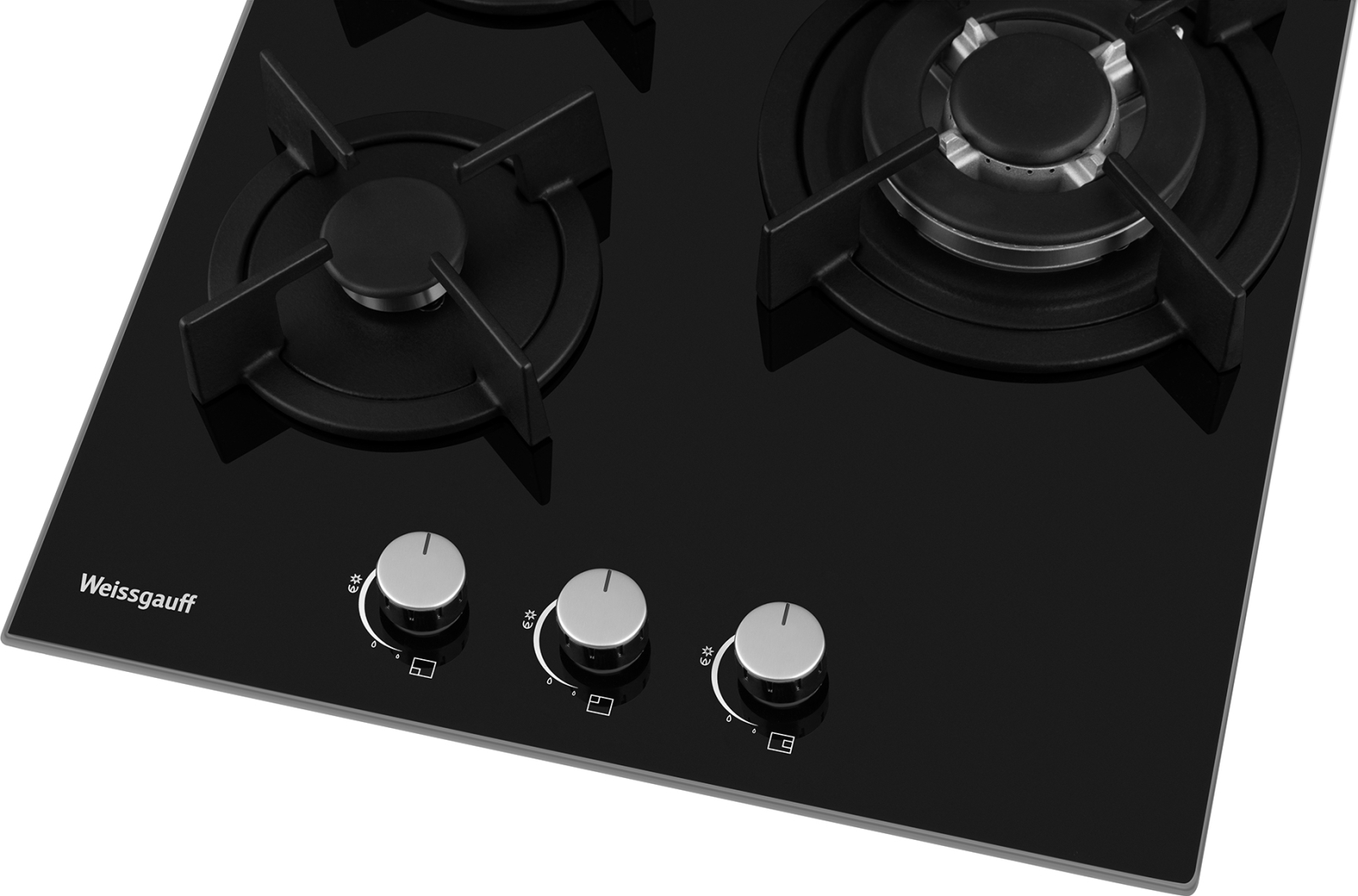 Встраиваемая независимая газовая панель Weissgauff шириной 45 см, исполненная в закалённом чёрном стекле - это стильное и компактное решение для вашей кухни!