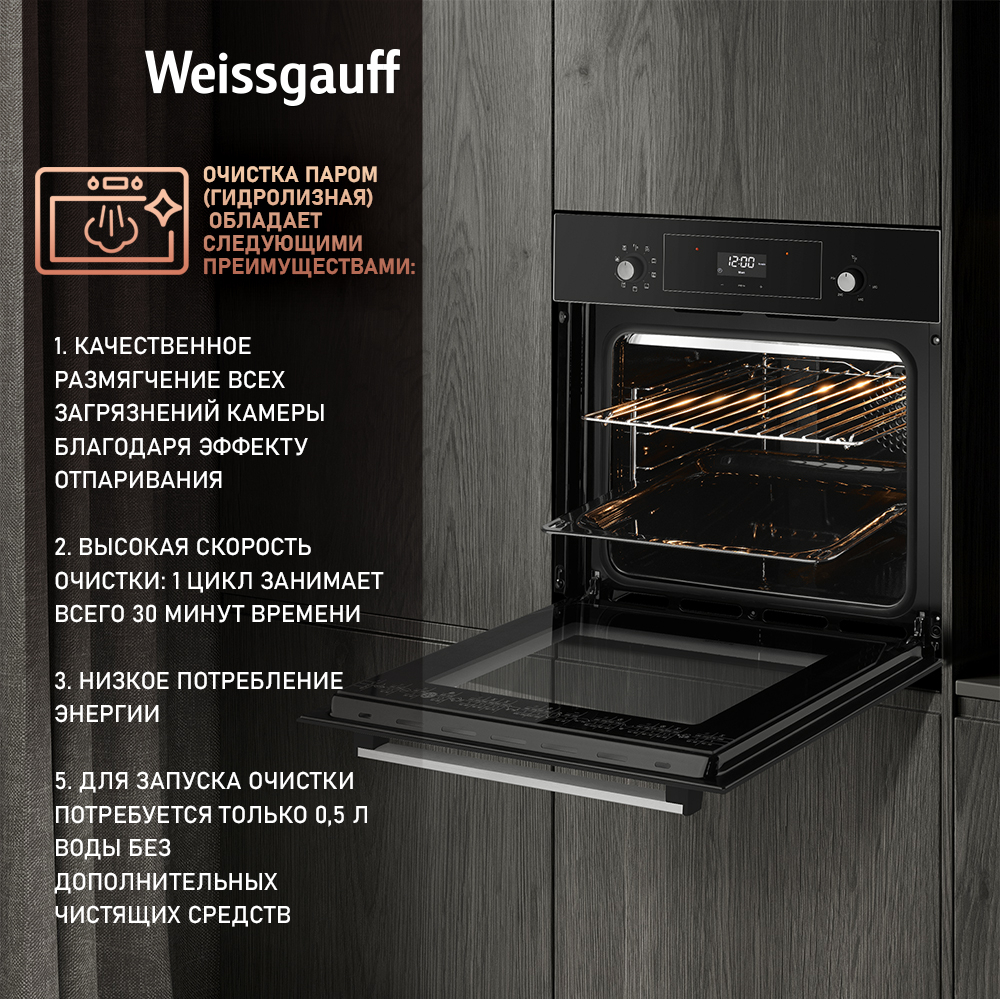 Удобный дисплей с сенсорным управлением - это настоящая гордость Weissgauff, ведь он не только является интуитивно понятным, но и великолепно реагирует на прикосновения с первого нажатия даже в том случае, если руки влажные или прохладные.