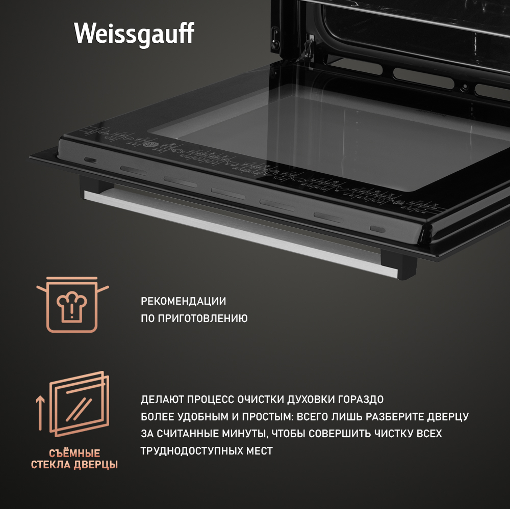 Тройное стекло дверцы, воплощающее в себе весь подход к безопасности и термозащите, который Weissgauff реализовали в данной модели. Такое стекло обеспечивает вам значительно большую степень защиты при случайных прикосновениях к нагревающейся дверце плиты, чем в моделях, не оснащенных технологией многослойного стекла. Для нас в Weissgauff важно, чтобы работа с бытовой техникой была не только приятной, но и безопасной!