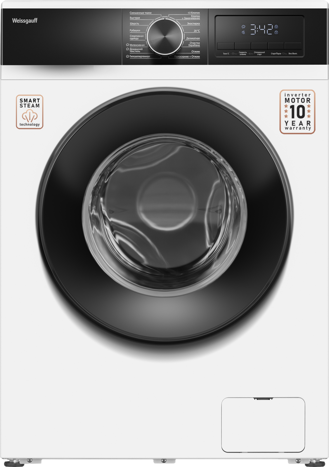 Отдельностоящая стиральная машина Weissgauff, оснащенная инверторным двигателем работающим по особой технологии BLDC и функцией пара, имеющая показатели загрузки до 7 кг белья и скорости отжима до 1200 оборотов в минуту - это настоящее качество по разумной цене!