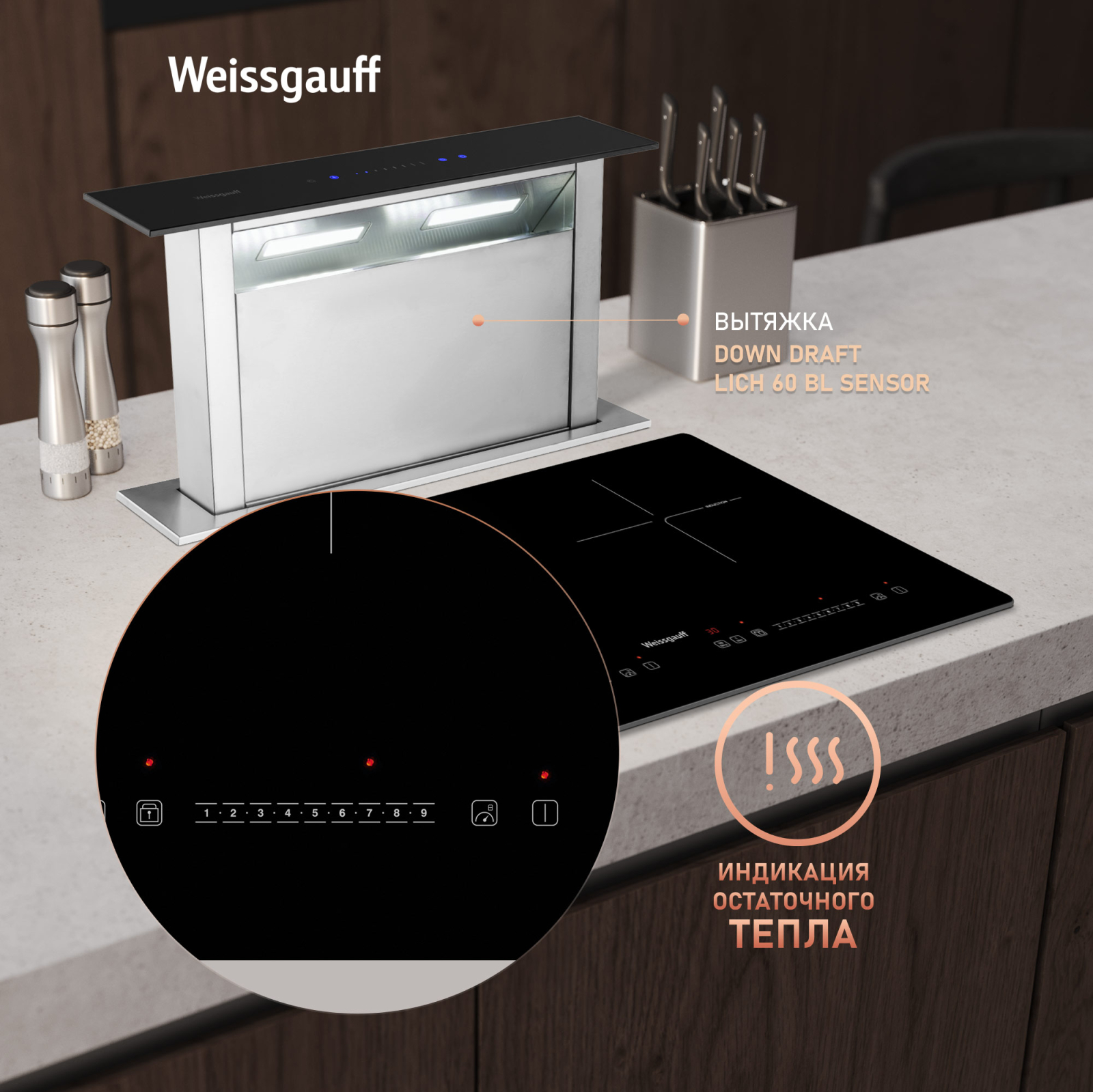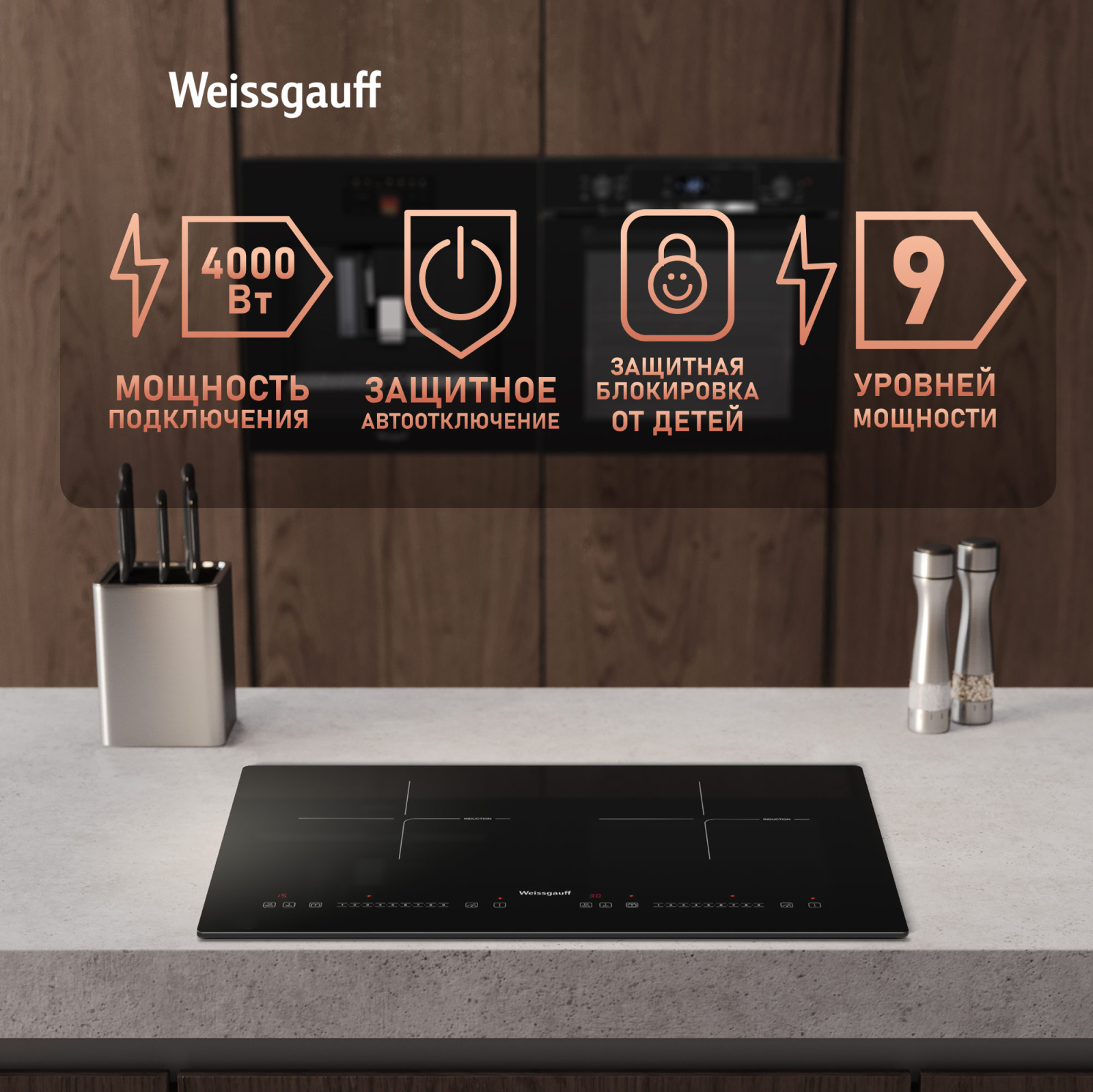 Индукционная панель Weissgauff с горизонтальным расположением конфорок, оснащённая слайдерным управлением - это истинное воплощение компактности, технологичности и удобства!