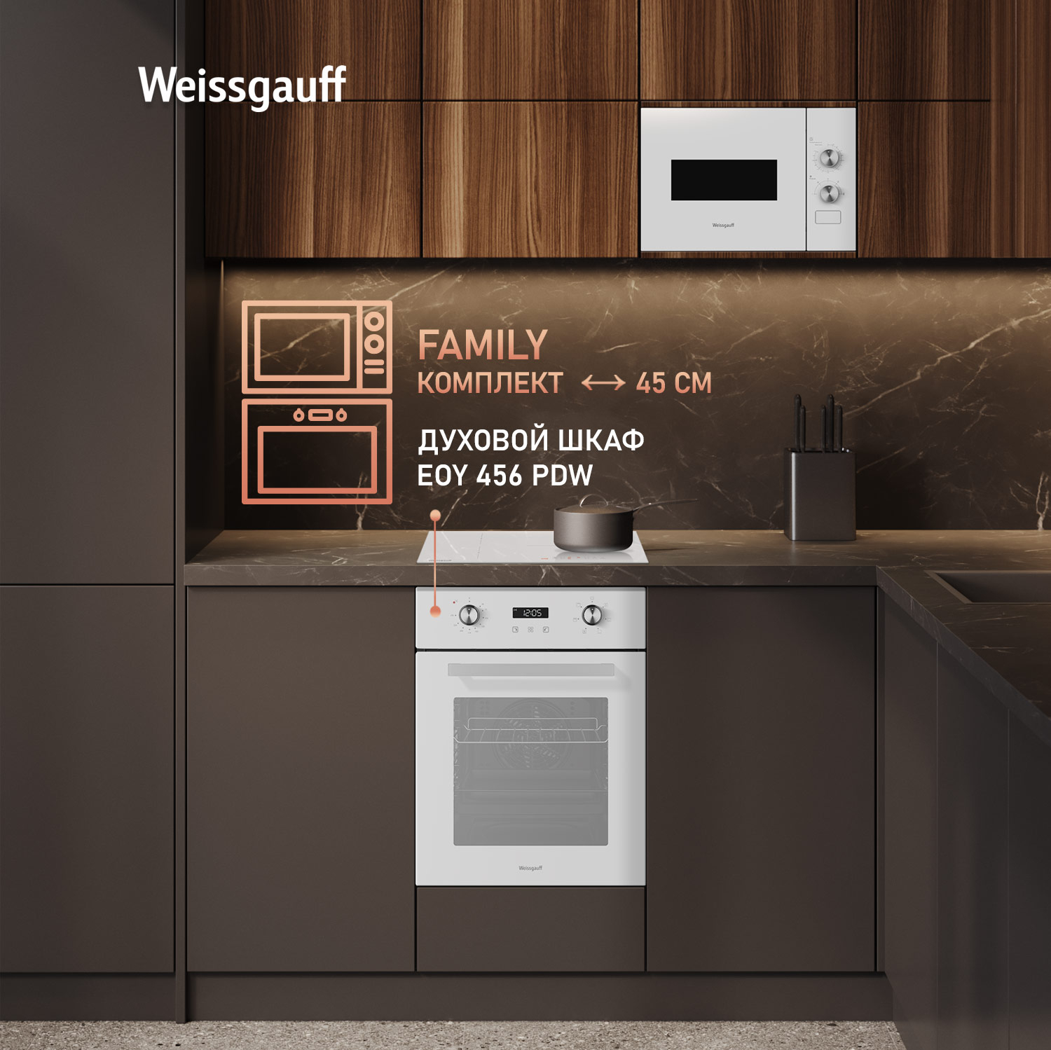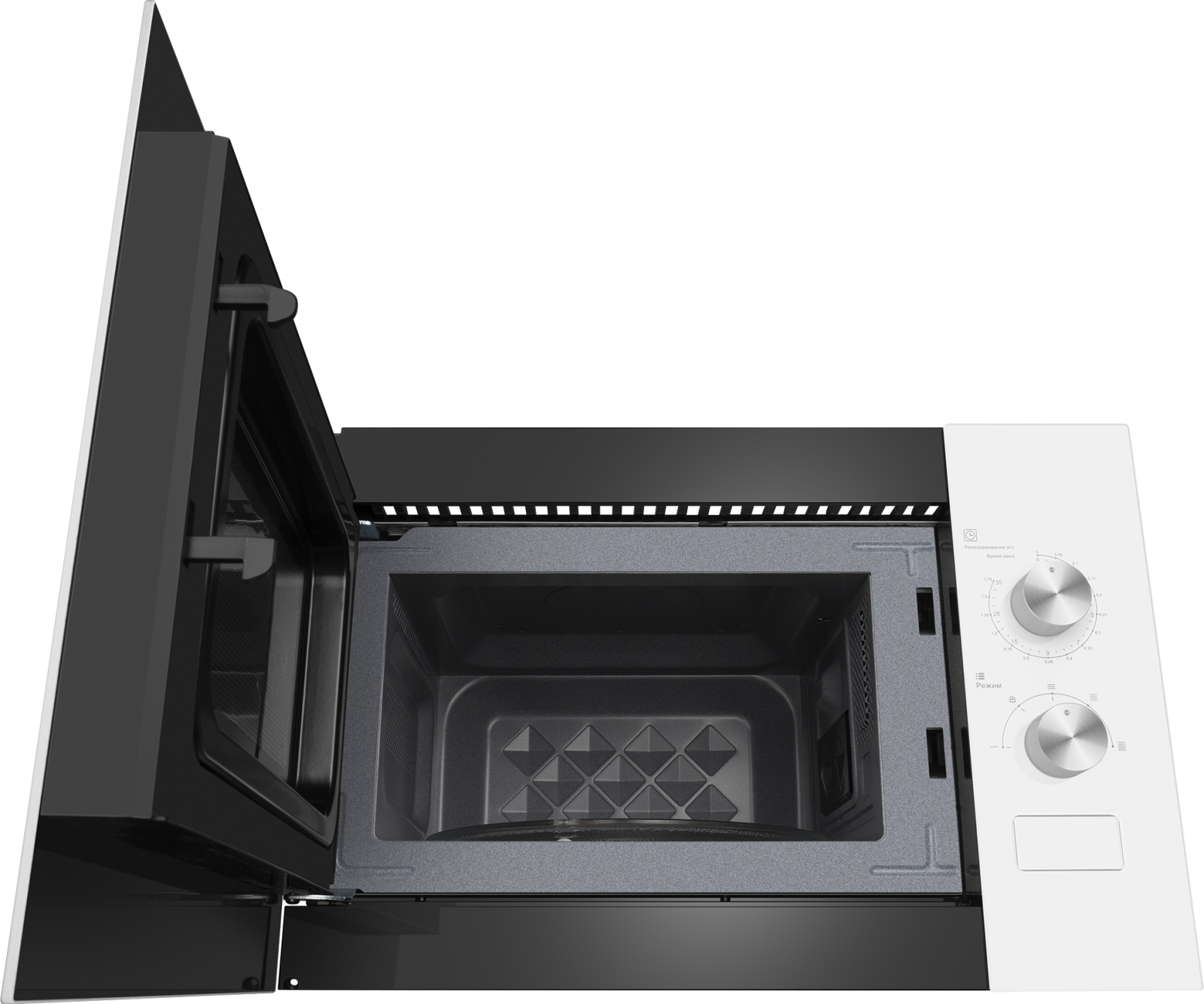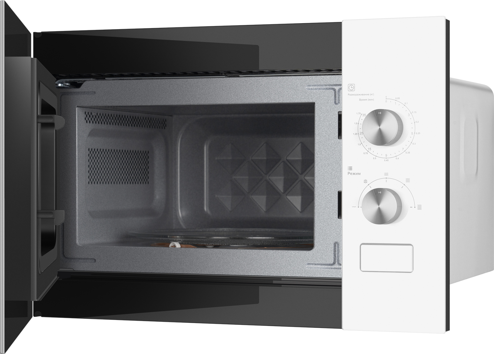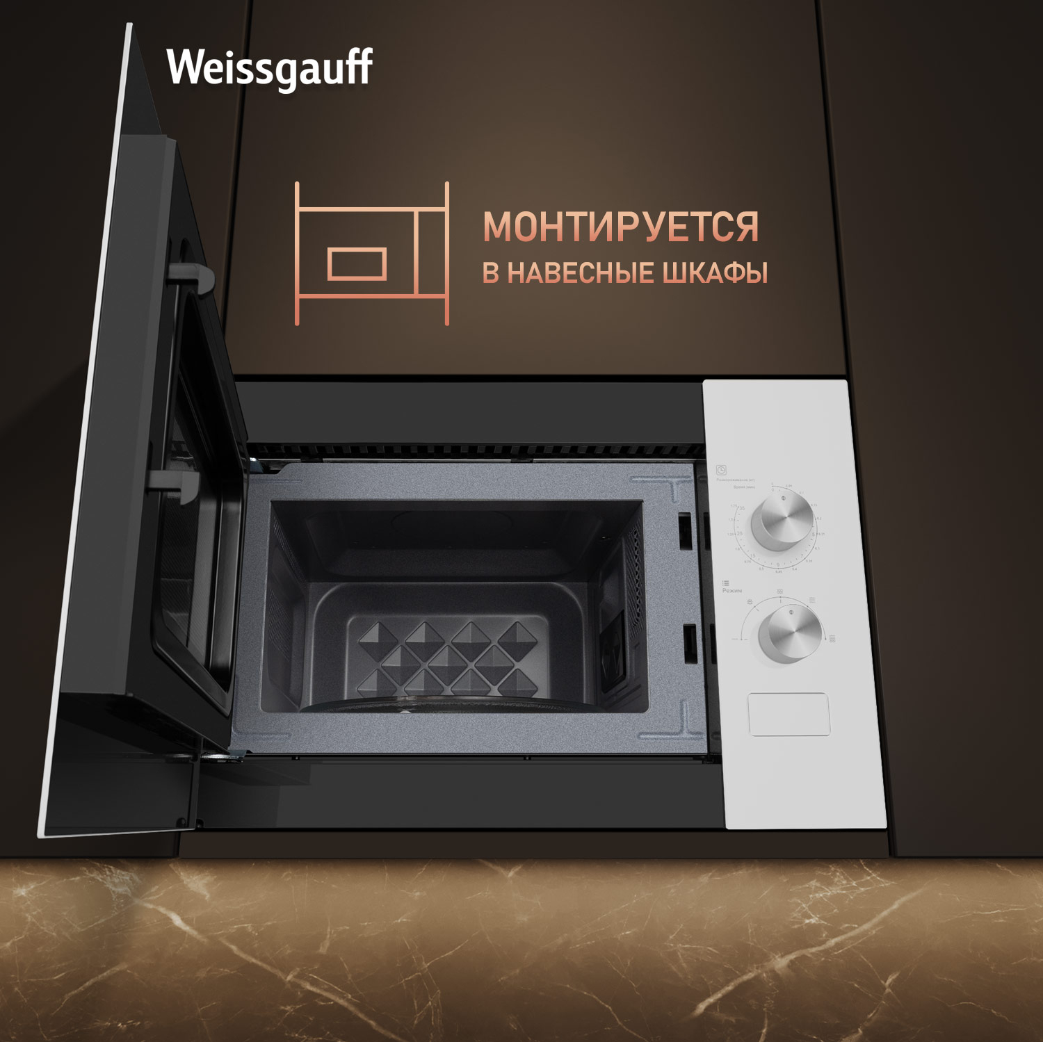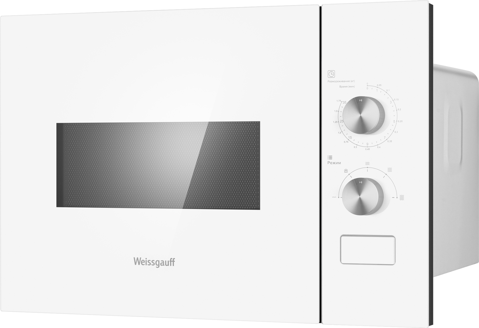 Встраиваемая микроволновая печь Weissgauff шириной 45 сантиметров, выполненная в белом закаленном стекле, оснащённая механическими поворотными рукоятками Soft Switch, имеющая объем 20 литров - это настоящее воплощение о