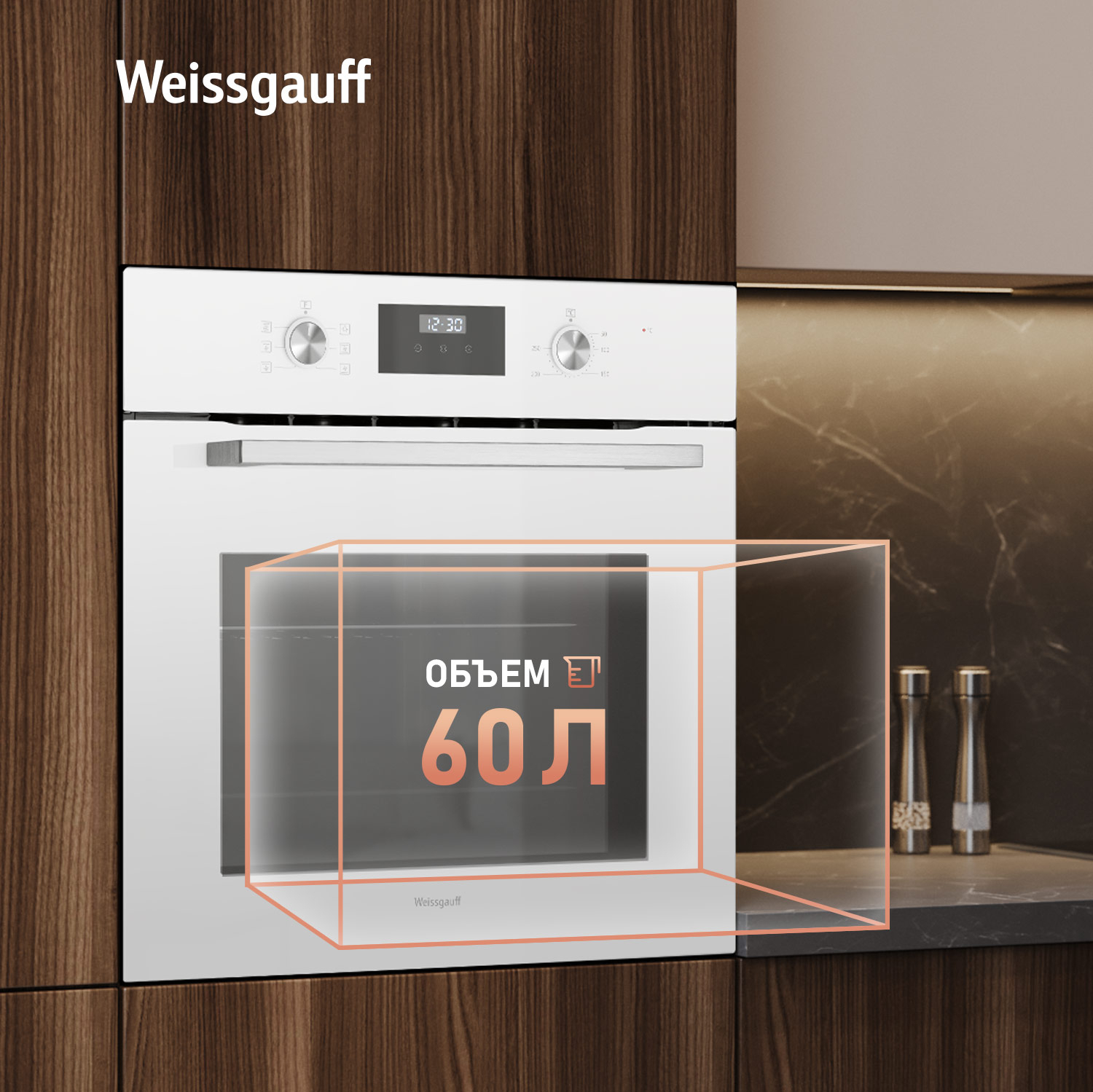 Дизайн в Белом цвете - станет финальным штрихом в совершенстве облика этой модели. Каждый раз, взаимодействуя с духовым шкафом от Weissgauff, вы будете в полной мере ощущать, как он способен нагревать не только еду, но и согревать душу, став настоящим сердцем вашего уютного домашнего очага