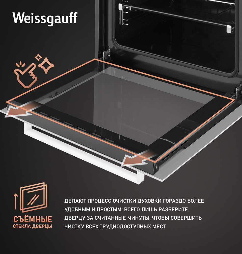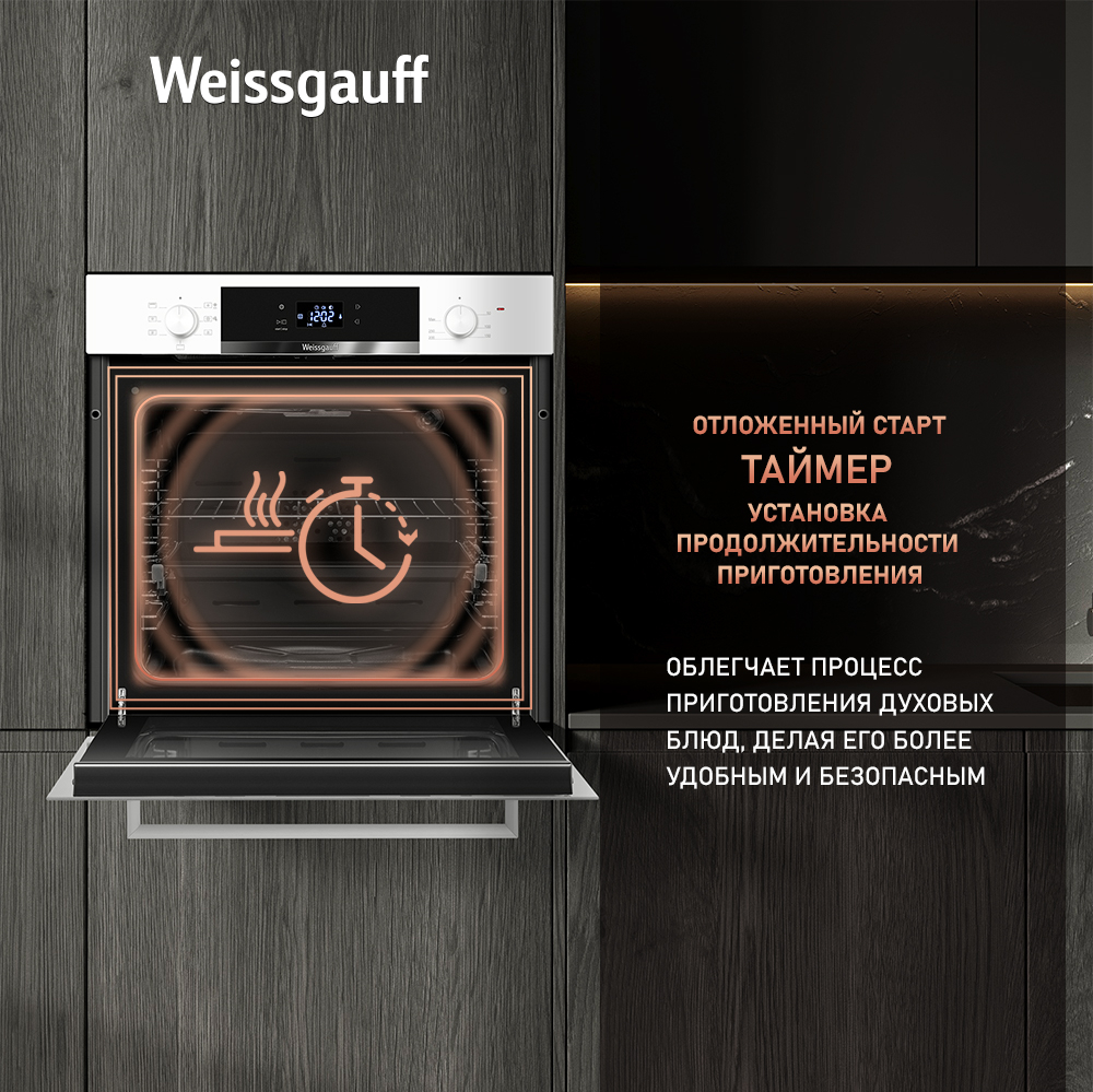 • Великолепный дизайн, станет финальным штрихом в совершенстве облика этой модели. Каждый раз, взаимодействуя с духовым шкафом от Weissgauff, вы будете в полной мере ощущать, как он способен нагревать не только еду, но и согревать душу, став настоящим сердцем вашего уютного домашнего очага.