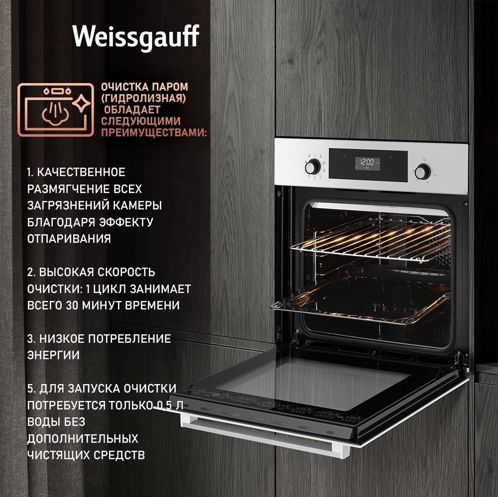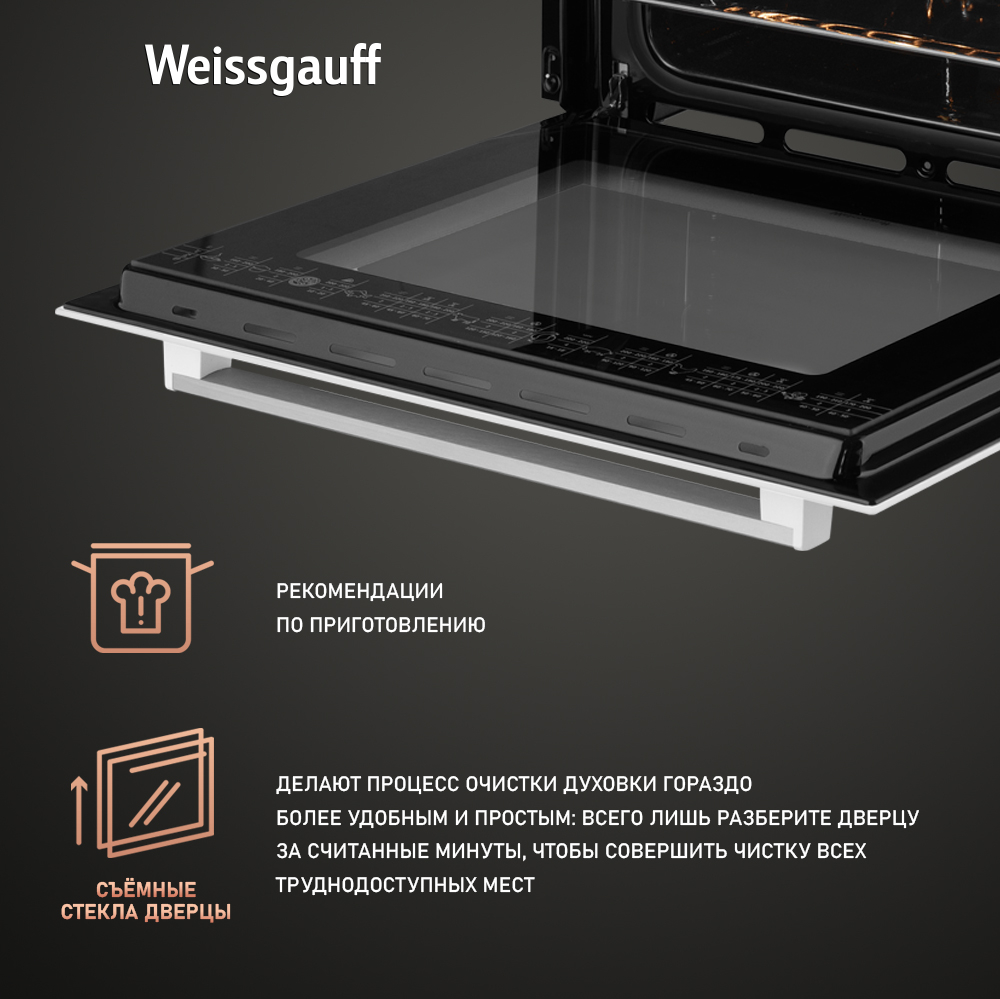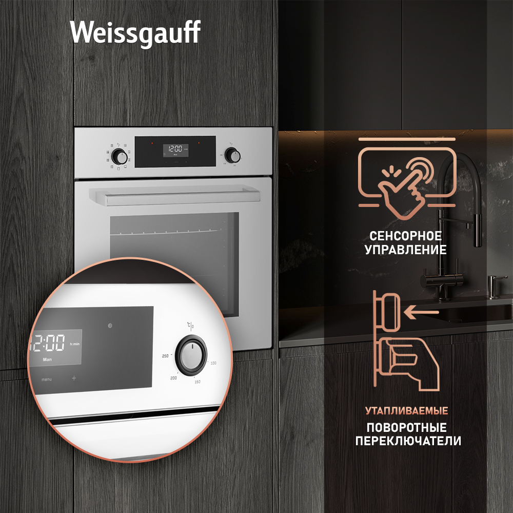 Удобный дисплей с сенсорным управлением - это настоящая гордость Weissgauff, ведь он не только является интуитивно понятным, но и великолепно реагирует на прикосновения с первого нажатия даже в том случае, если руки влажные или прохладные.