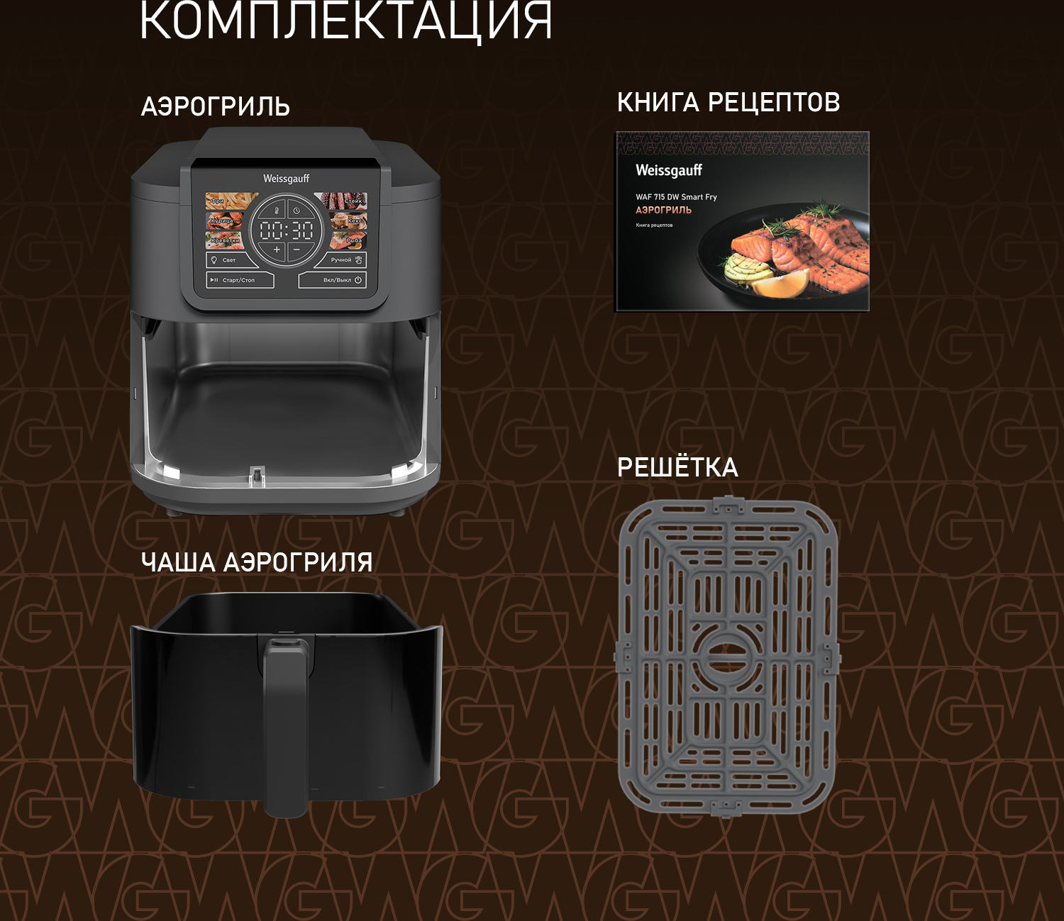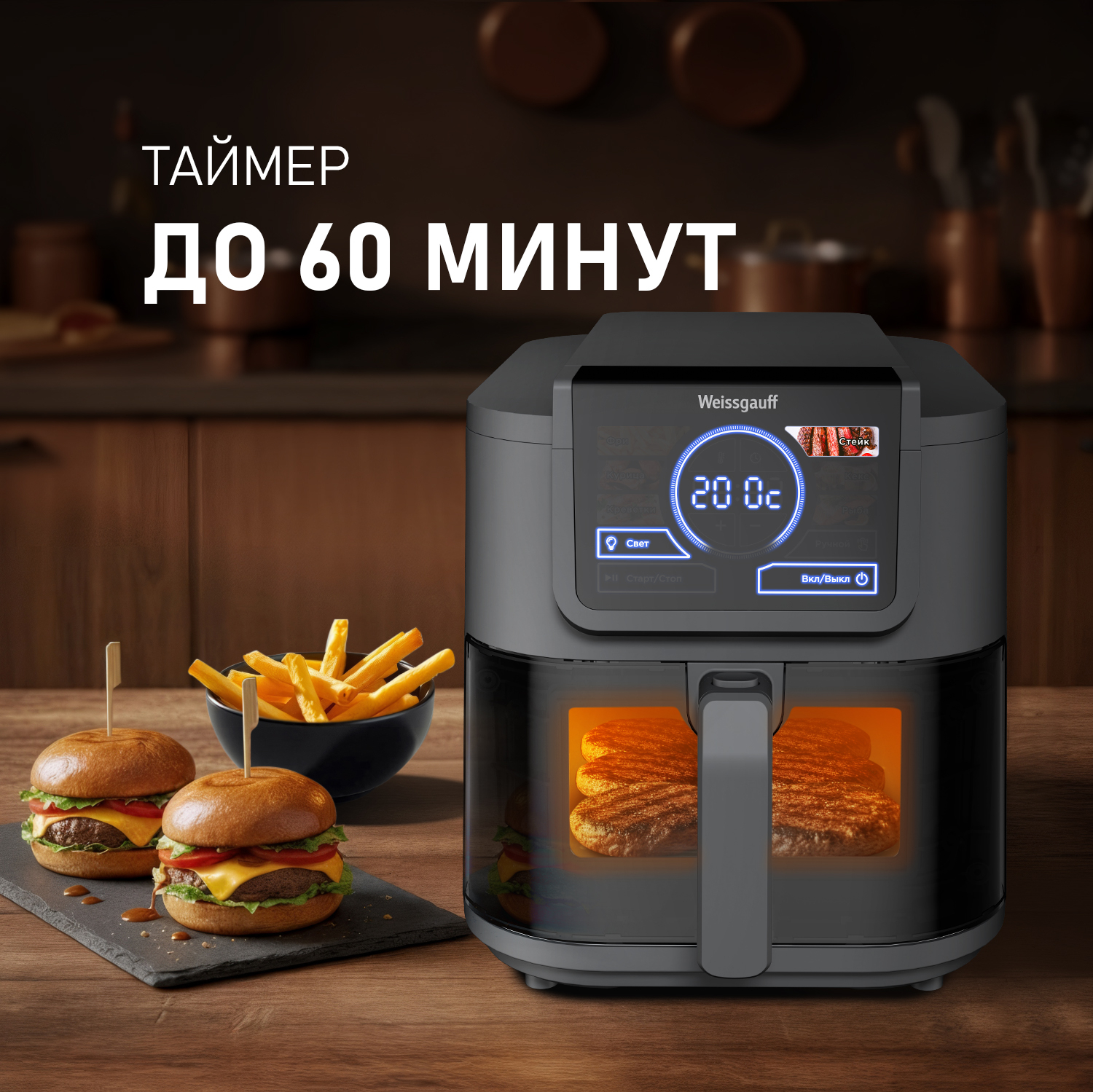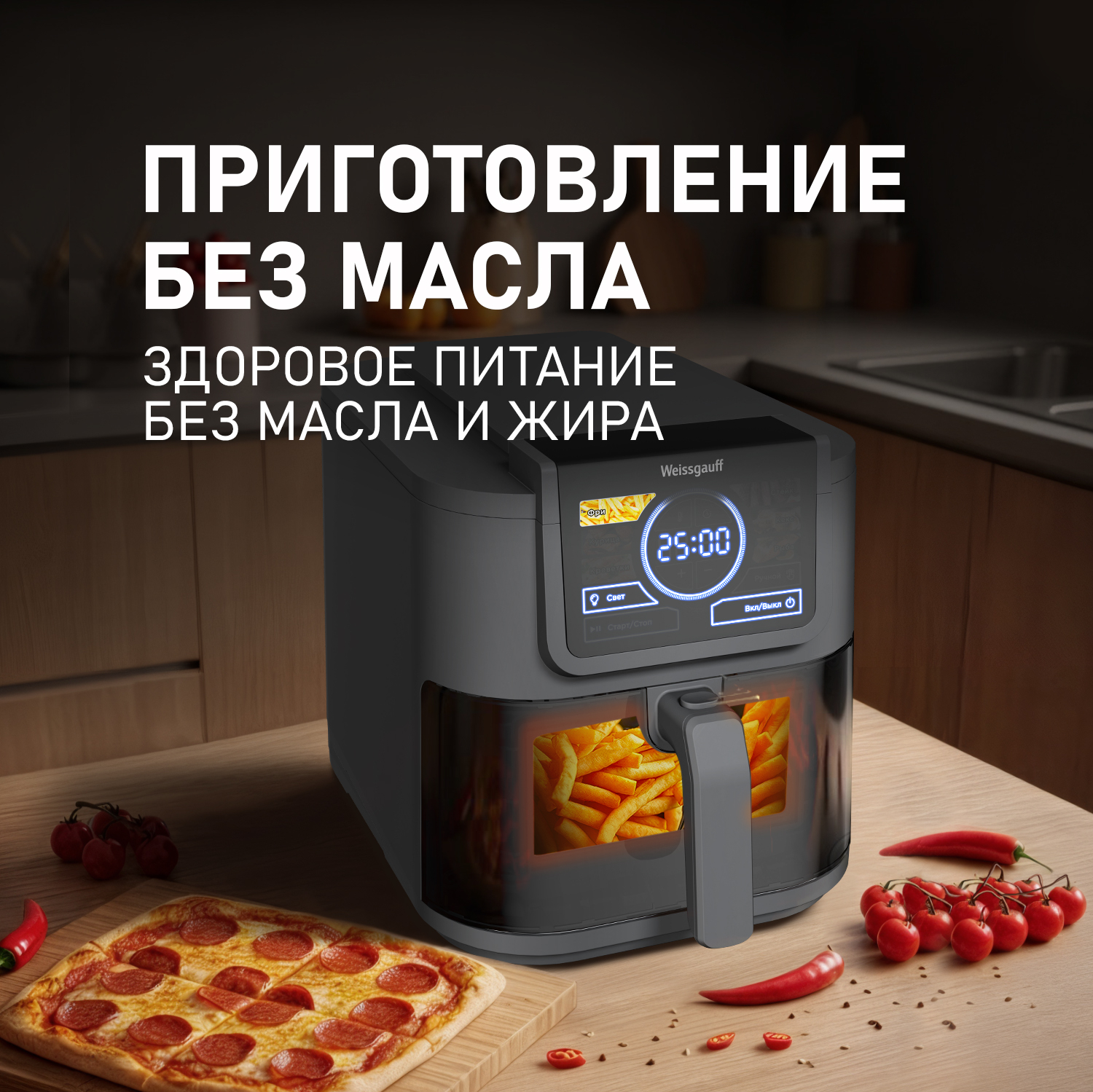 Аэрогриль от Weissgauff, является инновационным решением для вашей кухни. Этот многофункциональный прибор открывает новые горизонты в кулинарии, объединяя в себе несколько бытовых кухонных приборов. Благодаря современному и стильному дизайну, устройство станет украшением любой кухни, сочетая в себе элегантность и функциональность, компактные размеры, объём 8 литров и мощность 1900 Вт позволяют быстро и эффективно создавать огромное количество разнообразных блюд, а также экспериментировать и находить новые кулинарные рецепты. Наслаждайтесь вкусом любимых блюд без лишних калорий, ведь технология обжарки с использованием горячего воздуха сохраняет вкус и питательные свойства продуктов, а простота управления и наличие разнообразных программ превращают готовку в настоящее удовольствие!