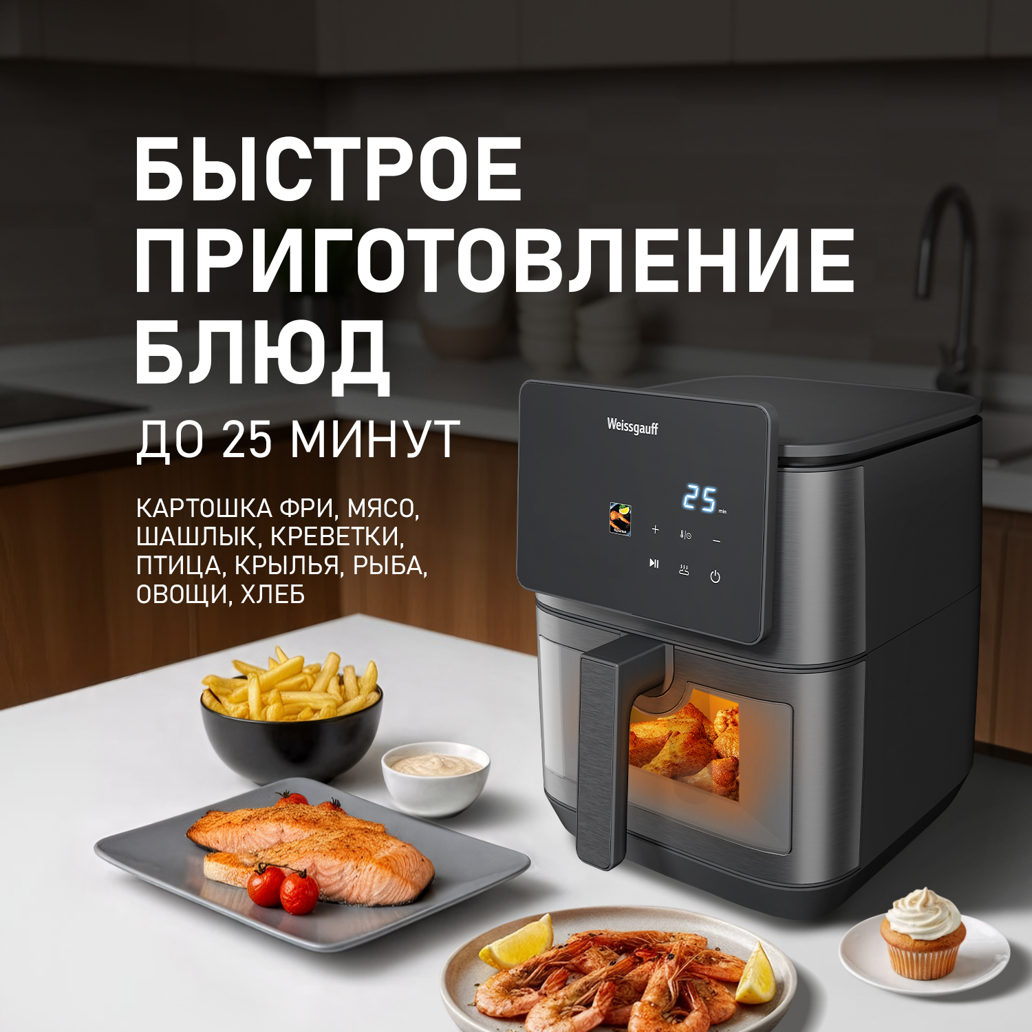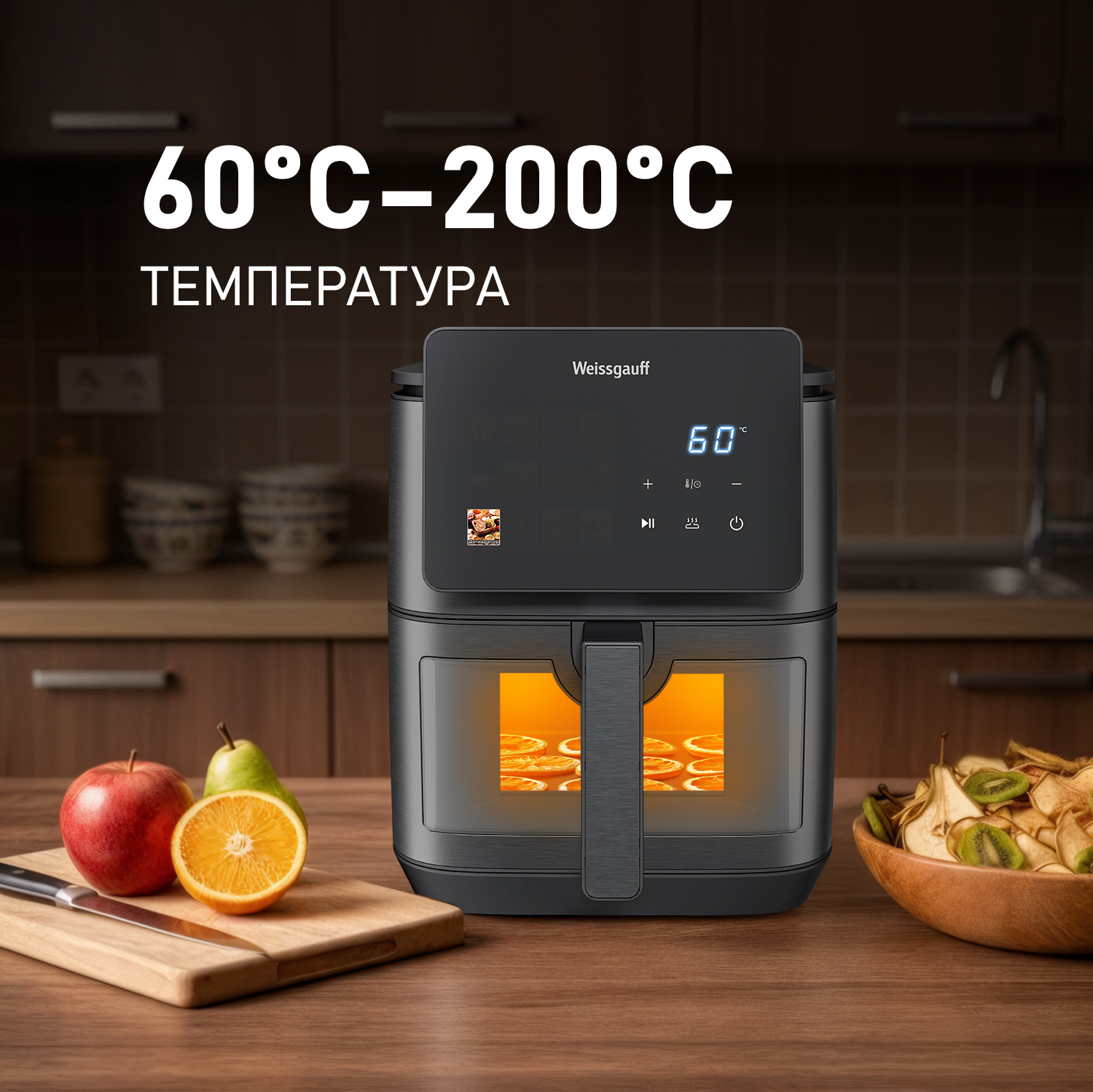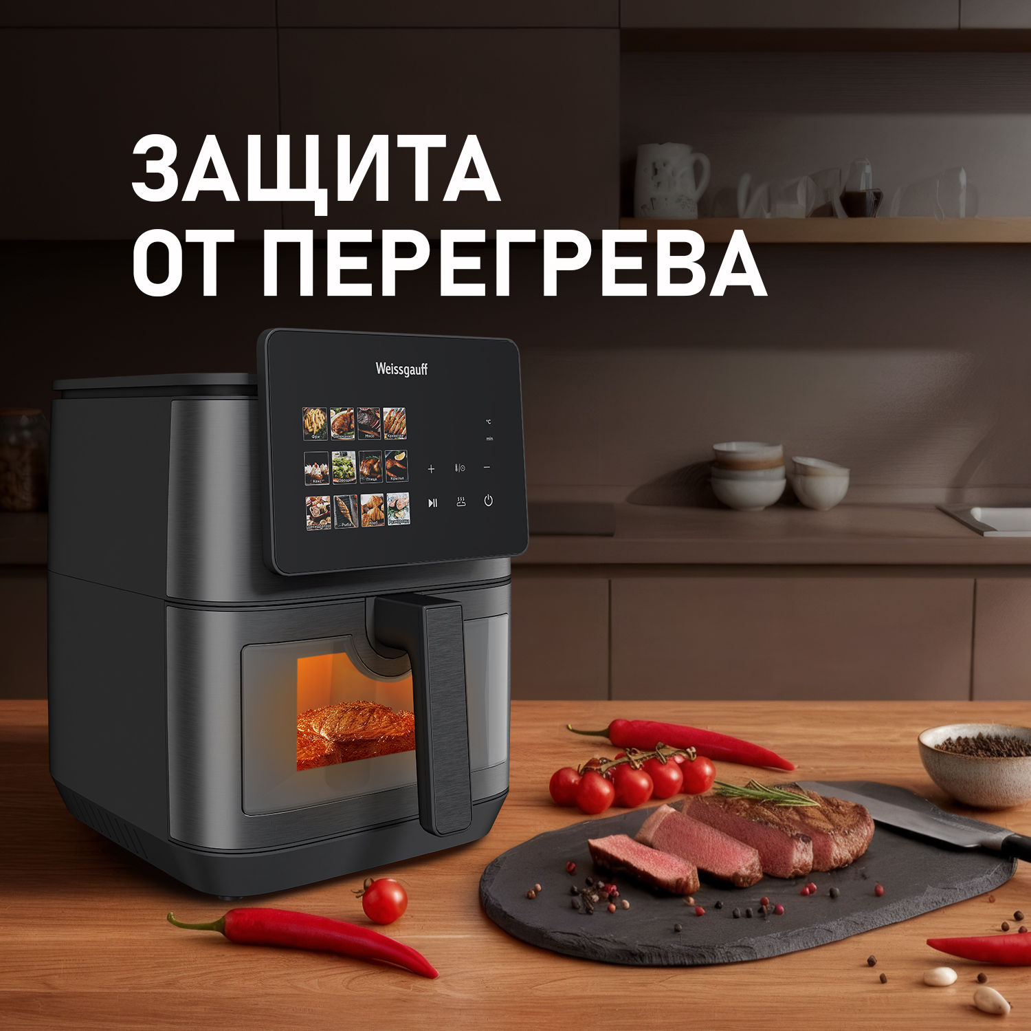 Аэрогриль от Weissgauff, является инновационным решением для вашей кухни. Этот многофункциональный прибор открывает новые горизонты в кулинарии, объединяя в себе несколько бытовых кухонных приборов. Благодаря современному и стильному дизайну, устройство станет украшением любой кухни, сочетая в себе элегантность и функциональность, компактные размеры, объём 9 литров и мощность 2100 Вт позволяют быстро и эффективно создавать огромное количество разнообразных блюд, а также экспериментировать и находить новые кулинарные рецепты. Наслаждайтесь вкусом любимых блюд без лишних калорий, ведь технология обжарки с использованием горячего воздуха сохраняет вкус и питательные свойства продуктов, а простота управления и наличие разнообразных программ превращают готовку в настоящее удовольствие!