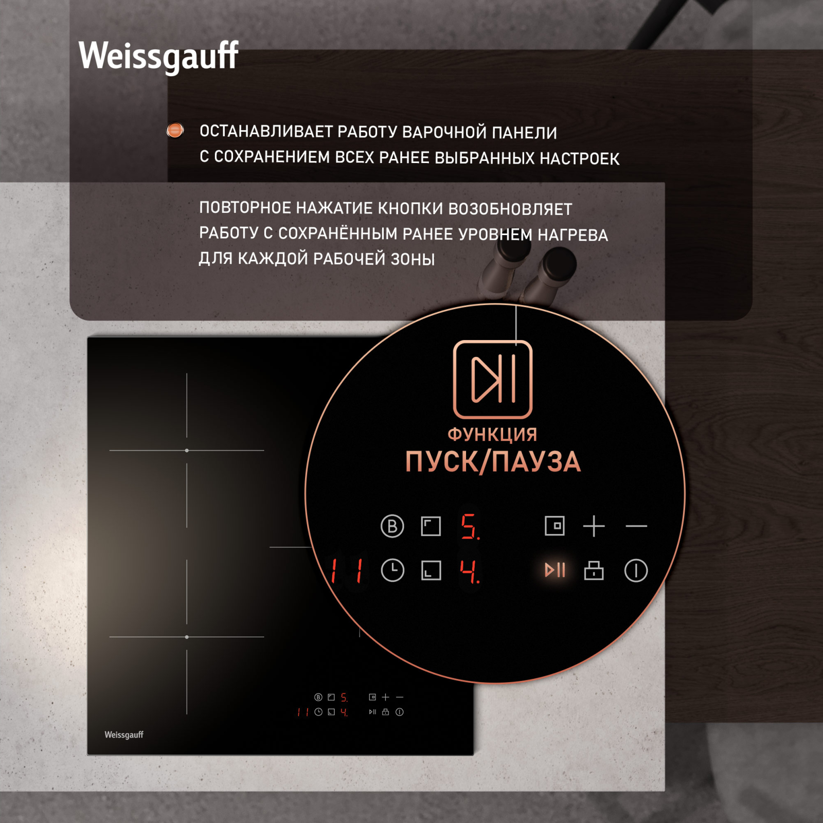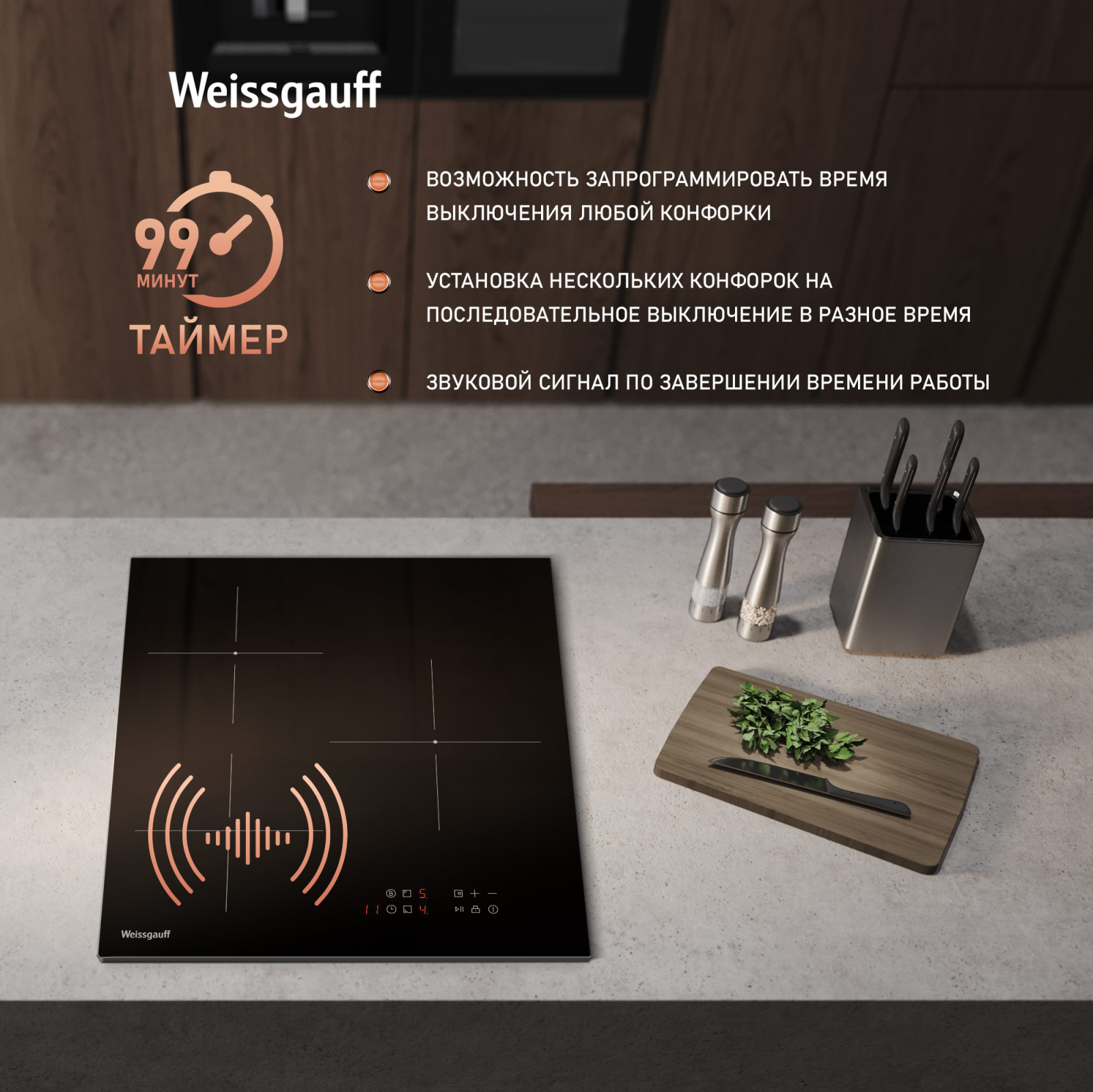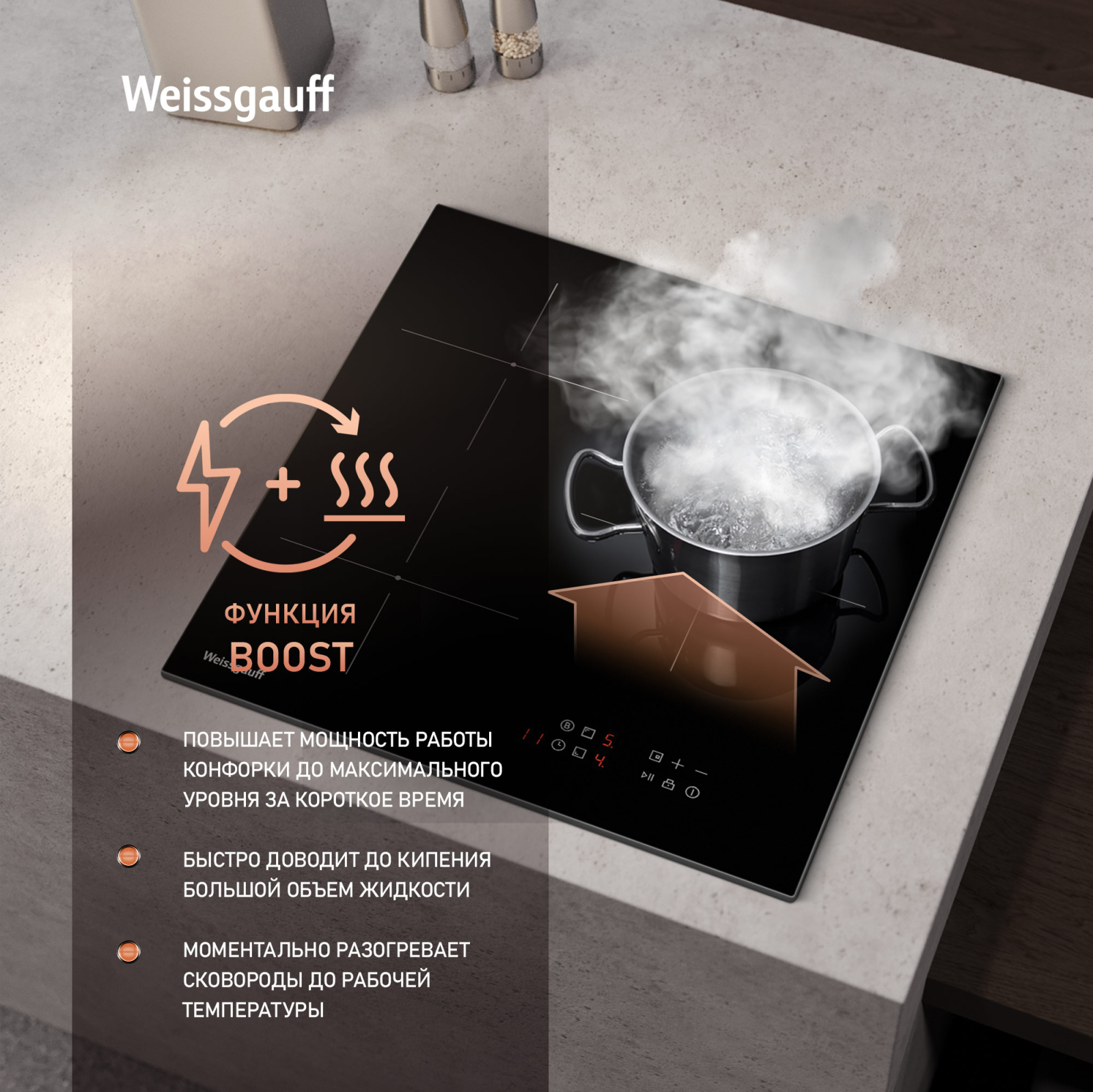 Индукционная панель Weissgauff с особым дизайном конфорок Cross Zone и опцией Boost- выводит на новый уровень понимание того, насколько эффективной может быть компактная индукционная варочная поверхность шириной всего 45 см!