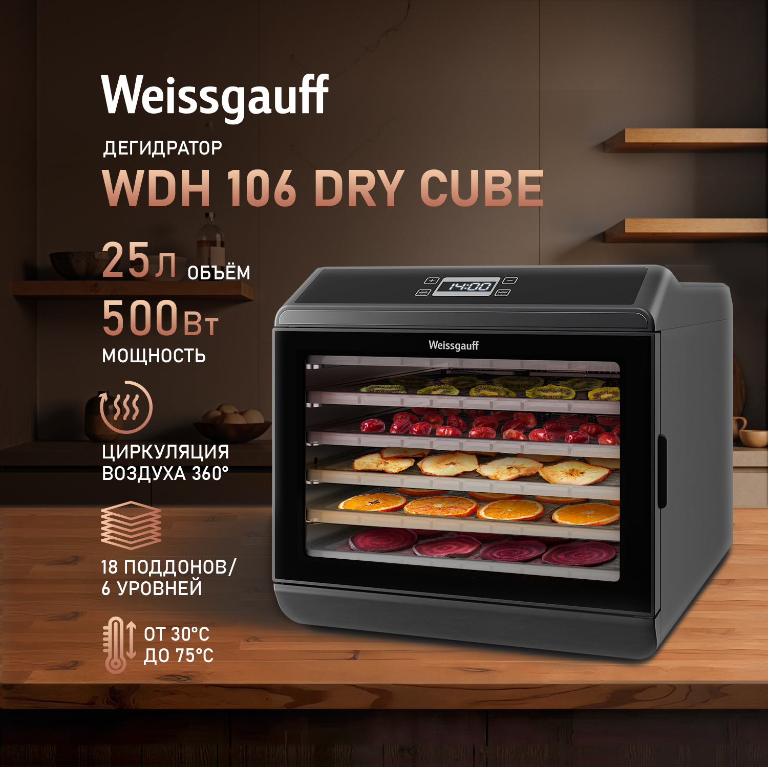 Дегидратор от Weissgauff -это инновационное решение для вашей кухни, открывающее новые горизонты в процессе обезвоживания продуктов растительного и животного происхождения. С его помощью вы сможете создавать разнообразные продукты: овощные и фруктовые чипсы, хлебцы, пастилу, а также сушёное и вяленое мясо и рыбу. Современный и стильный дизайн устройства станет украшением любой кухни. Его компактные размеры, объём 25 литров и мощность 500 Вт позволяют разместить его в любом уголке кухни.