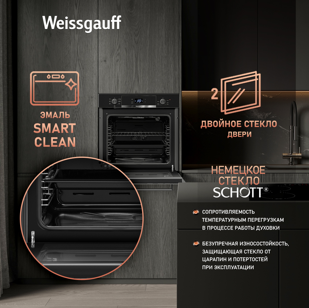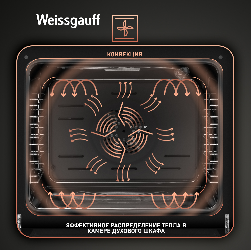 • Великолепный дизайн, станет финальным штрихом в совершенстве облика этой модели. Каждый раз, взаимодействуя с духовым шкафом от Weissgauff, вы будете в полной мере ощущать, как он способен нагревать не только еду, но и согревать душу, став настоящим сердцем вашего уютного домашнего очага.