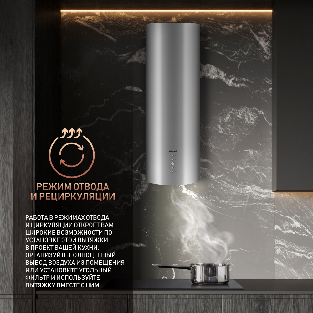 Работа в режимах отвода и циркуляции откроет вам широкие возможности по установке этой вытяжки в проект вашей кухни. Организуйте полноценный вывод воздуха из помещения или установите угольный фильтр и используйте вытяжку вместе с ним - какой бы вариант вы ни выбрали, модель от Weissgauff сделает это возможным!