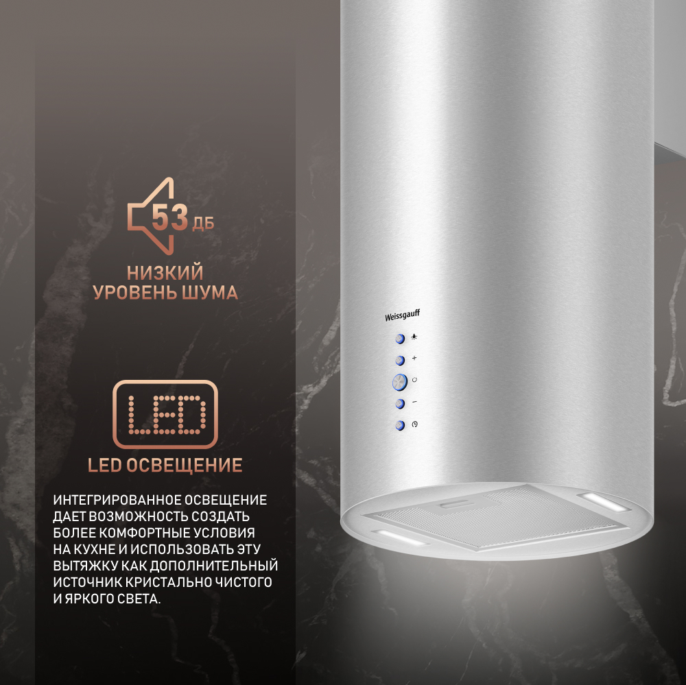 Низкий уровень шума 53 дБ сделает работу с данной вытяжкой по-настоящему комфортной и приятной, ведь мы в Weissgauff знаем, как добиться высокой производительности без лишнего шума!