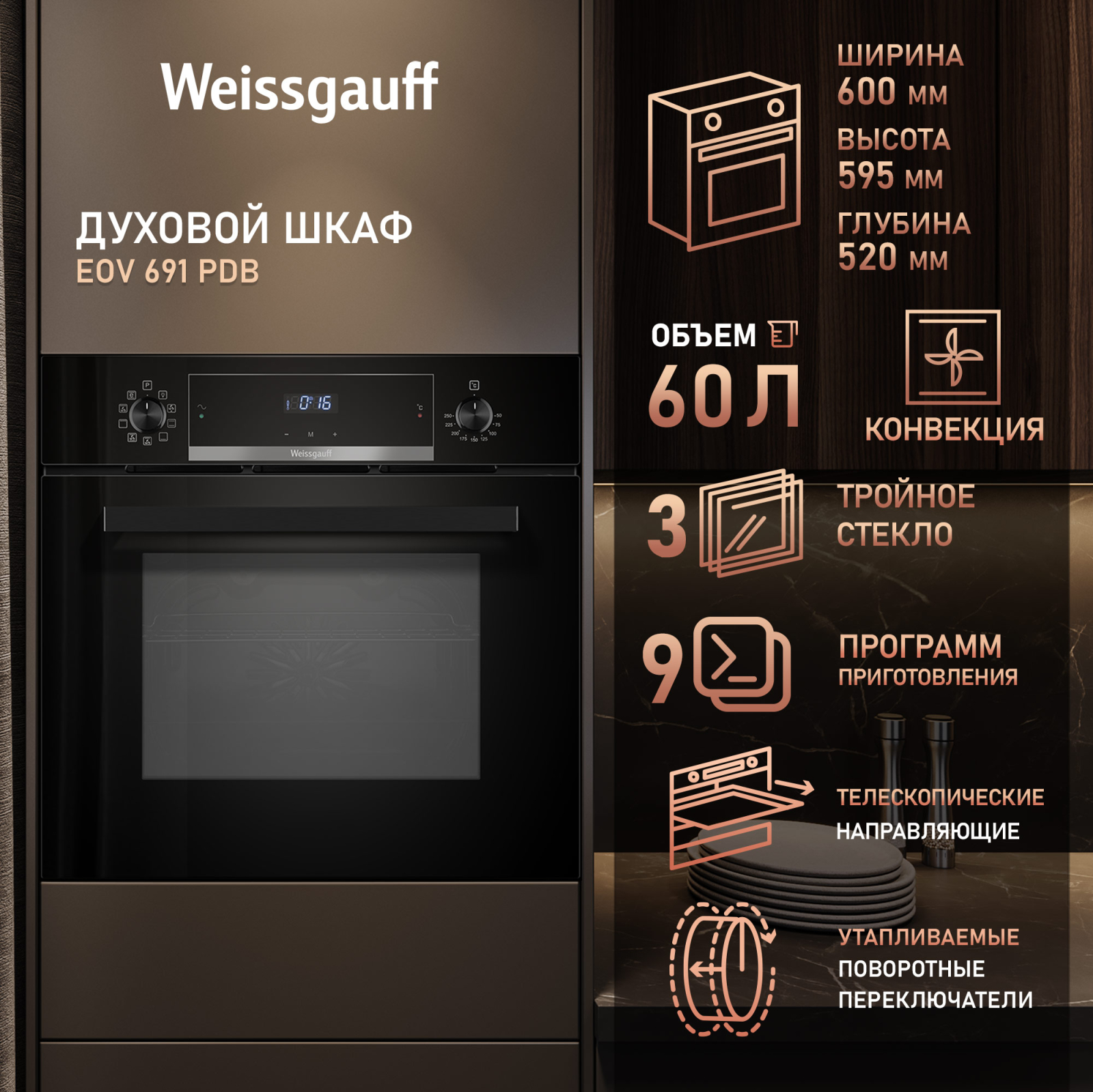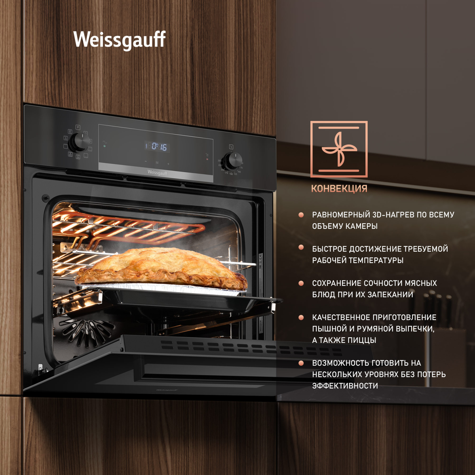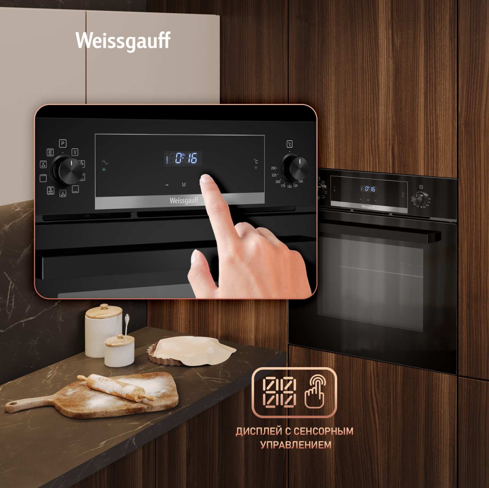 Новое поколение духовых шкафов от Weissgauff предлагает духовой шкаф, выполненный в великолепном дизайне черного закаленного стекла, имеющий дисплей с чувствительным сенсорным управлением. Тройное остекление дверцы отражает всю ту предусмотрительность, с которой мы подошли к её созданию. Утапливаемые рукоятки PIPO, дополняет богатый функционал, представленный сразу 9 режимами! Благодаря всему этому вы сможете полностью управлять процессом приготовления пищи, добиваясь идеального результата каждый раз!