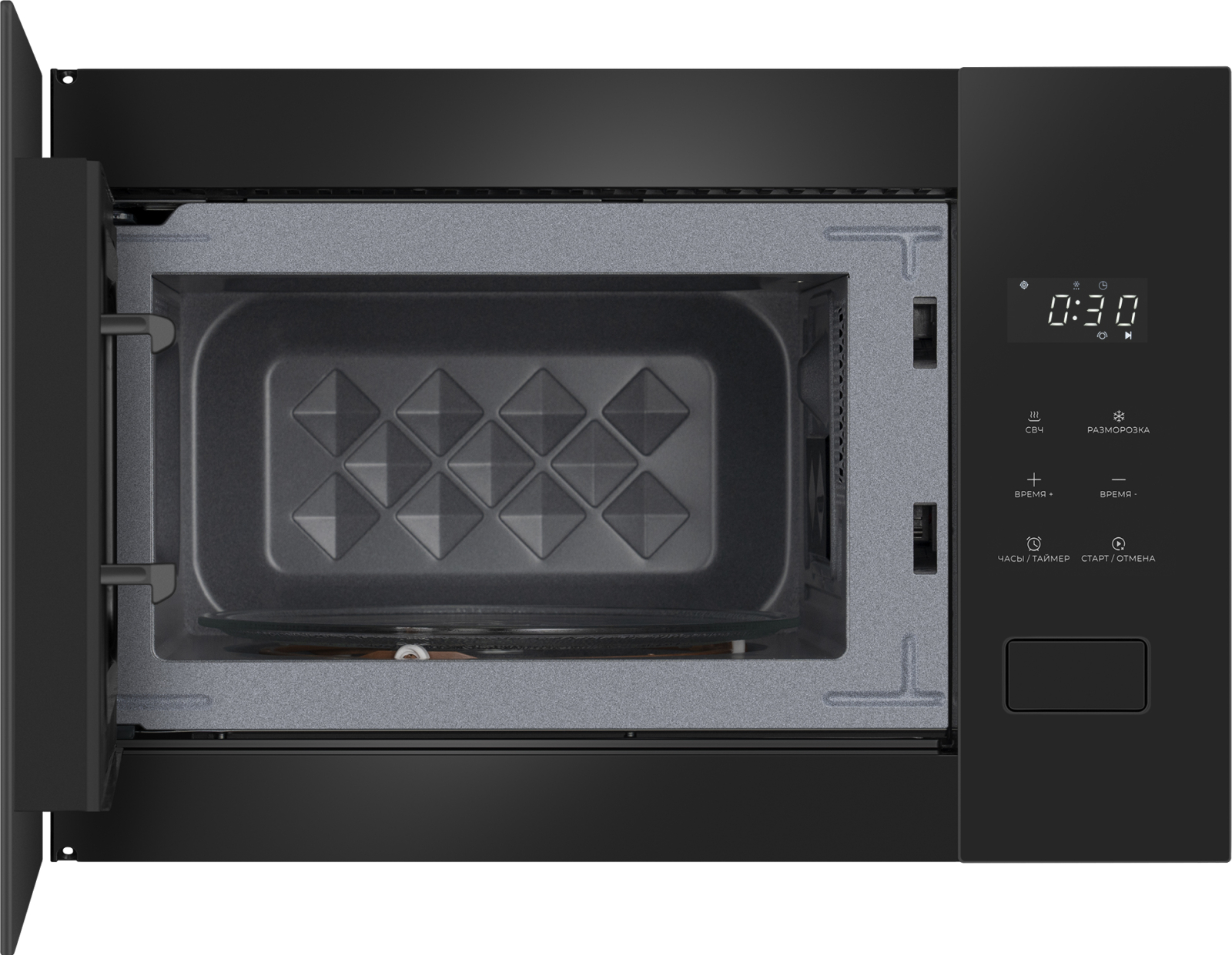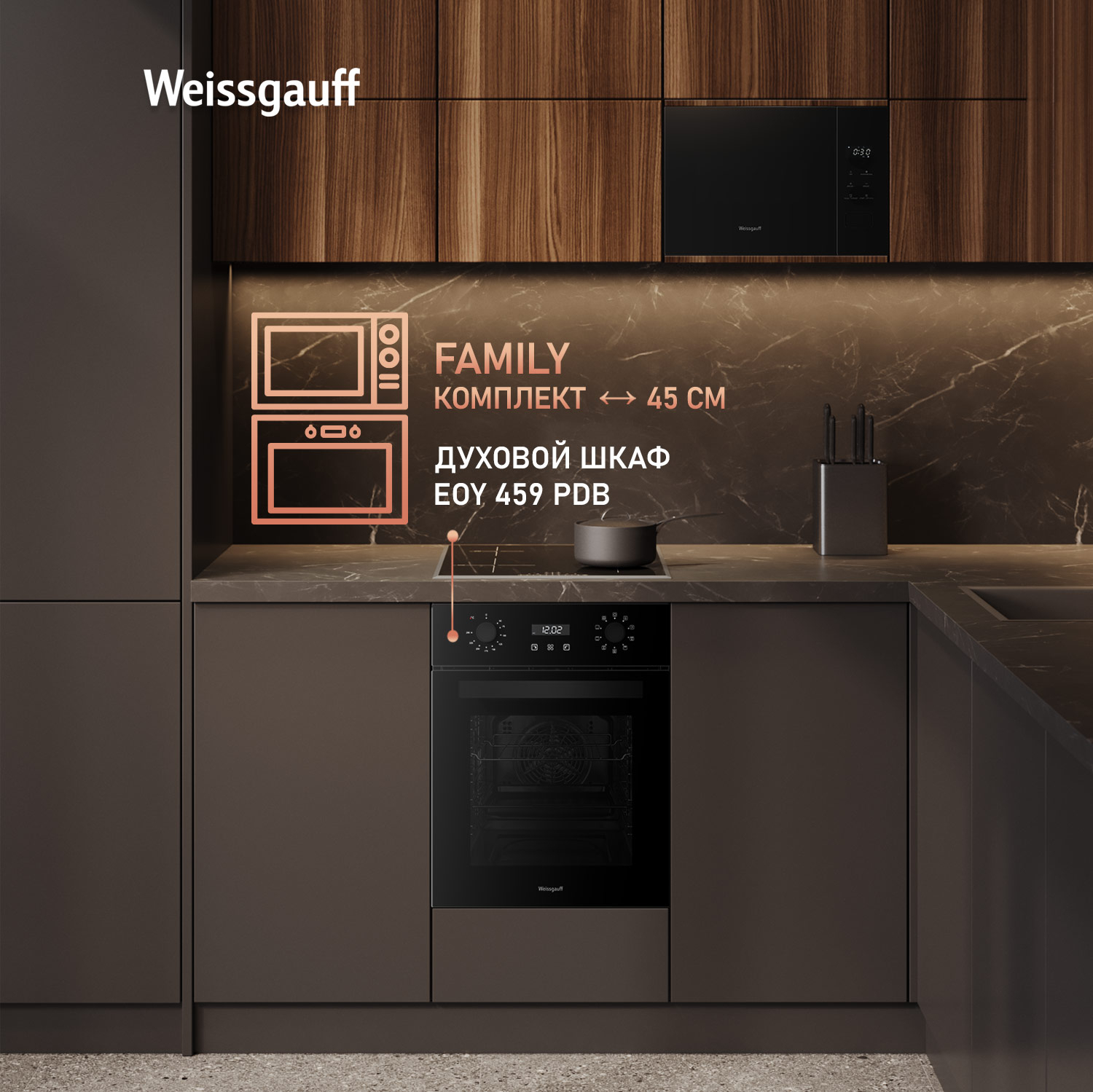 Дизайн, выполненный в черном цвете, станет финальным штрихом в совершенстве великолепного облика этой модели. Каждый раз, взаимодействуя с вашей микроволновой печью от Weissgauff, вы будете чувствовать, что это не только функциональное устройство, но и настоящее украшение вашей кухни!