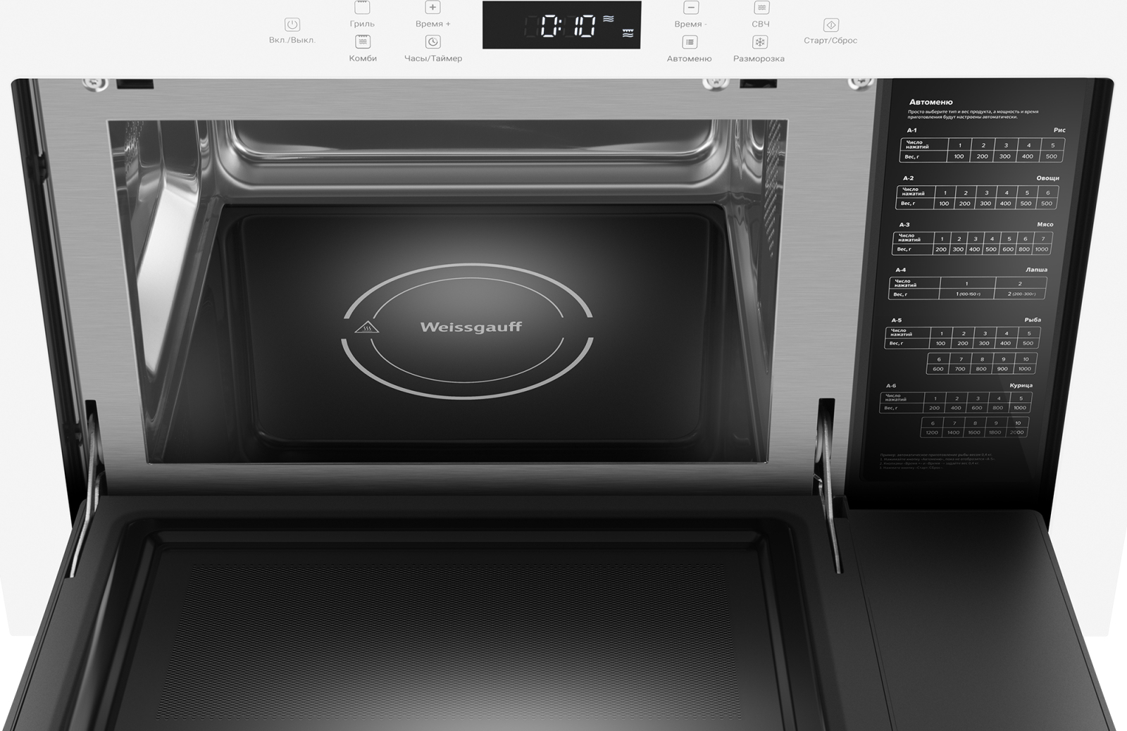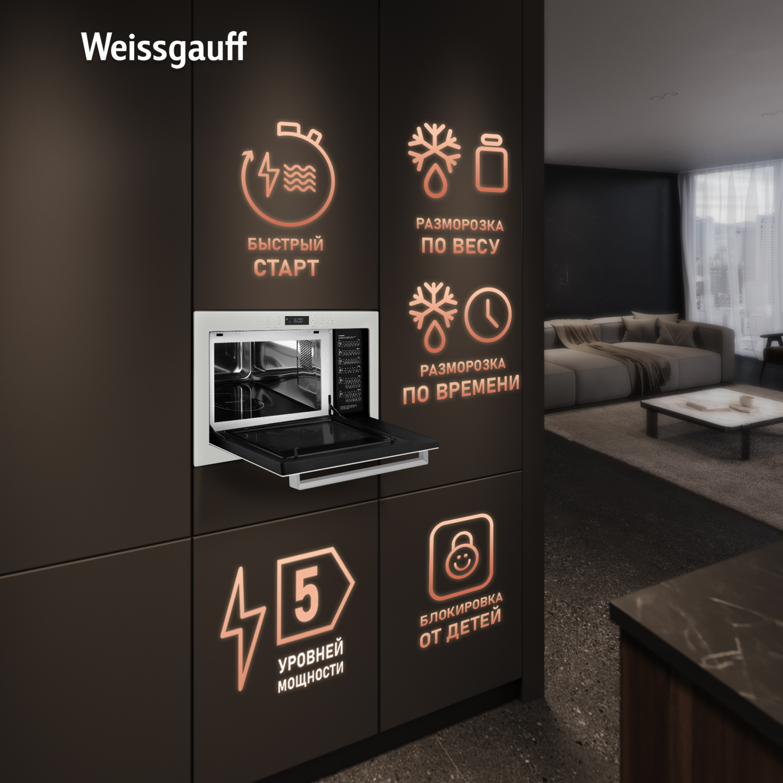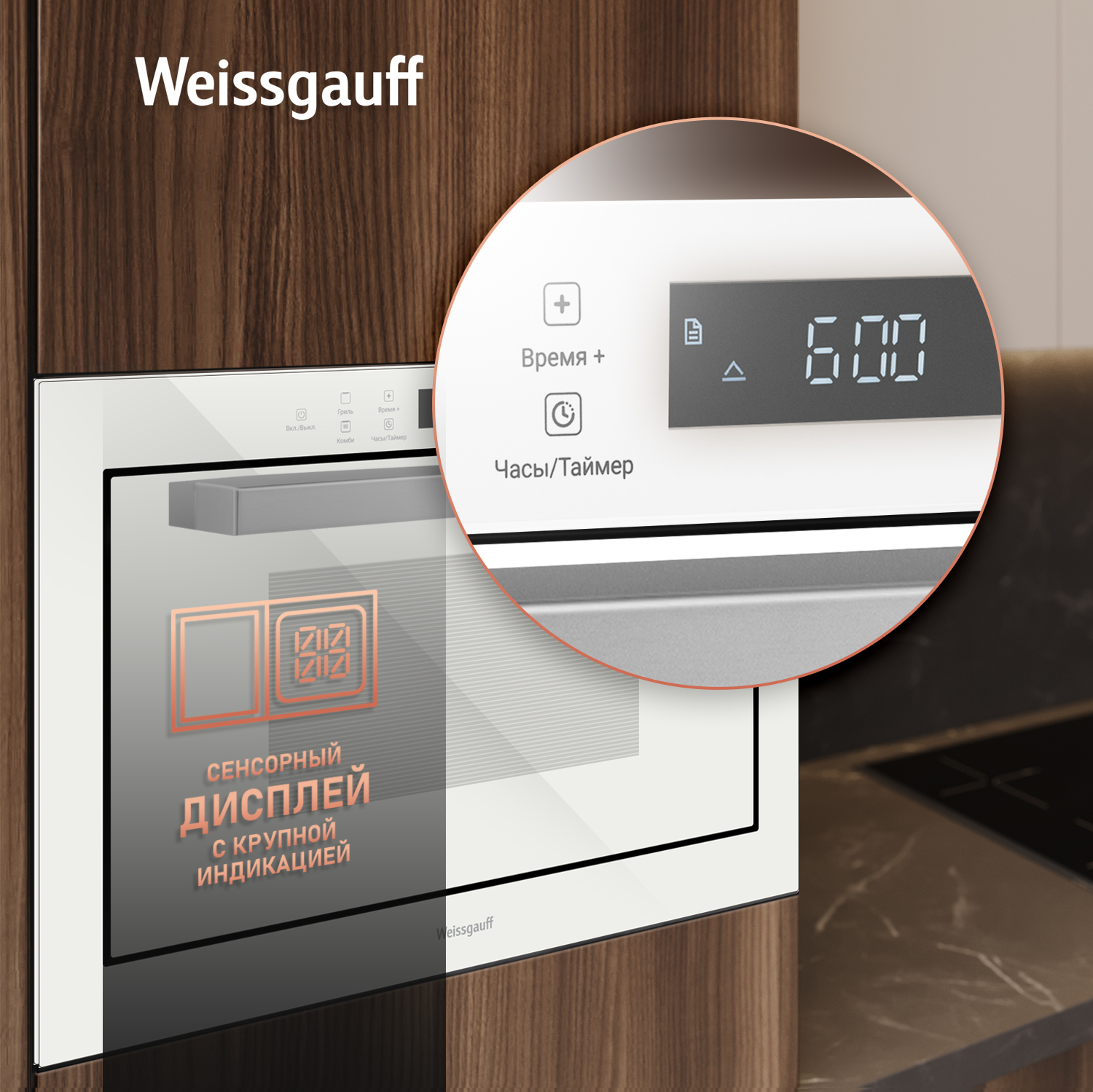• Дизайн, выполненный в белом цвете, станет финальным штрихом в совершенстве великолепного облика этой модели. Каждый раз, взаимодействуя с вашей микроволновой печью от Weissgauff, вы будете чувствовать, что это не только функциональное устройство, но и настоящее украшение вашей кухни!