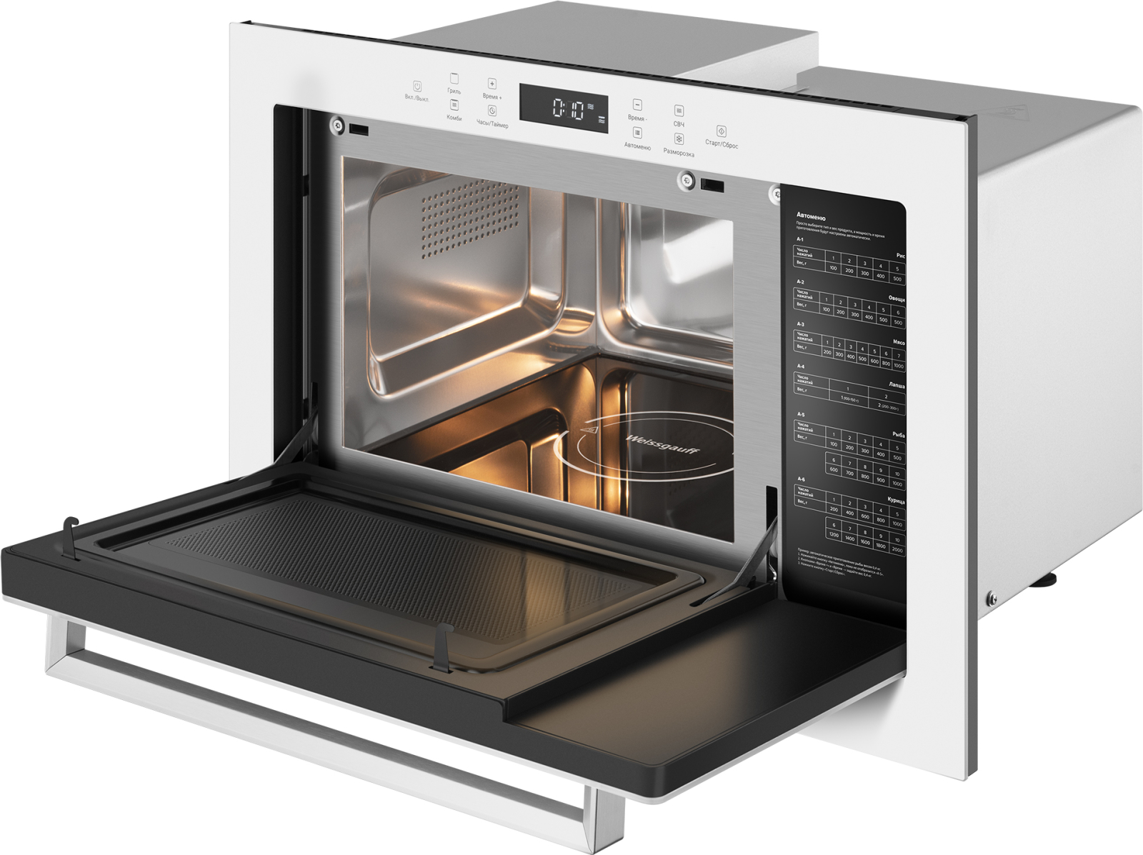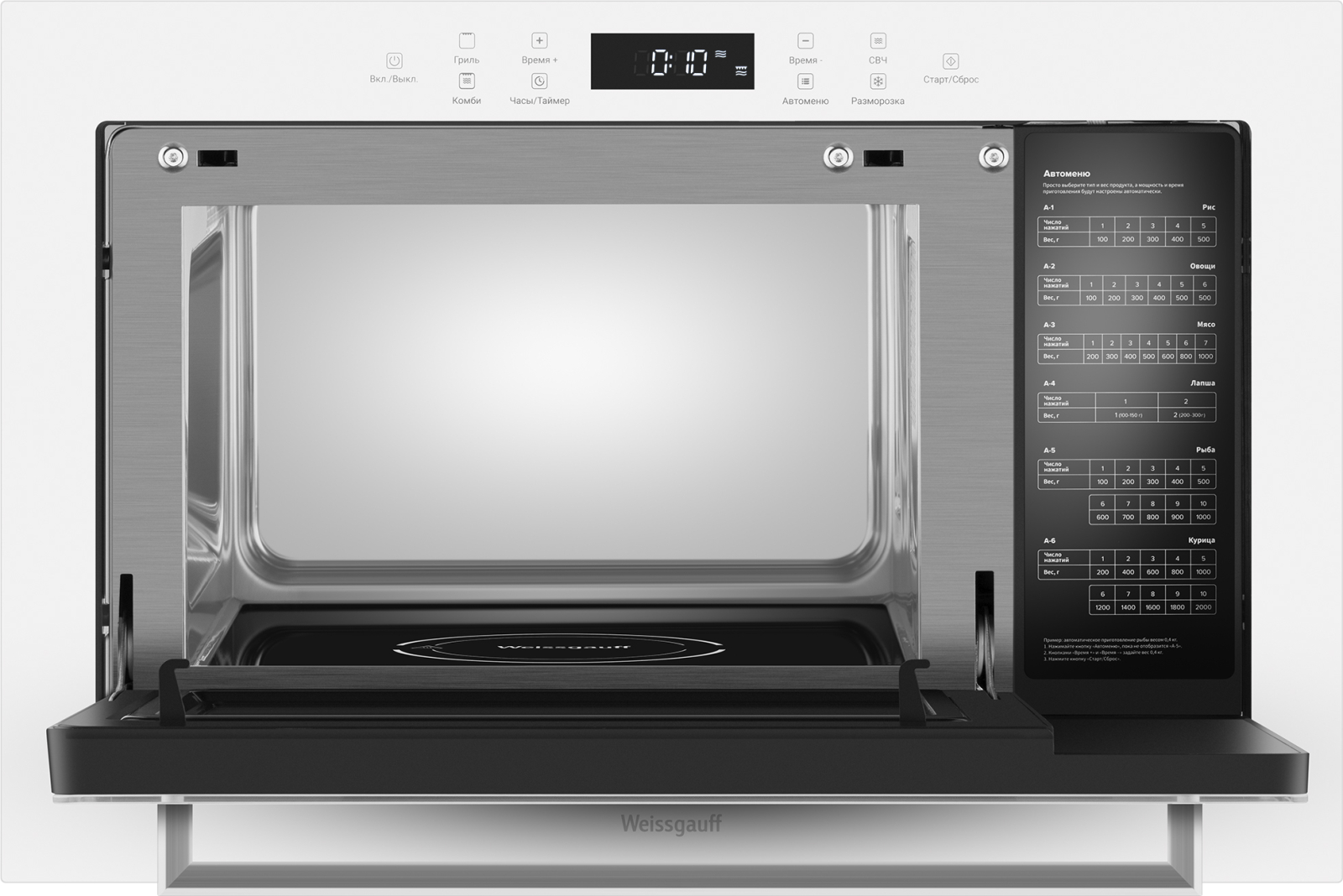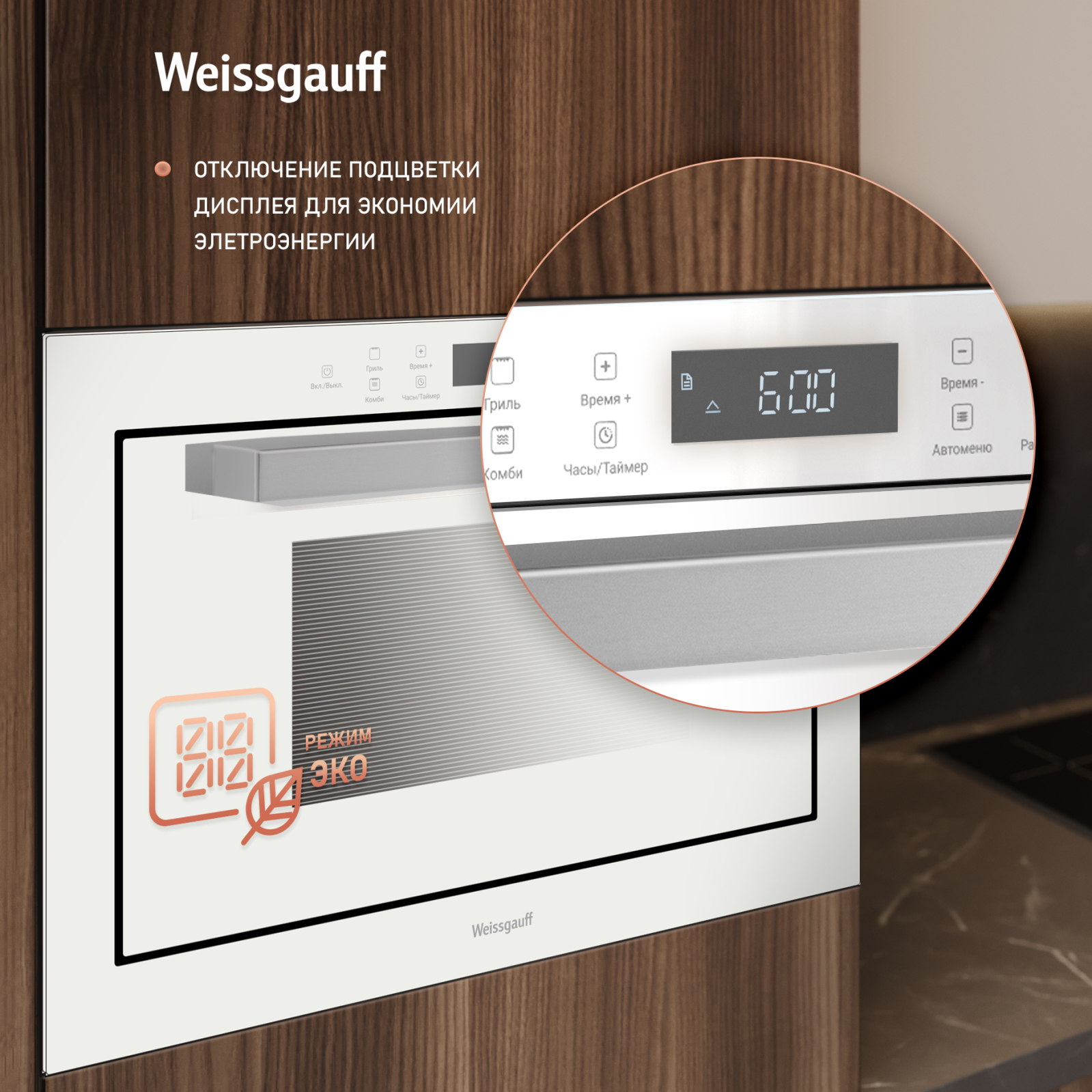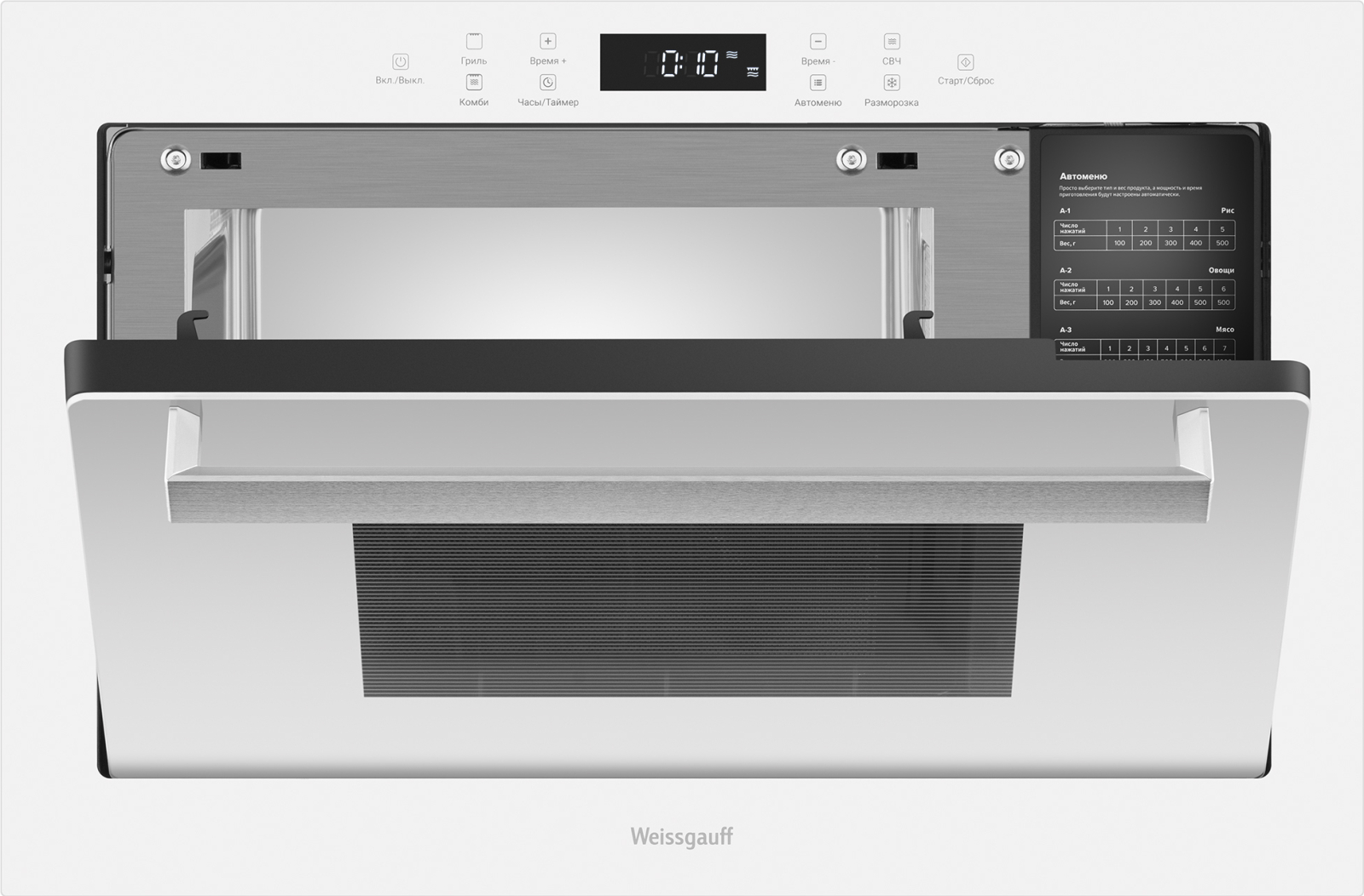 • Дизайн, выполненный в белом цвете, станет финальным штрихом в совершенстве великолепного облика этой модели. Каждый раз, взаимодействуя с вашей микроволновой печью от Weissgauff, вы будете чувствовать, что это не только функциональное устройство, но и настоящее украшение вашей кухни!