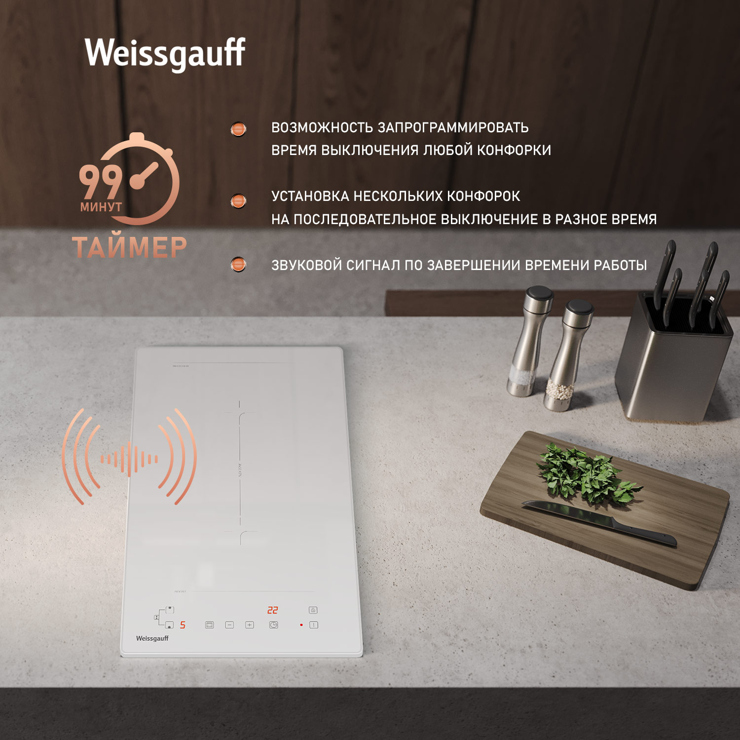 Индукционная панель Weissgauff в дизайне "Домино" оснащённая технологией непрерывного нагрева и свободной зоной Flex Zone - это сочетание функциональности и технологичности при минимуме занимаемого места!