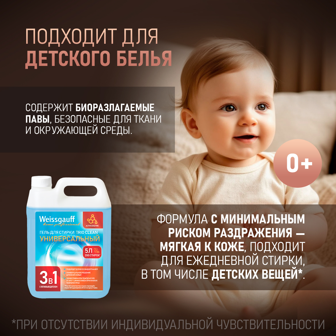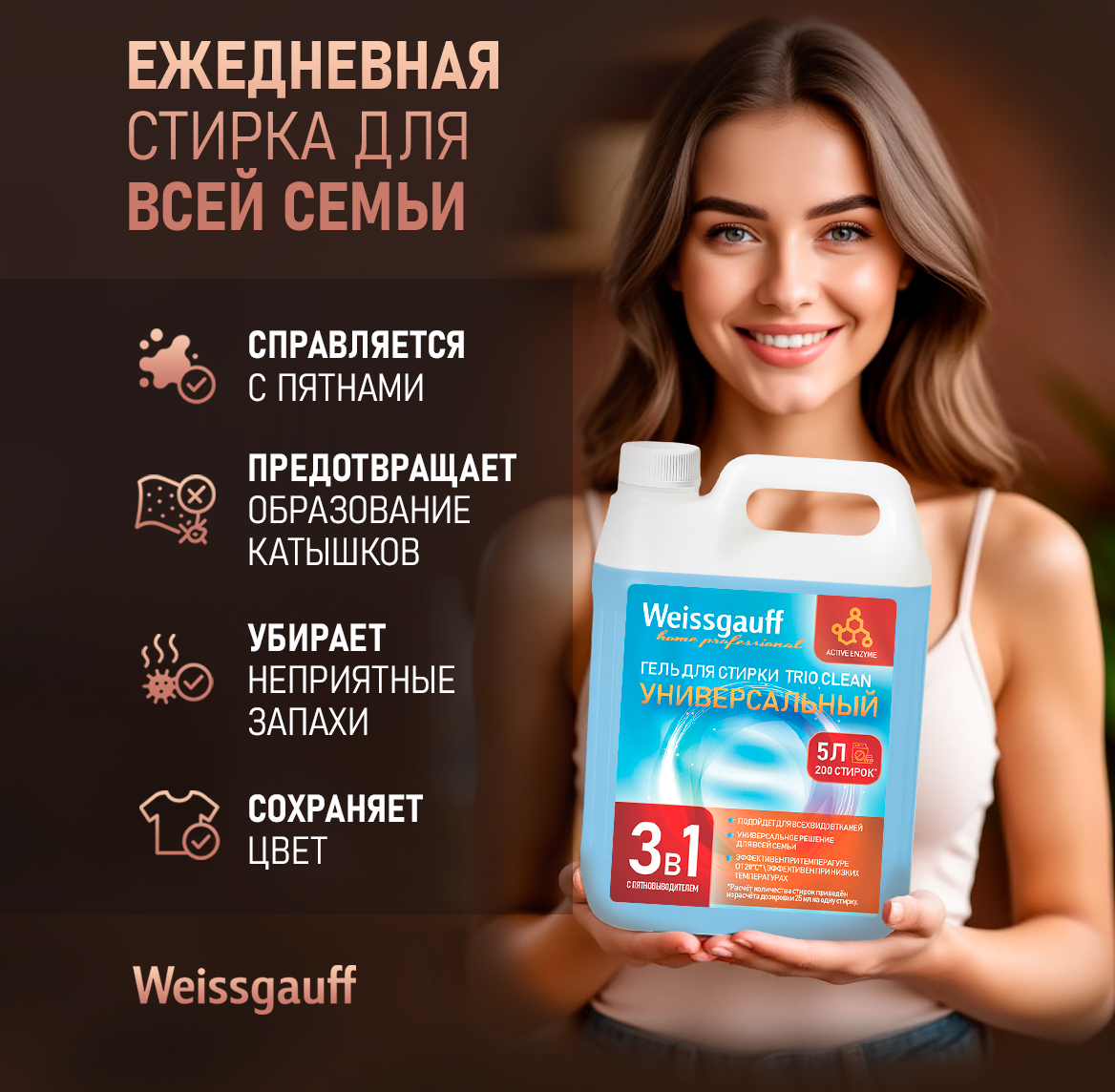 Гель с пятновыводителем 3 в 1 Weissgauff Trio Clean объемом 5 литров —