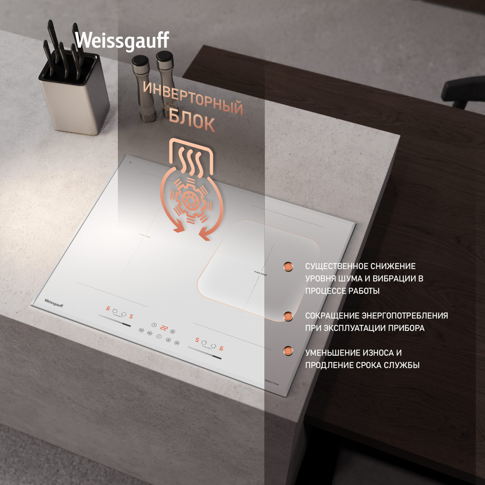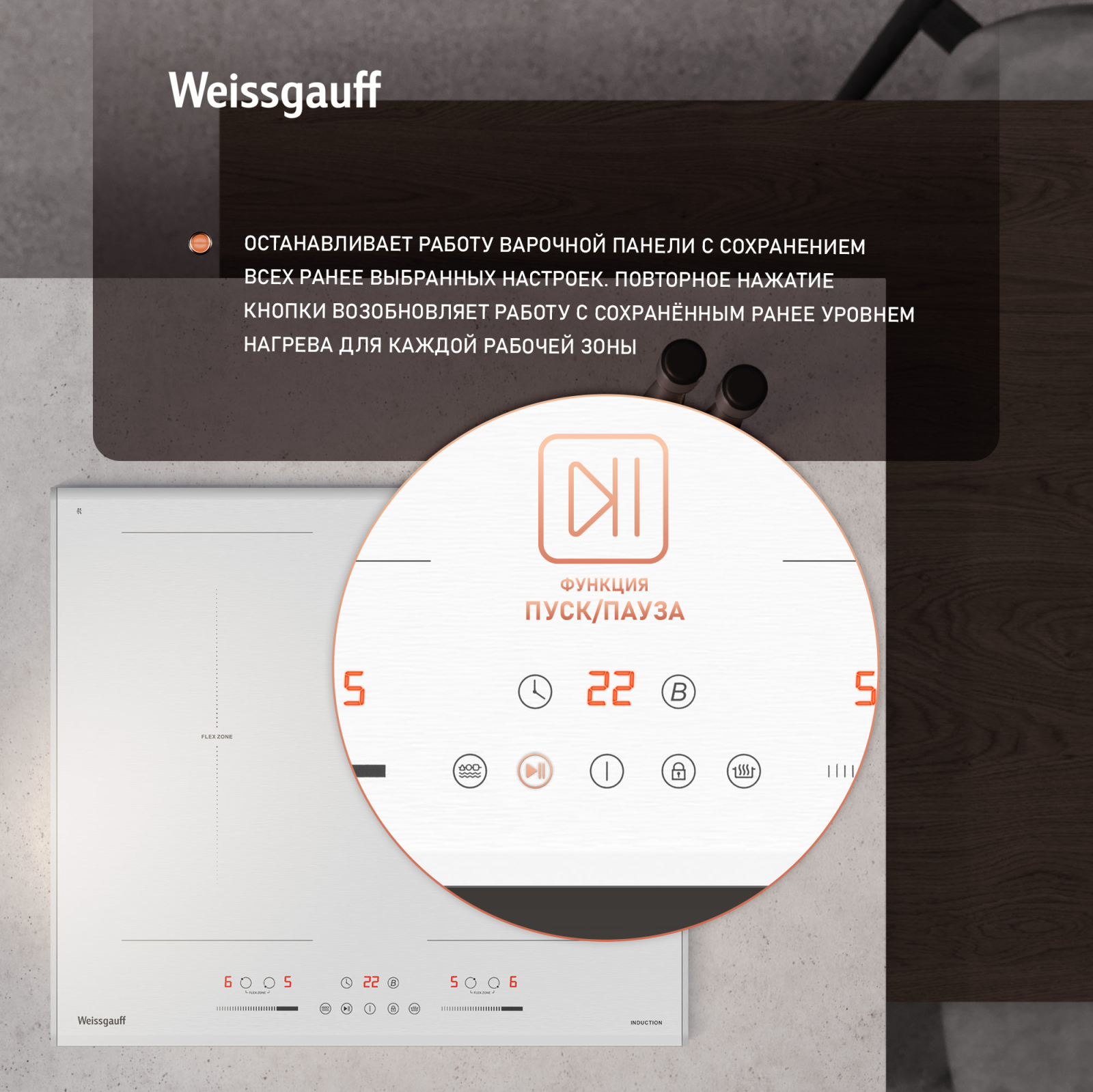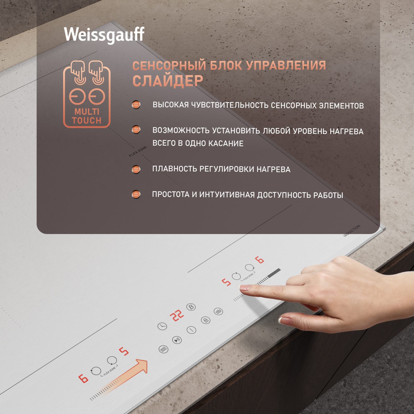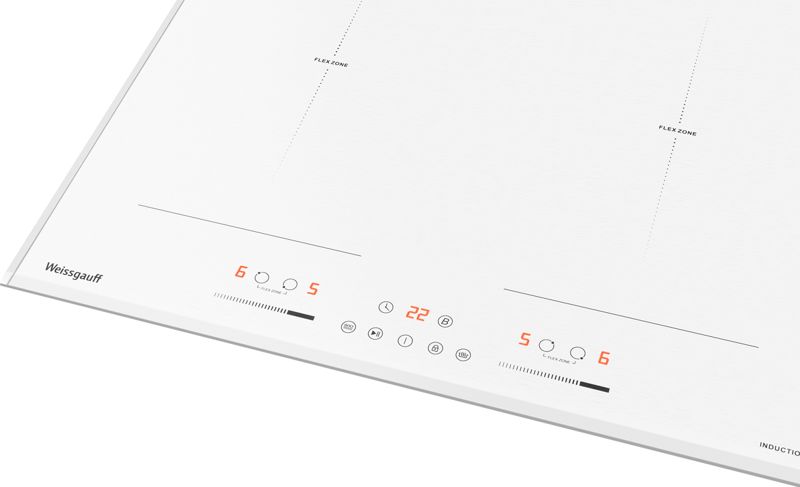Варочная панель, оснащённая технологией непрерывного нагрева, свободной зоной Flex Zone и специальным двойным слайдером One Touch - это наиболее передовая из всех индукционных панелей Weissgauff, являющаяся настоящей вершиной сочетания качества и технологий