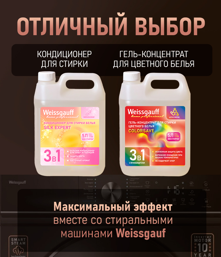 Формула бережно воздействует на детали стиральной машины, помогает продлить её срок службы и идеально подходит для техники Weissgauff и других автоматических машин!