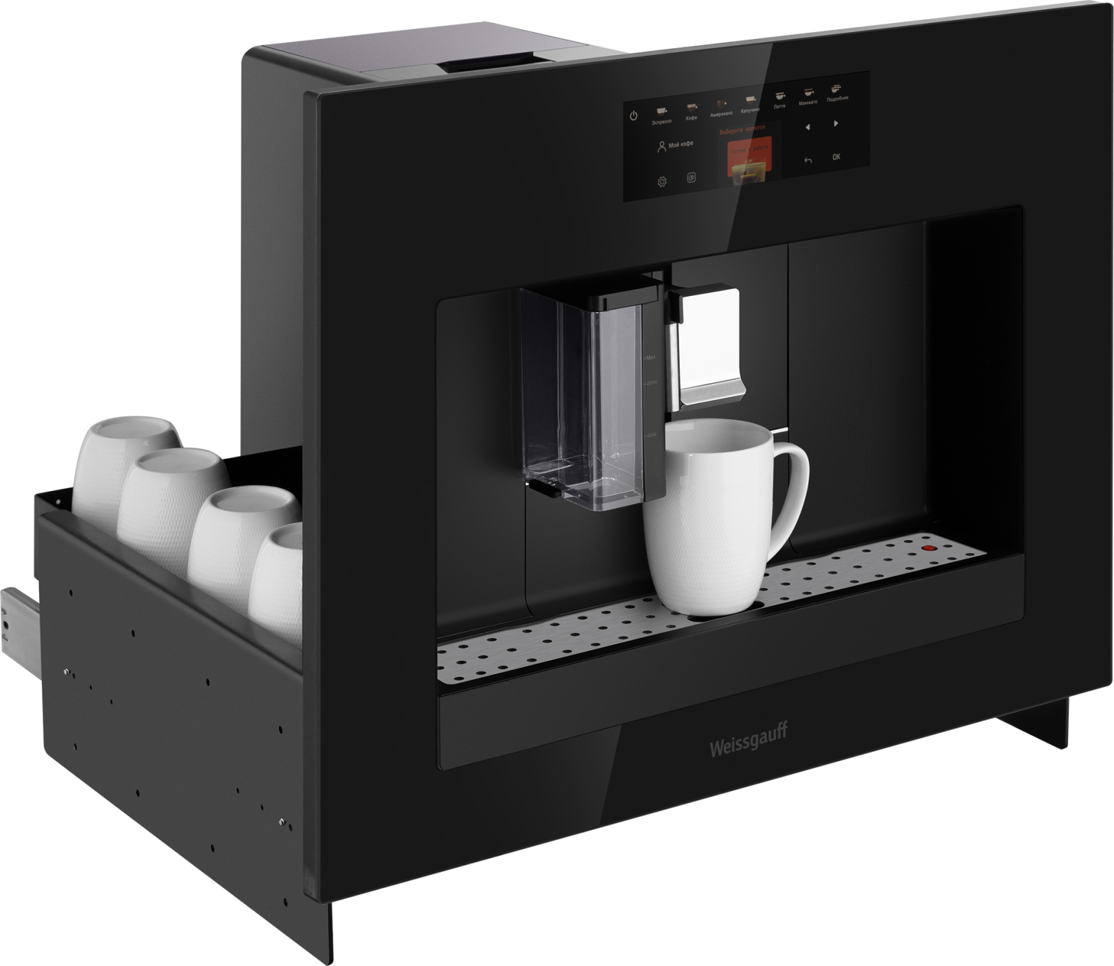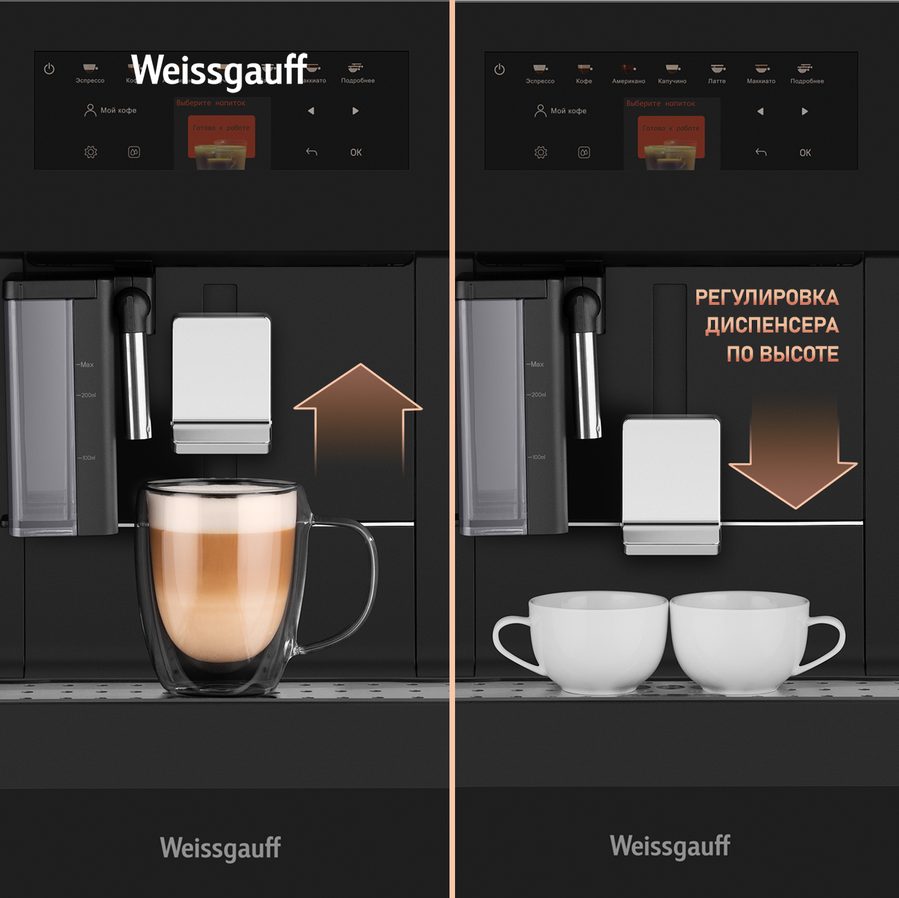 Встраиваемая кофемашина от Weissgauff, выполненная в черном цвете, оснащенная вместительным контейнером для зерен на 200 граммов и емкостью для молотого кофе на 10 порций, обладающая цветным сенсорным дисплеем, системой подачи молока с капучинатором, внешней емкостью для молока, а также 16 заранее предустановленными программами для приготовления ароматного вкуснейшего кофе и напитков прямо на вашей кухне!