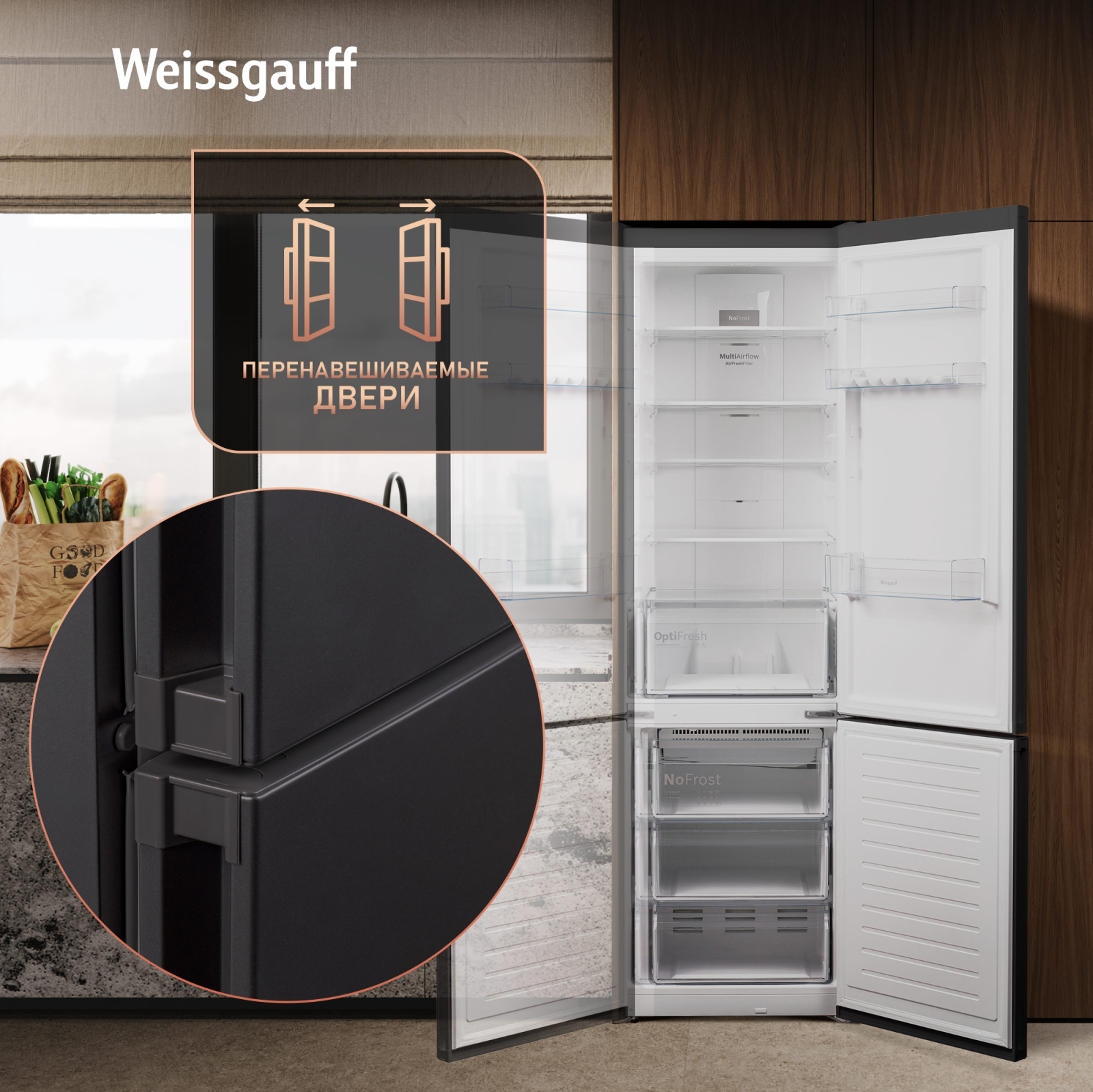 Weissgauff WRK 2010 D Inverter NoFrost Black Soft Close