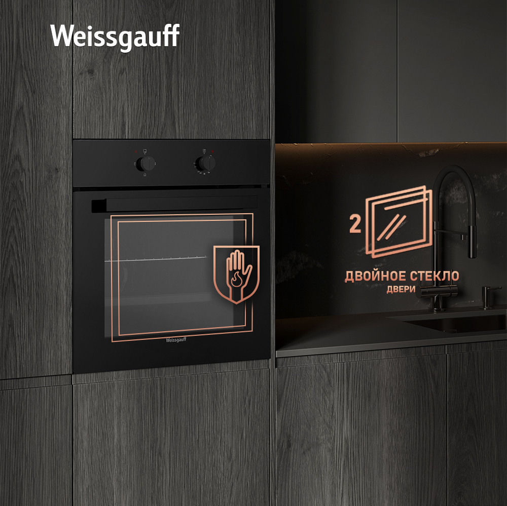 Двойное стекло дверцы, воплощающее в себе весь подход к безопасности и термозащите, который Weissgauff реализовали в данной модели. Такое стекло обеспечивает вам значительно большую степень защиты при случайных прикосновениях к нагревающейся дверце плиты, чем в моделях, не оснащенных технологией многослойного стекла. Для нас в Weissgauff важно, чтобы работа с бытовой техникой была не только приятной, но и безопасной!