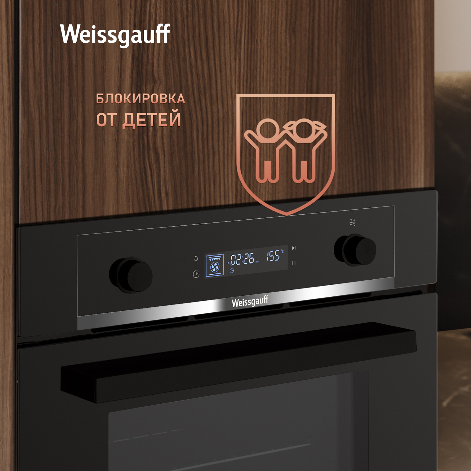 Дизайн в черном цвете - станет финальным штрихом в совершенстве облика этой модели. Каждый раз, взаимодействуя с духовым шкафом от Weissgauff, вы будете в полной мере ощущать, как он способен нагревать не только еду, но и согревать душу, став настоящим сердцем вашего уютного домашнего очага