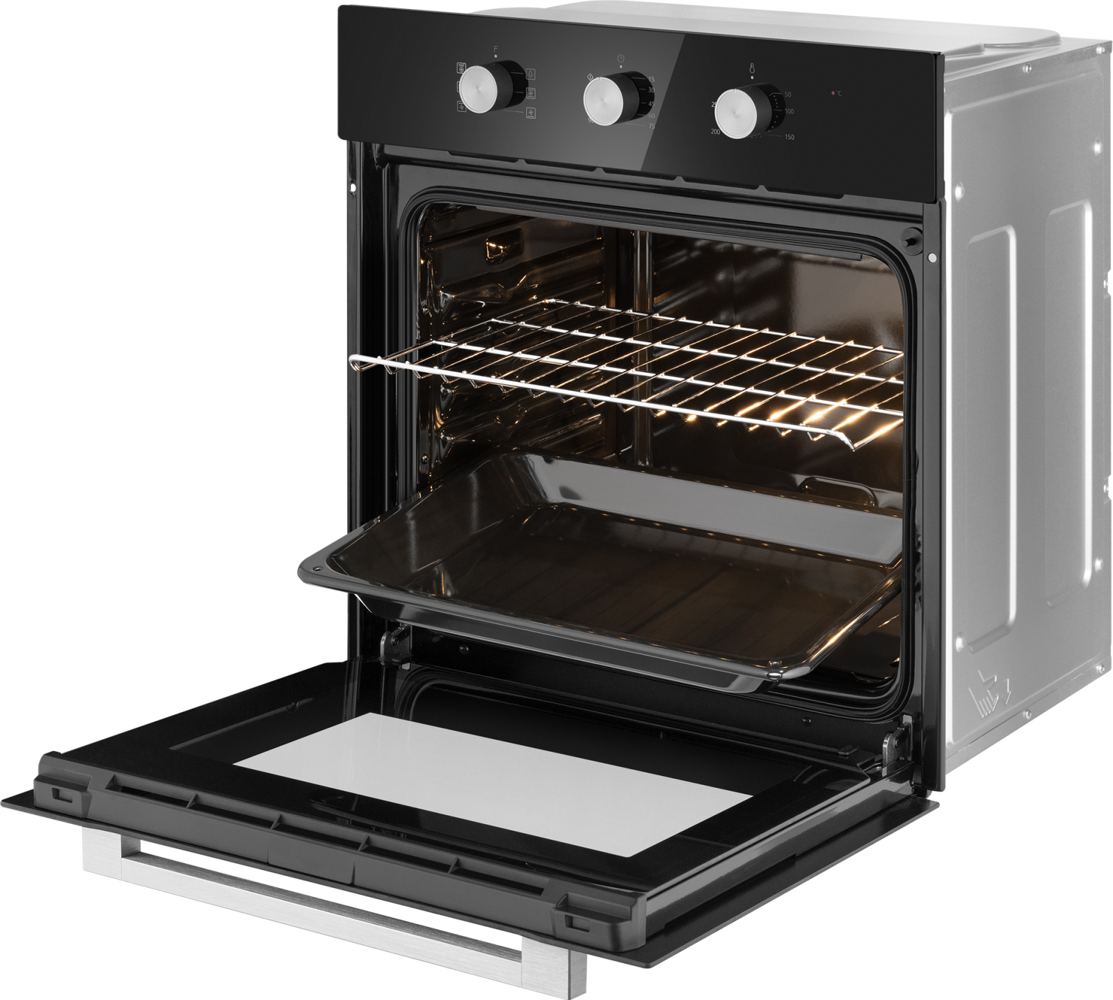 Электрический духовой шкаф от Weissgauff, выполненный в чёрном цвете, оснащённый механическими поворотными рукоятками Soft Switch, двойным остеклением дверцы и 6 режимами, буквально олицетворяет собой уверенность в надёжном и функциональном оснащении вашей кухни!