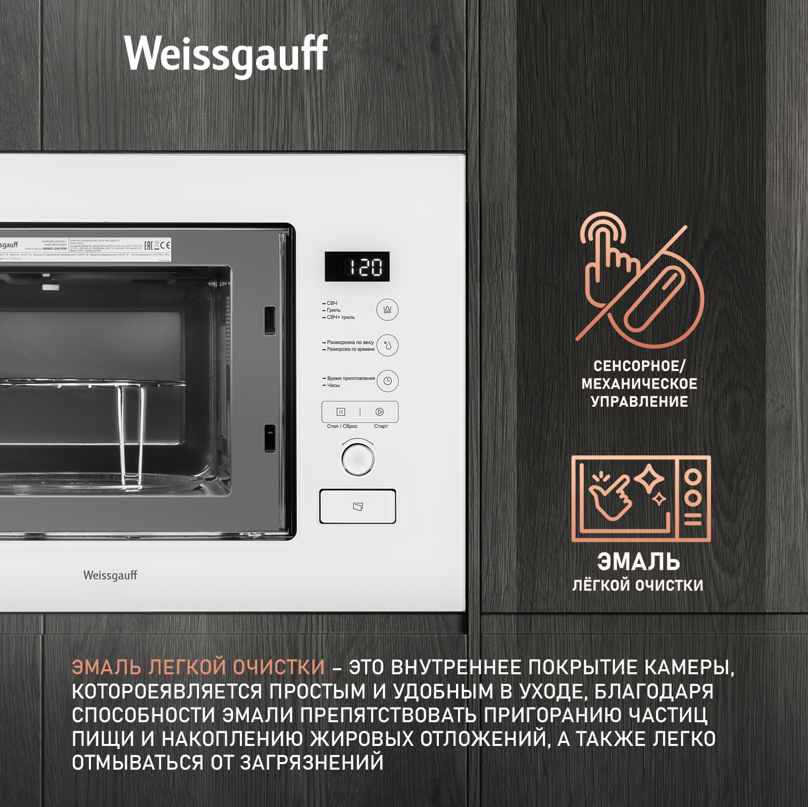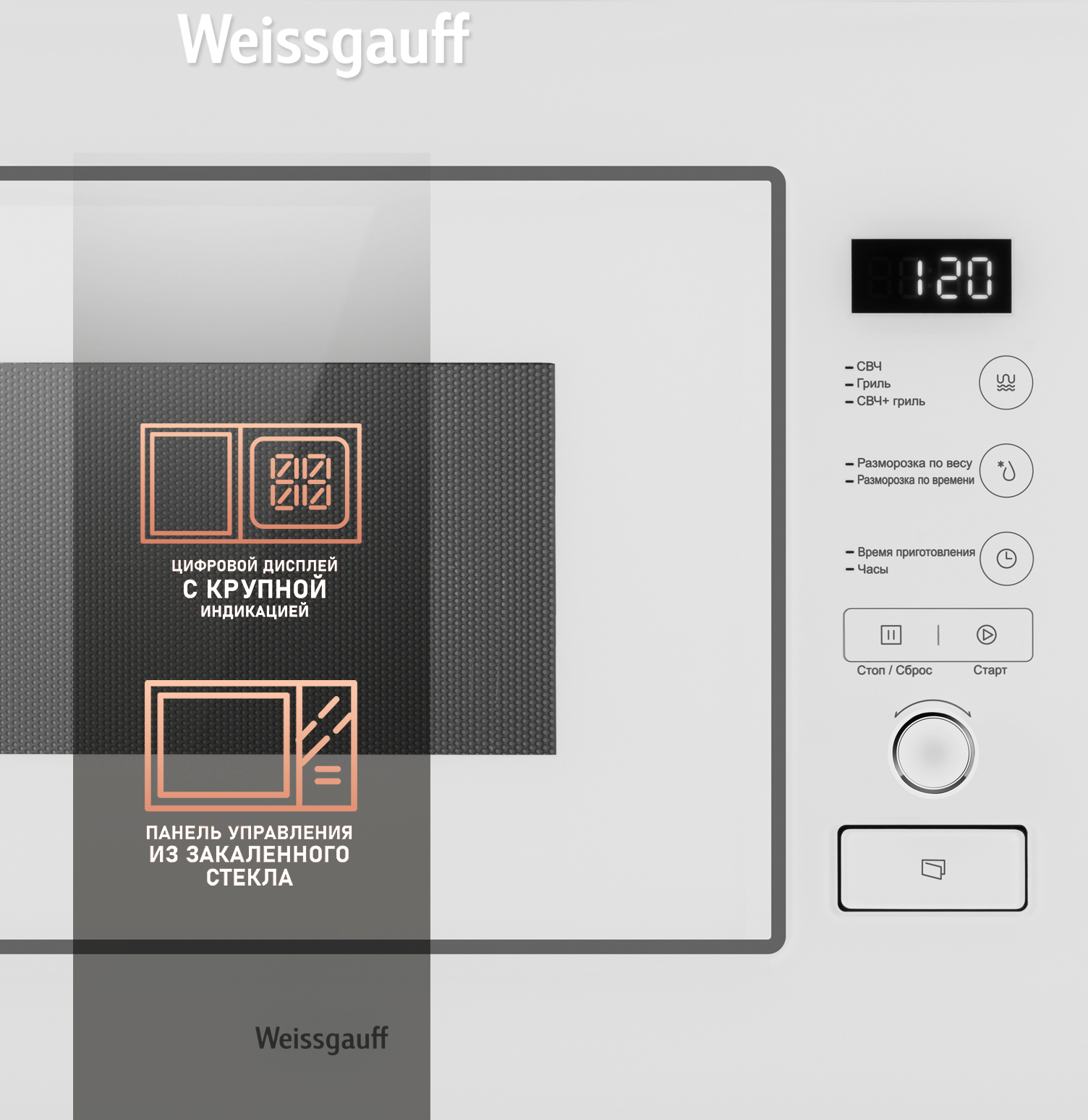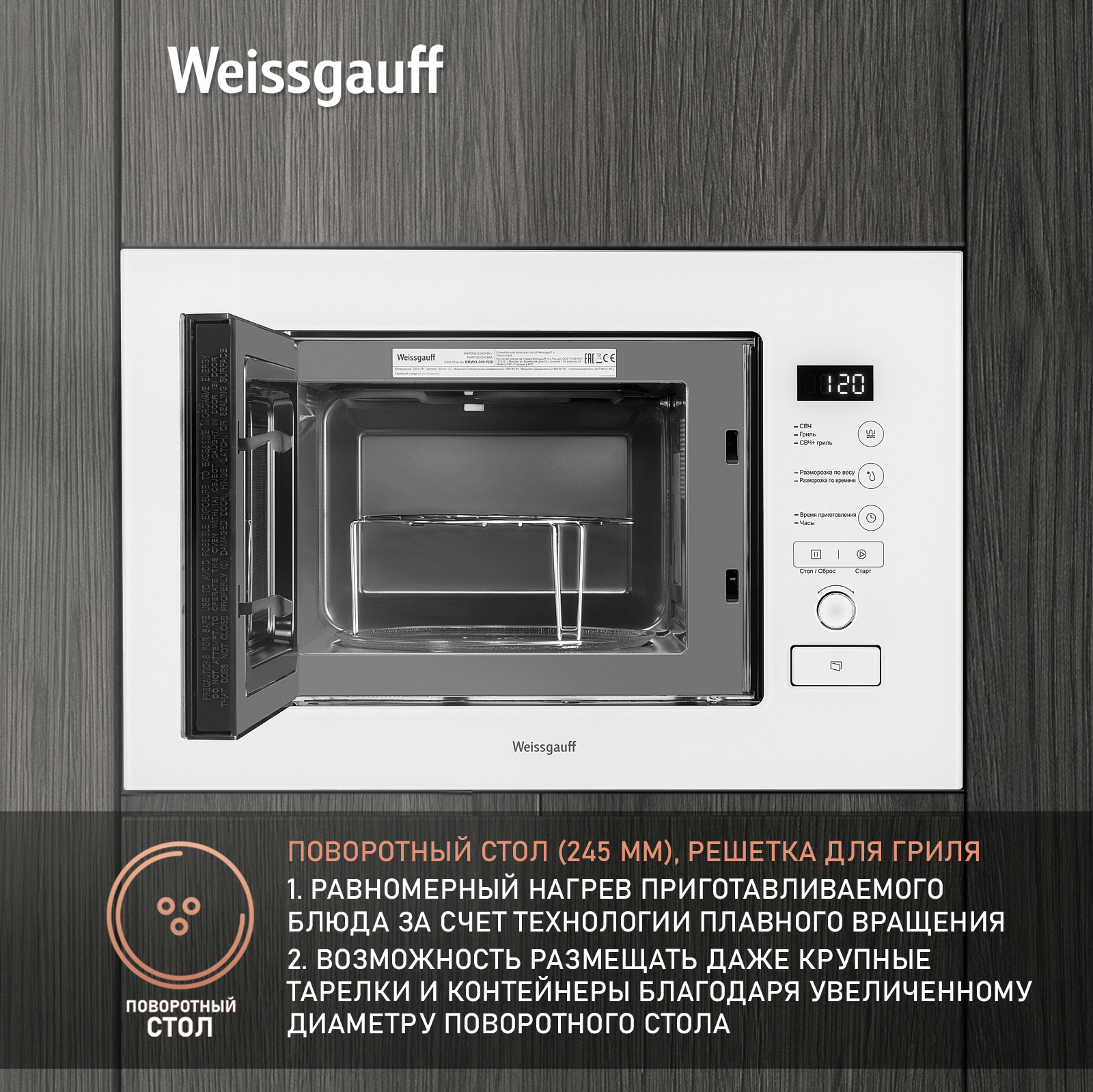 Встраиваемая микроволновая печь Weissgauff с объемом 20 литров, выполненная в белом цвете, равномерно разогревает еду при помощи поворотного стола, а также оснащена грилем с возможностью работы в комбинированном режиме!
