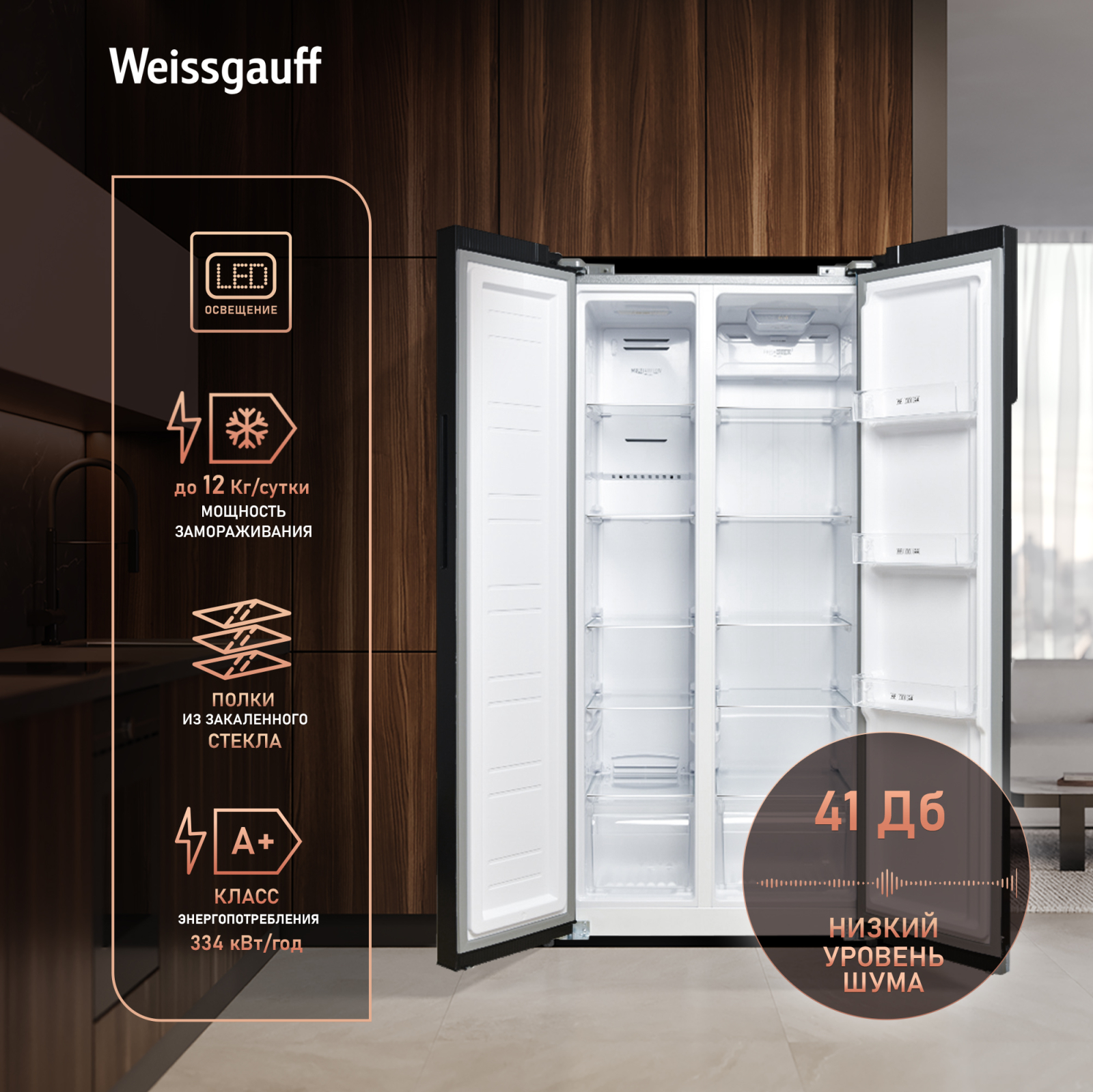 Класс энергопотребления А+ позволит вам еще раз убедиться в том, что Weissgauff способны создавать по-настоящему эффективные устройства, не расходующие при этом больше электричества, чем необходимо!