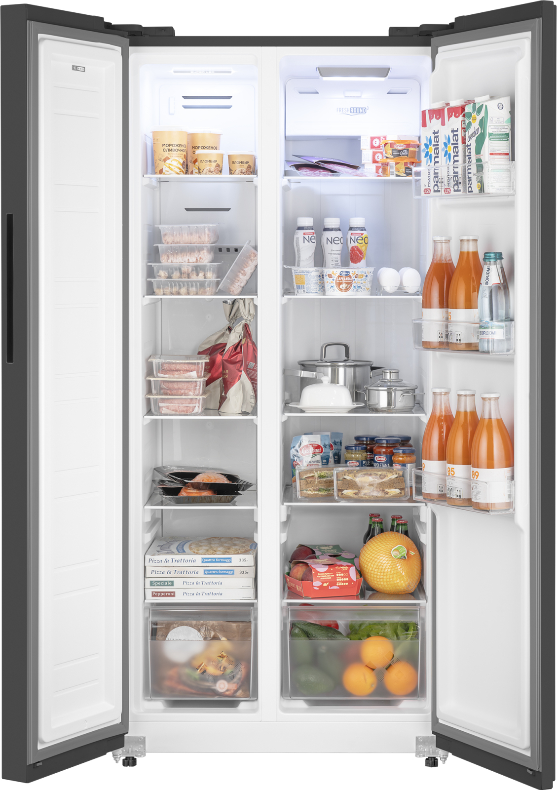 Отдельностоящий холодильник Weissgauff, выполненный в современном европейском дизайне Side-by-Side в сером цвете, обладающий полной системой размораживания Full No Frost и полностью электронным управлением - это соотношение фантастической вместительности, безупречной эргономики внутреннего пространства, технологического совершенства и великолепного дизайна!