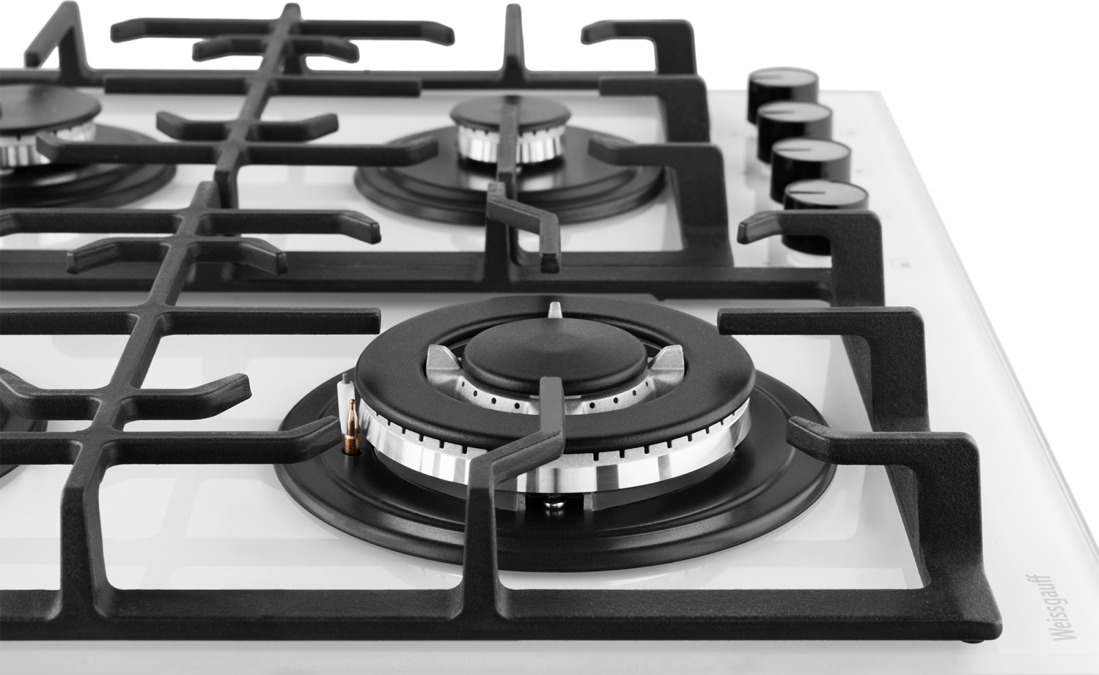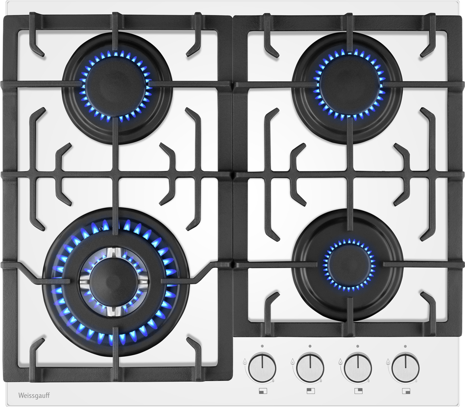 Встраиваемая независимая газовая панель Weissgauff шириной 60 см, исполненная в закалённом белом стекле - это стильное и компактное решение для вашей кухни!
