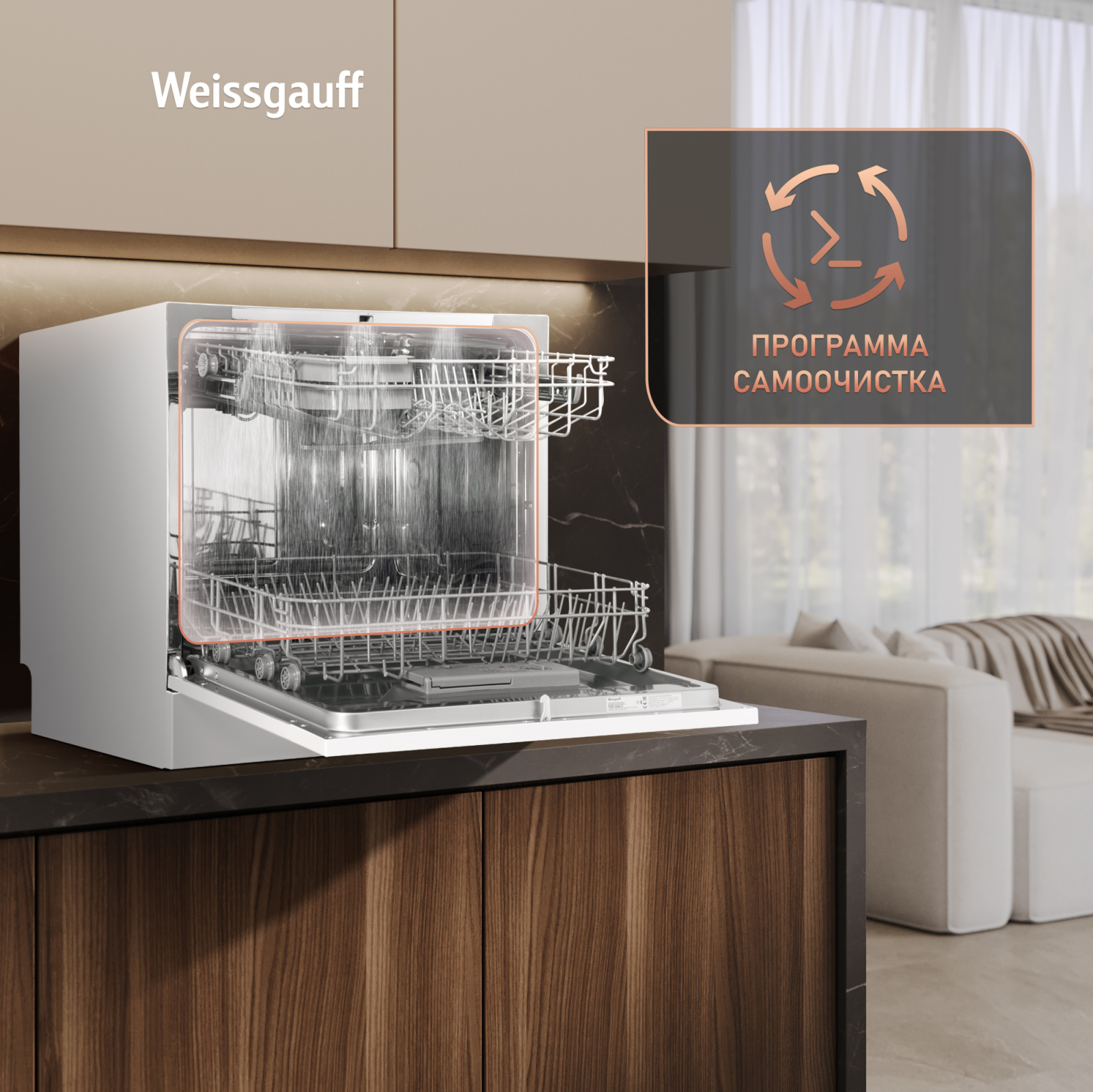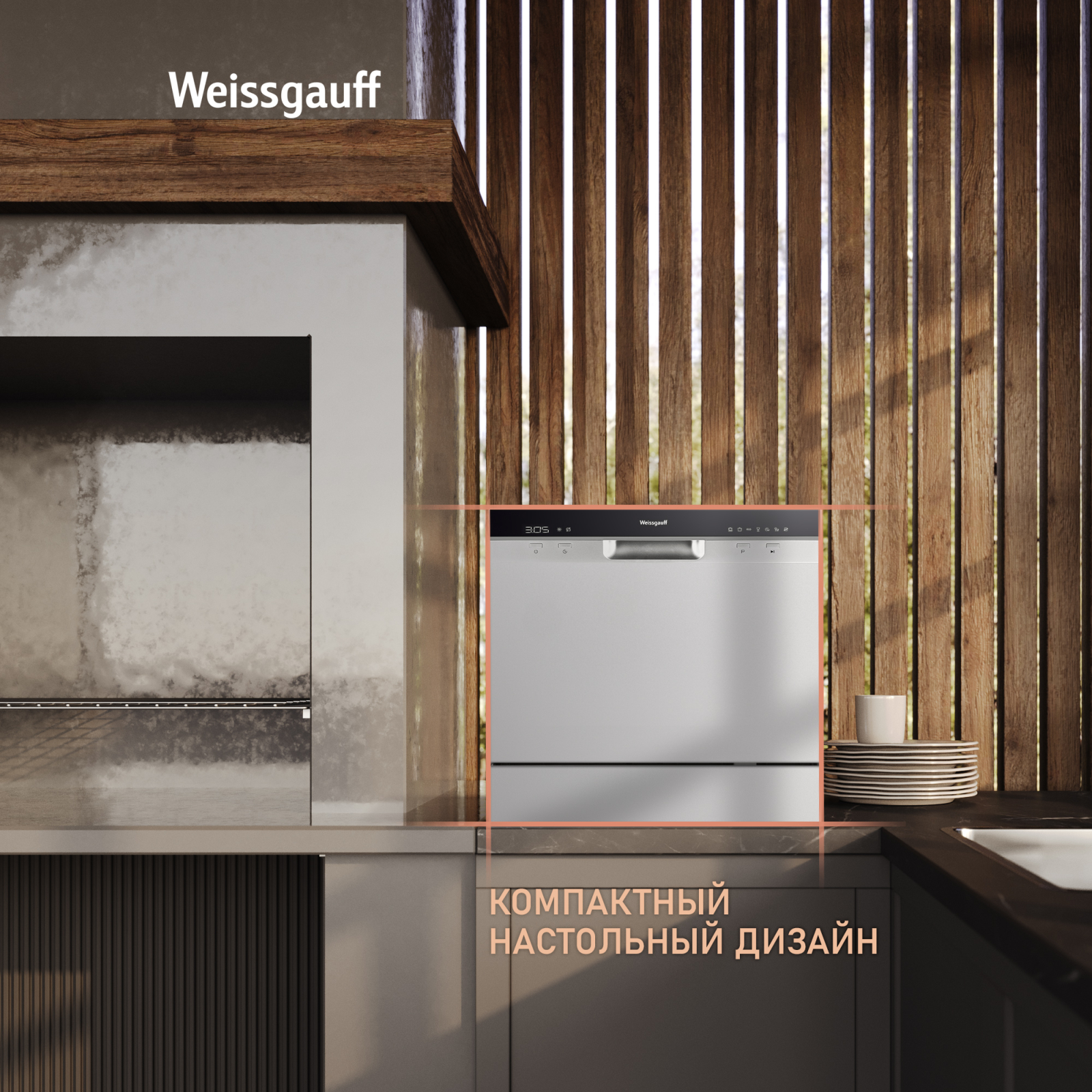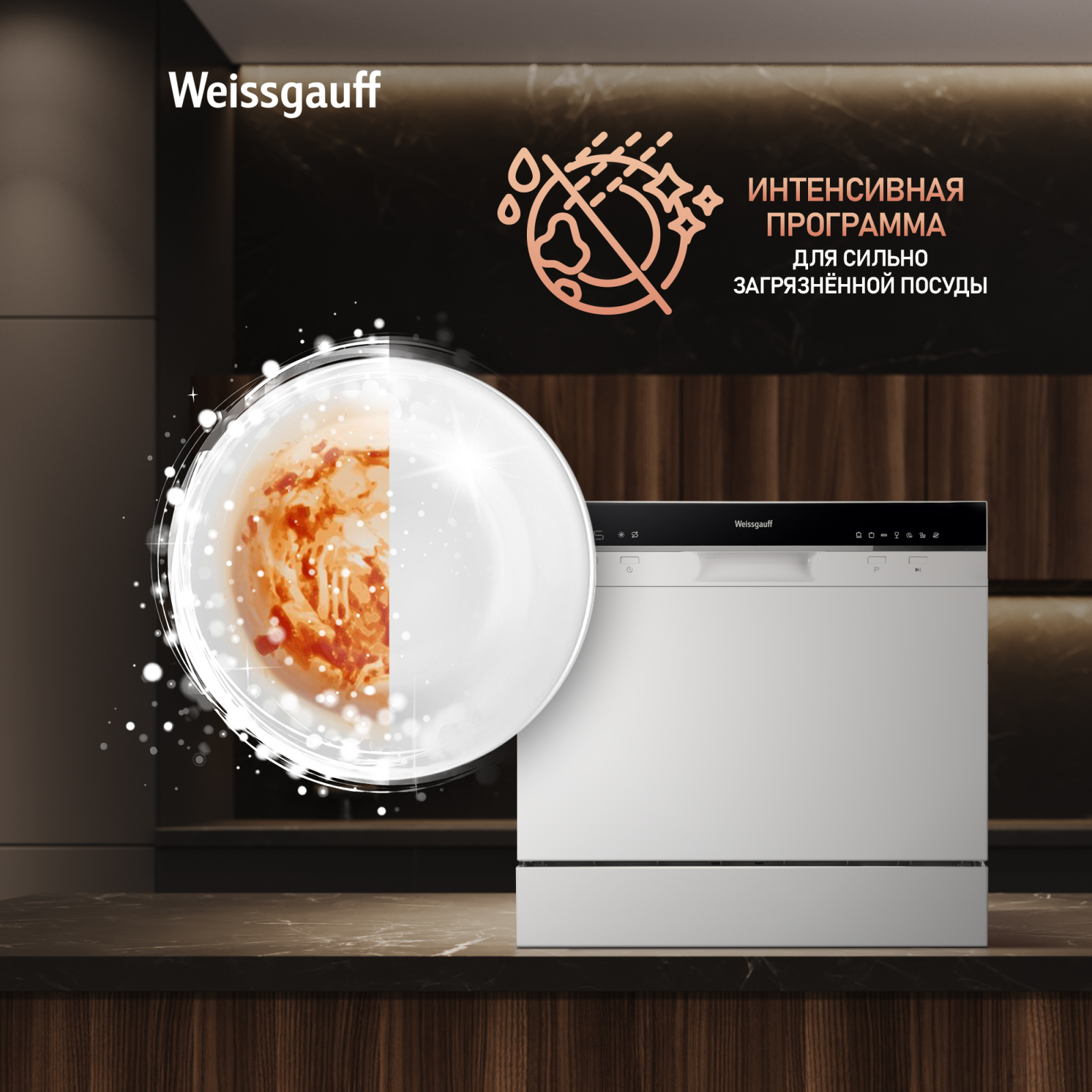 Настольная посудомоечная машина Weissgauff, рассчитанная на 8 комплектов посуды, имеющая функцию самоочистки, полностью электронное управление и богатый набор из 7 программ - это модель, которая отличается не только компактностью, но и высокой и функциональностью.