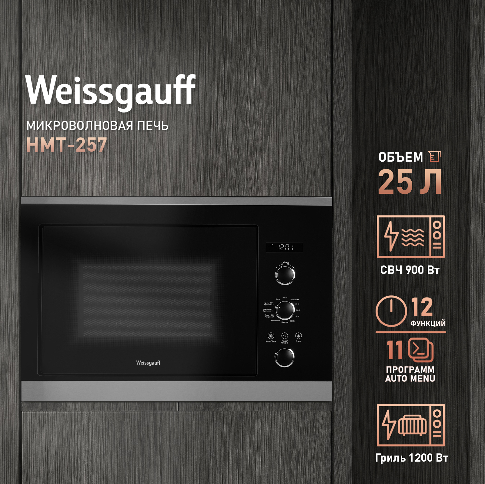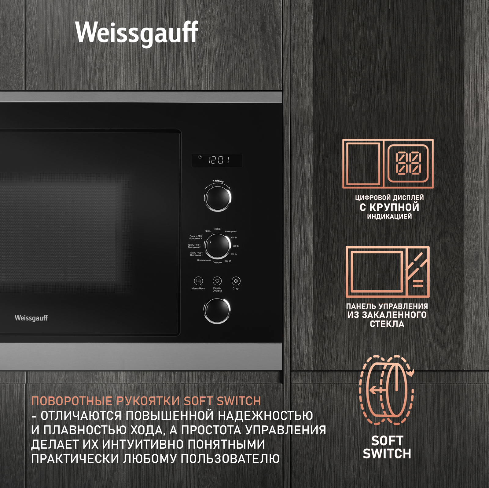 Дизайн, выполненный в черном цвете, станет финальным штрихом в совершенстве великолепного облика этой модели. Каждый раз, взаимодействуя с вашей микроволновой печью от Weissgauff, вы будете чувствовать, что это не только функциональное устройство, но и настоящее украшение вашей кухни!