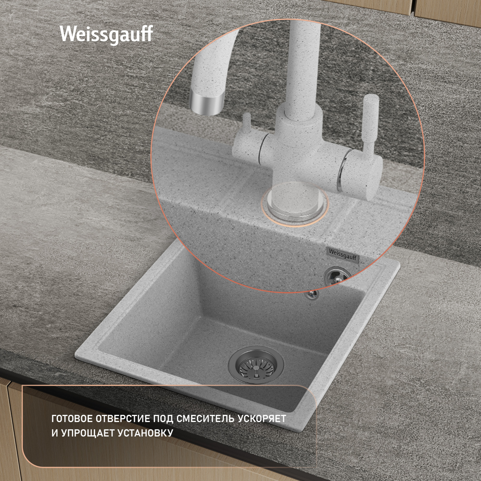 Weissgauff Comfort WG 406 - односекционная компактная кухонная мойка, с отверстием под смеситель. Данная мойка устанавливается в шкаф шириной от 45 см и подходит для малогабаритной квартиры. В комплектацию входит сливная арматура с гофротрубой, технический паспорт и гарантийный талон. Существует возможность установки дозатора или других аксессуаров - доп. отверстие в таком случае потребитель делает самостоятельно с помощью фрезы Форстнера (не входит в комплектацию и приобретается отдельно). Заводская гарантия составляет 3 года, а срок службы данной мойки, при соблюдении основных правил ухода за ней, составляет более 10 лет.