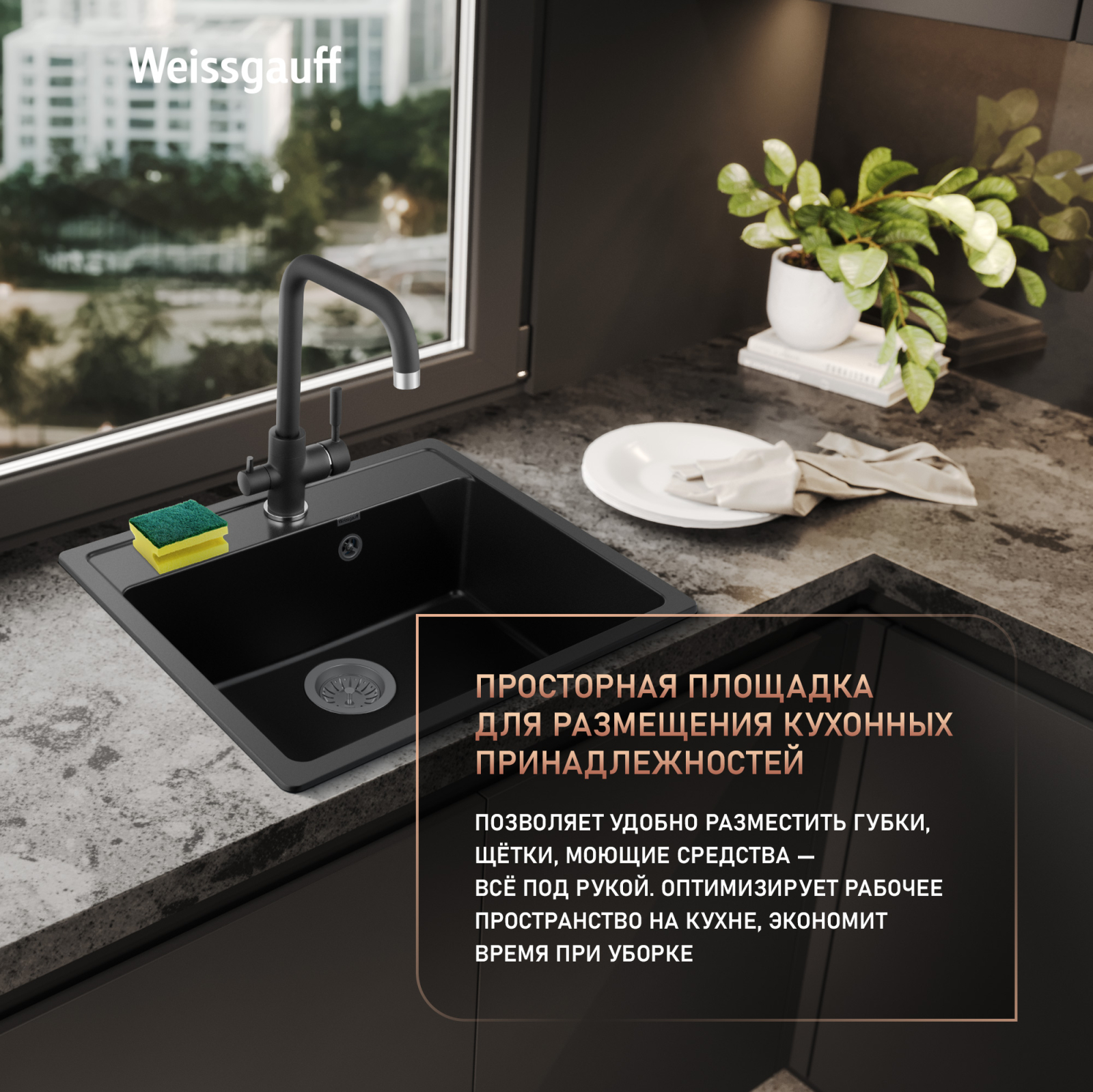 Современный дизайн, выполненный в ультра-черном цвете не только делает данную мойку по-настоящему качественным и функциональным приобретением, но и позволит гармонично дополнить интерьер кухни, отражая совершенство вашего стиля и вкуса!