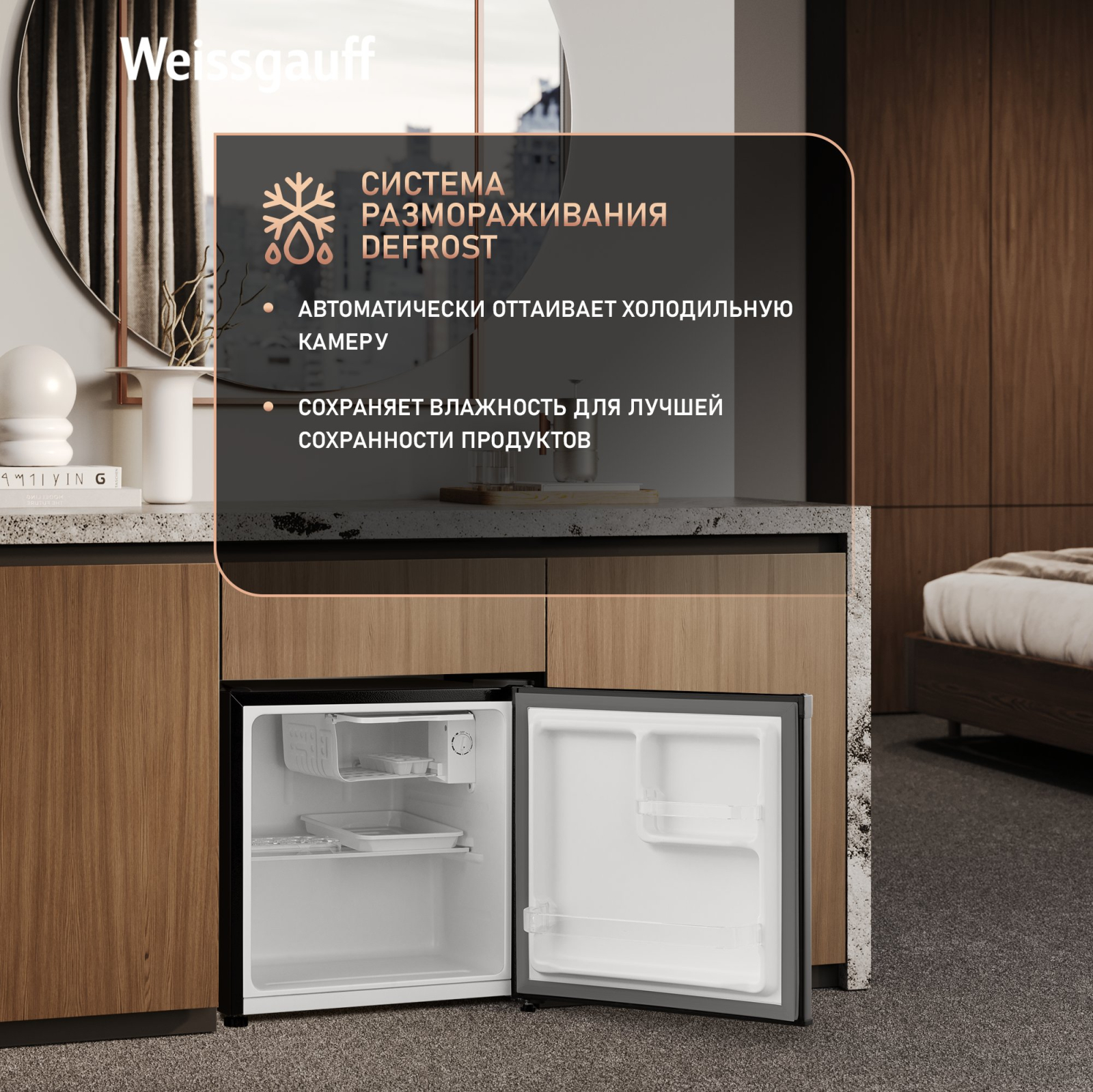 Отдельностоящий компакт-холодильник Weissgauff, выполненный в черном цвете, обладающий великолепной эргономичностью при компактных размерах, а также надежным электромеханическим управлением, — это настоящее воплощение основного принципа Weissgauff «Качество, доступное каждому»!