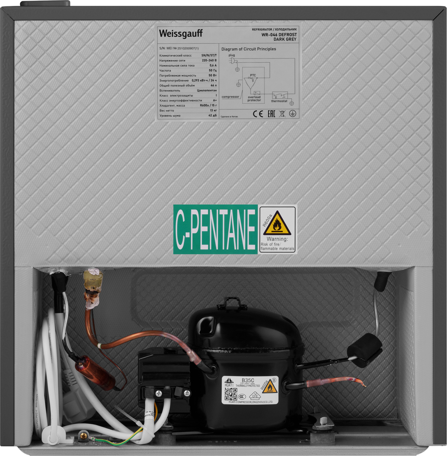 Отдельностоящий компакт-холодильник Weissgauff, выполненный в темно-сером цвете, обладающий великолепной эргономичностью при компактных размерах, а также надежным электромеханическим управлением, — это настоящее воплощение основного принципа Weissgauff «Качество, доступное каждому»!