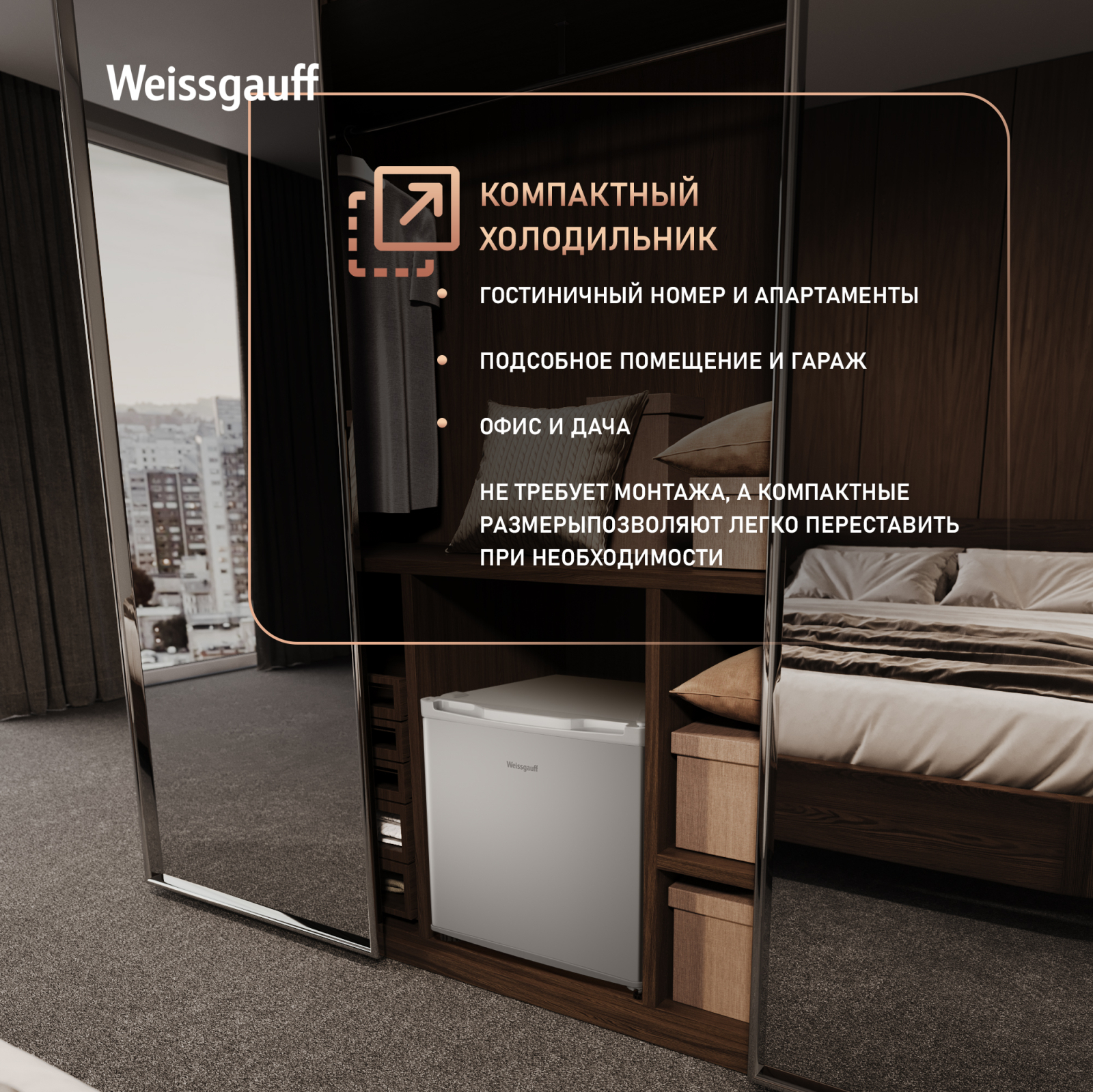 Отдельностоящий компакт-холодильник Weissgauff, выполненный в сером цвете, обладающий великолепной эргономичностью при компактных размерах, а также надежным электромеханическим управлением, — это настоящее воплощение основного принципа Weissgauff «Качество, доступное каждому»!