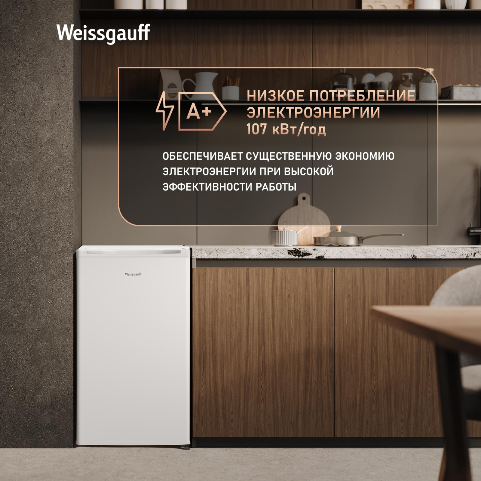 • Класс энергопотребления А+ позволит вам еще раз убедиться в том, что Weissgauff способны создавать по-настоящему эффективные устройства, не расходующие при этом больше электричества, чем необходимо!