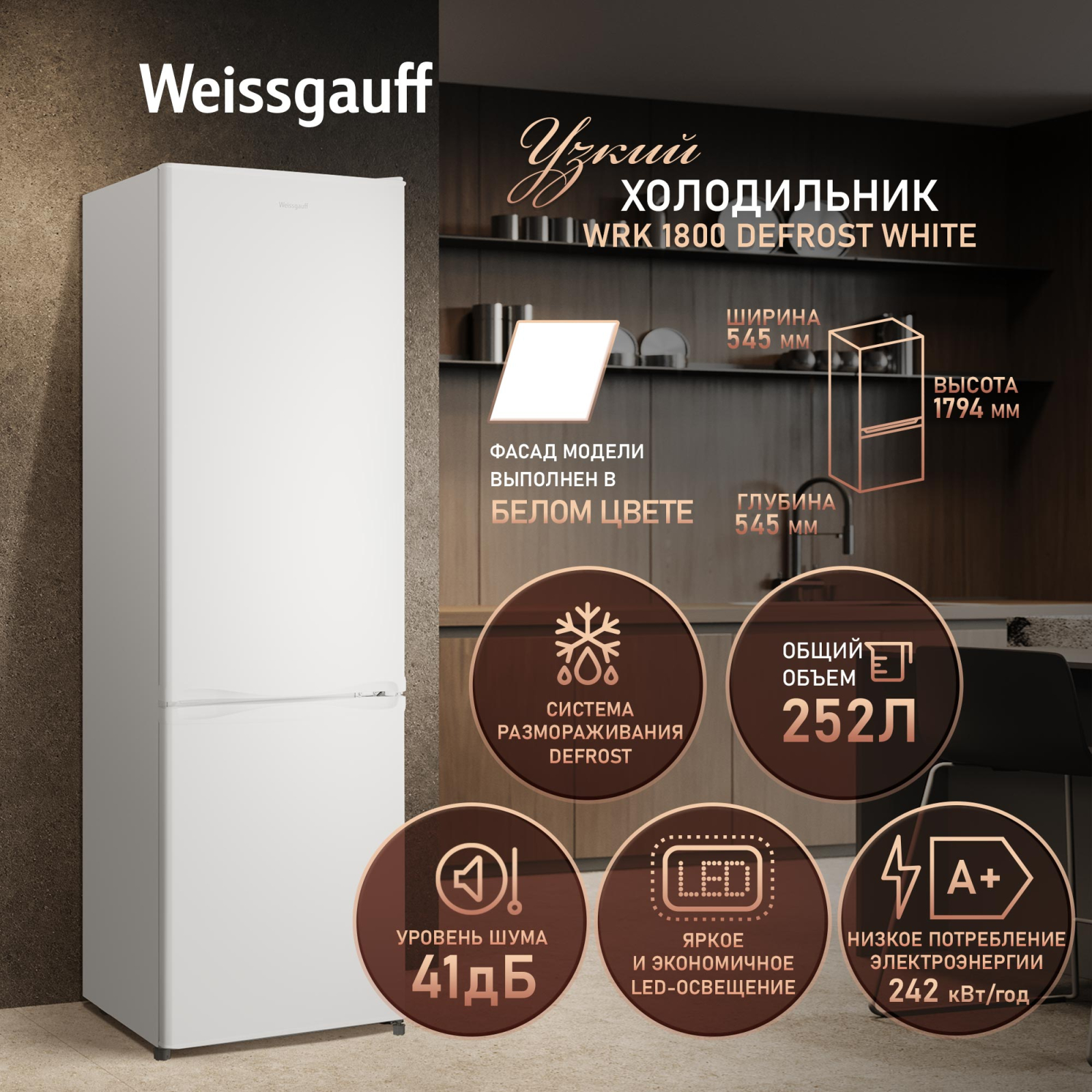 Габариты устройства 545 х 545 х 1794 мм - это оптимальные параметры, при выборе которых инженеры Weissgauff руководствовались целью создать для вас максимально вместительный и функциональный холодильник, который при этом окажется удобен в установке и не будет занимать лишнее место на вашей кухне!