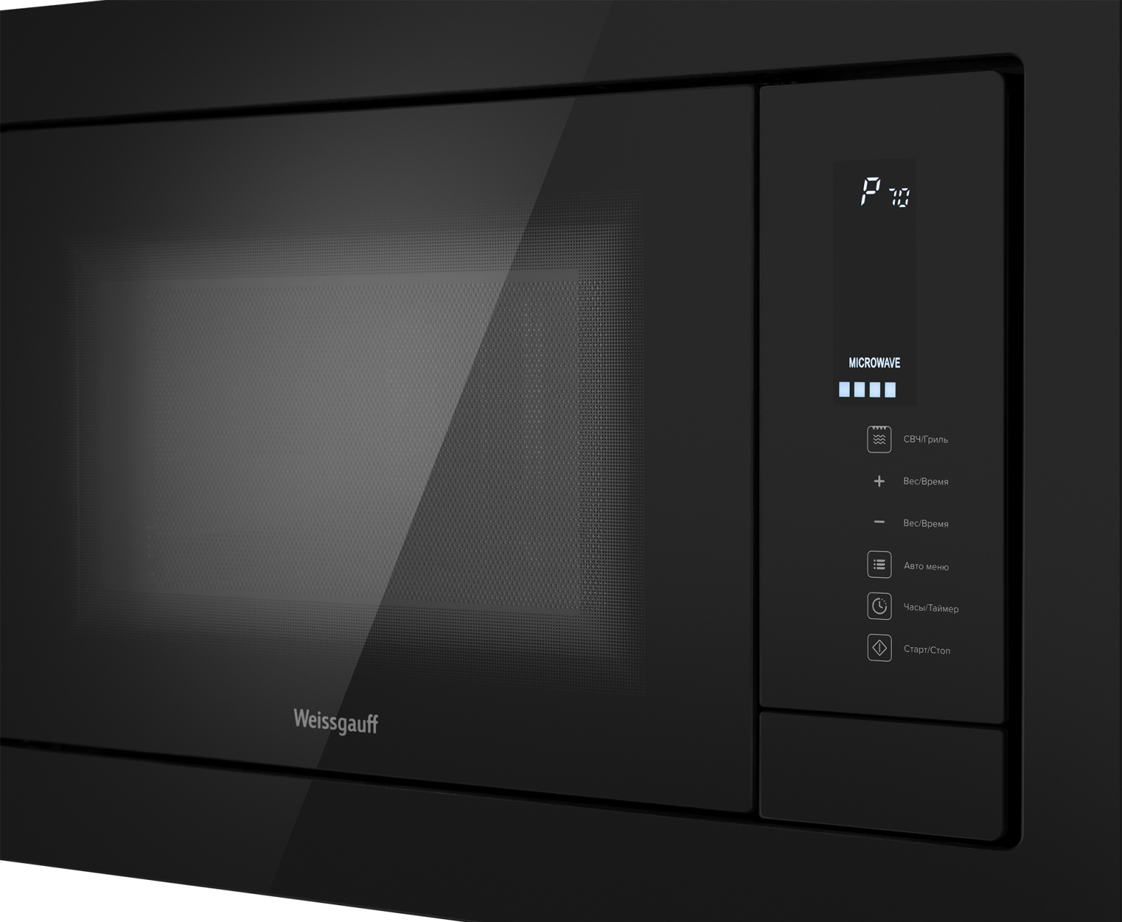 Встраиваемая микроволновая печь Weissgauff с объемом 25 литров, выполненная в черном цвете, равномерно разогревает еду при помощи поворотного стола, а также оснащена грилем с возможностью работы в комбинированном режиме и набором программ автоменю!