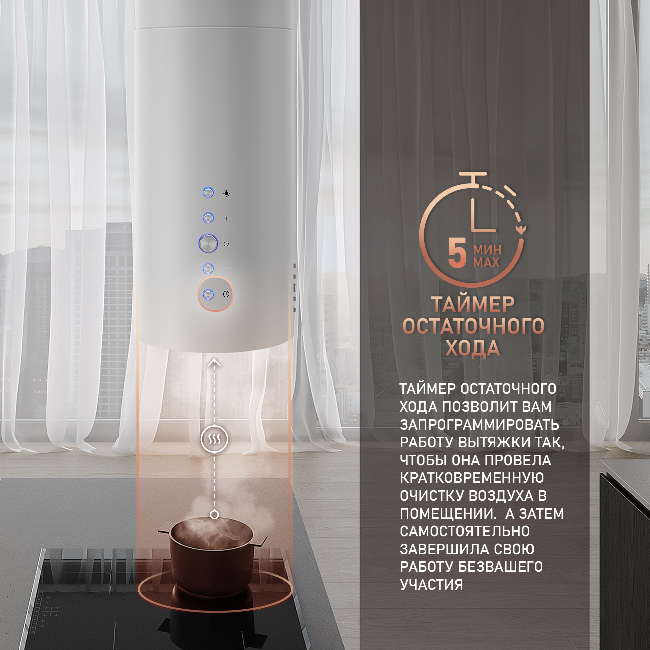 Впечатляющая производительность 1200 м3/ч обеспечит эффективную очистку воздуха во всем помещении, делая комфортной работу на кухне и сохраняя ваше здоровье на долгие годы!