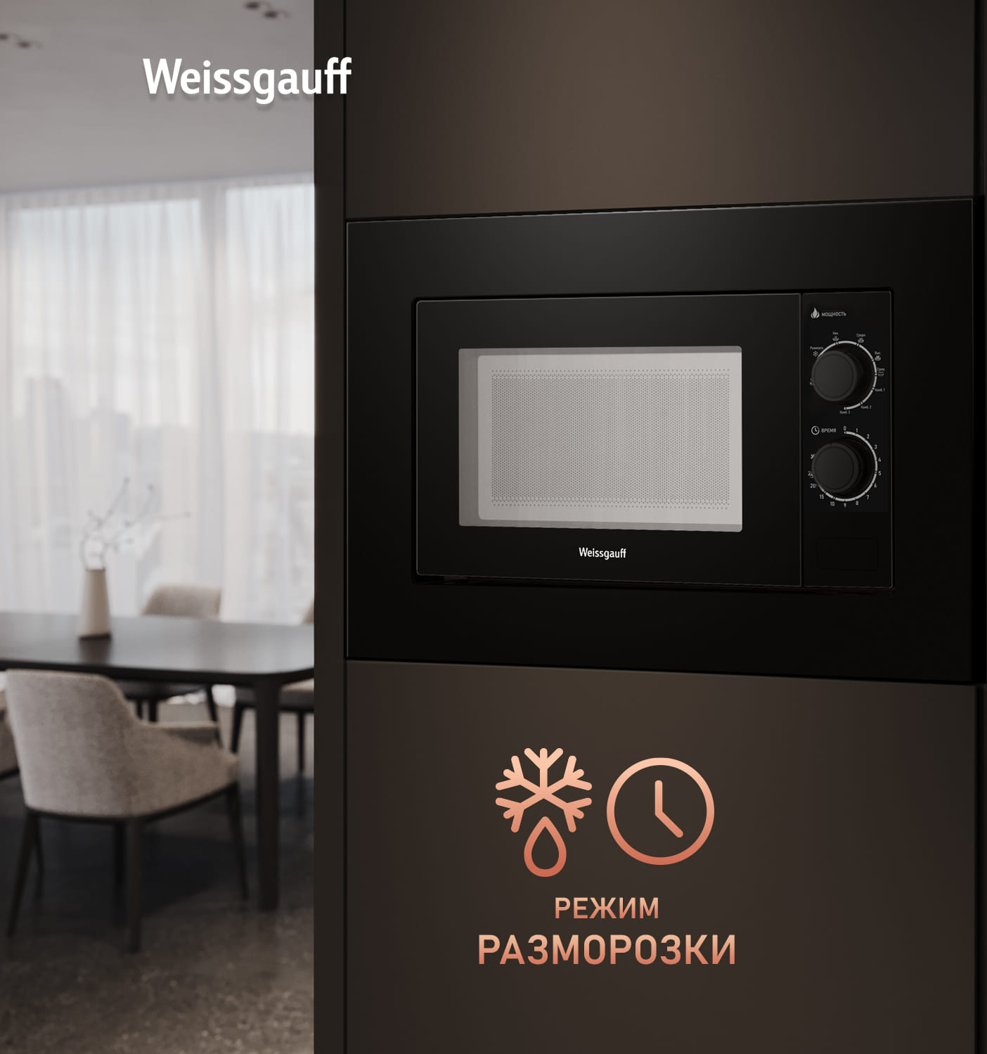 Дизайн, выполненный в черном цвете, станет финальным штрихом в совершенстве великолепного облика этой модели. Каждый раз, взаимодействуя с вашей микроволновой печью от Weissgauff, вы будете чувствовать, что это не только функциональное устройство, но и настоящее украшение вашей кухни!