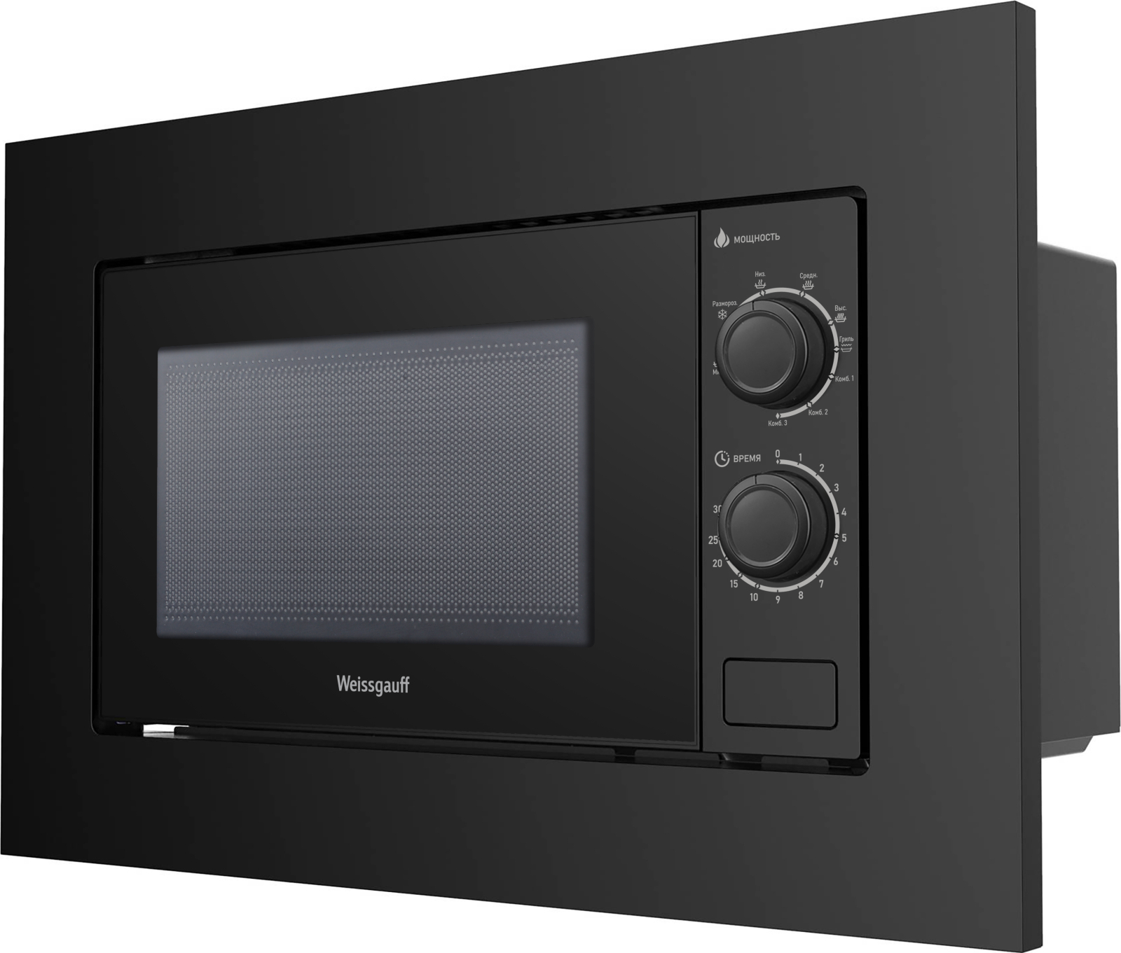 Встраиваемая микроволновая печь Weissgauff с объемом 20 литров, выполненная в черном цвете, оснащенная механическими поворотными рукоятками Soft Switch, равномерно разогревает еду при помощи поворотного стола, а также оснащена грилем с возможностью работы в комбинированном режиме!