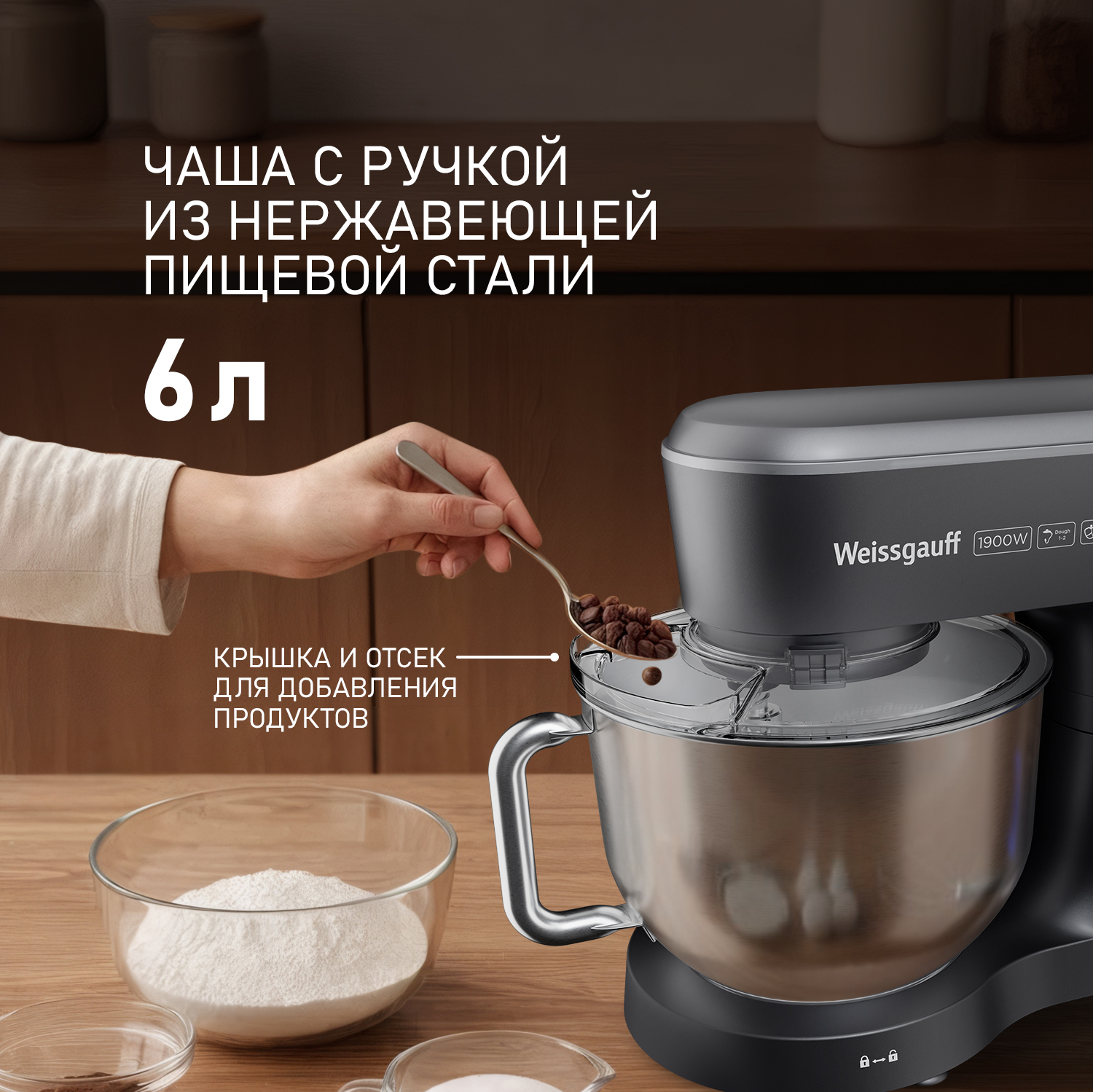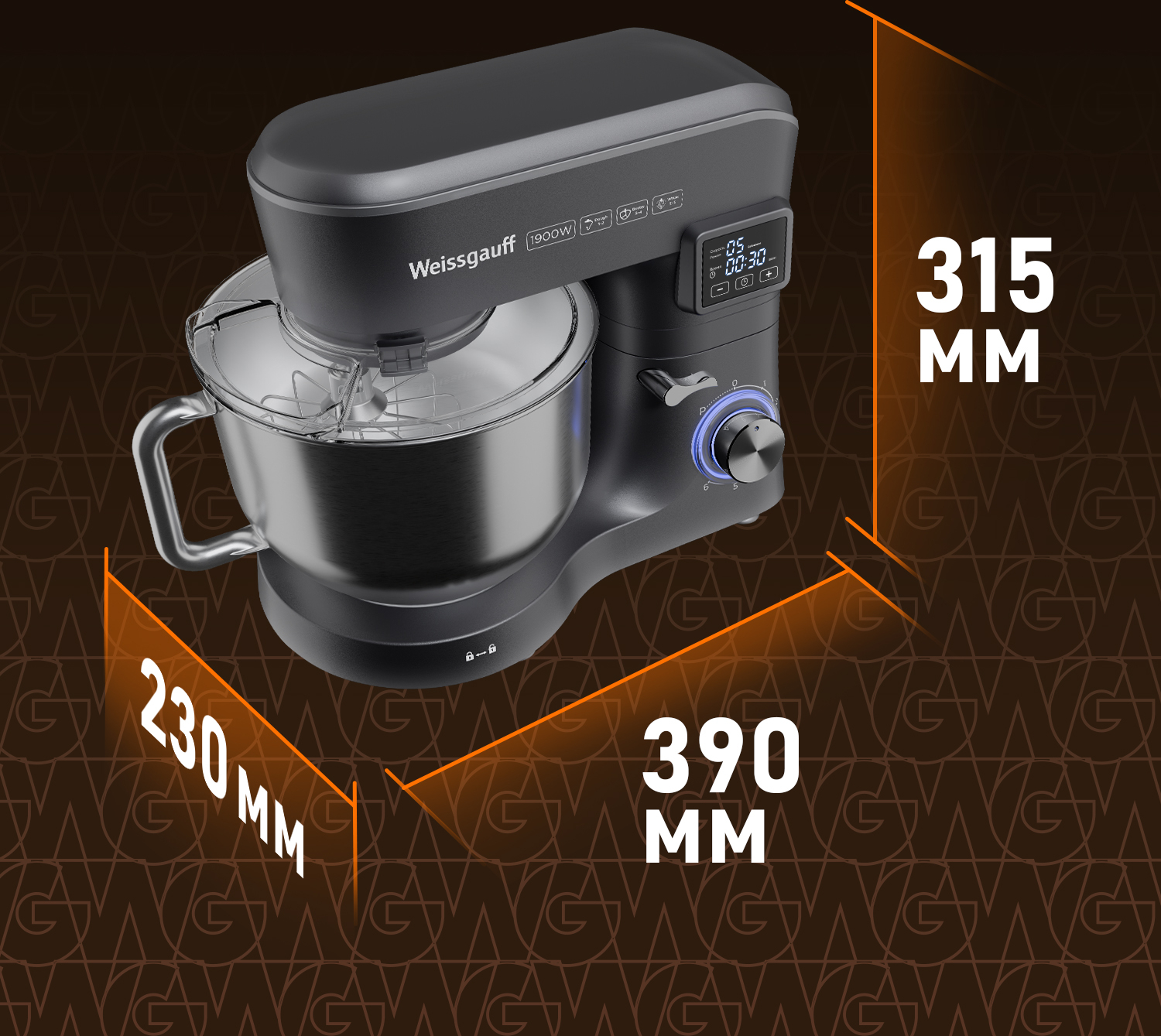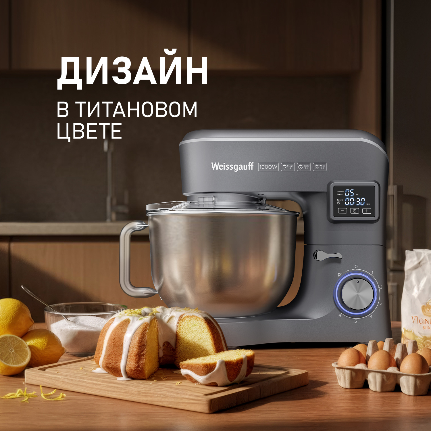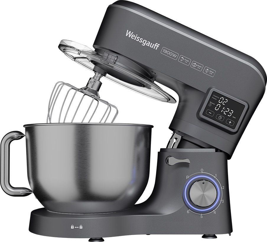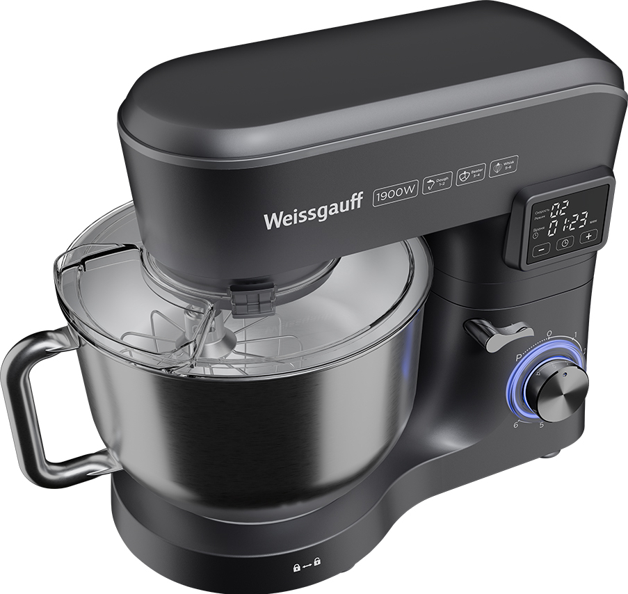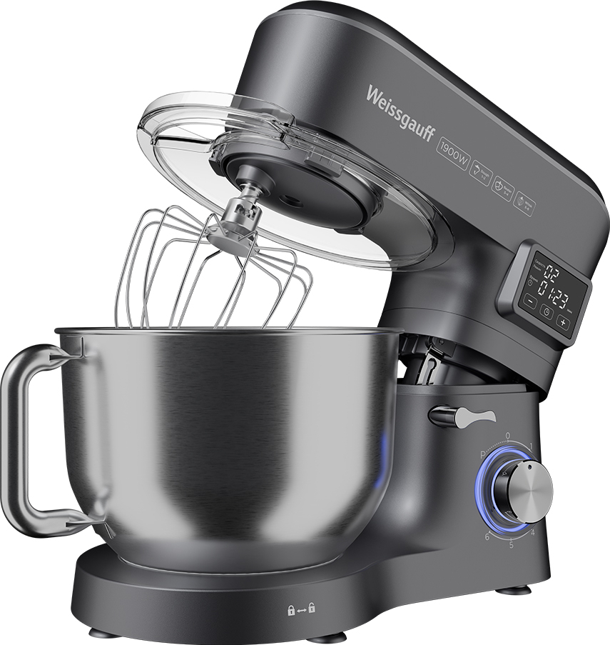 Электрический планетарный миксер от Weissgauff, обладающий впечатляющей мощностью 1900 Вт, оснащенный набором насадок для теста и для смешивания, венчиком для взбивания, а также удобной чашей с крышкой - это незаменимый помощник на вашей кухне, который поможет вам воплотить в реальность самые смелые кулинарные идеи!