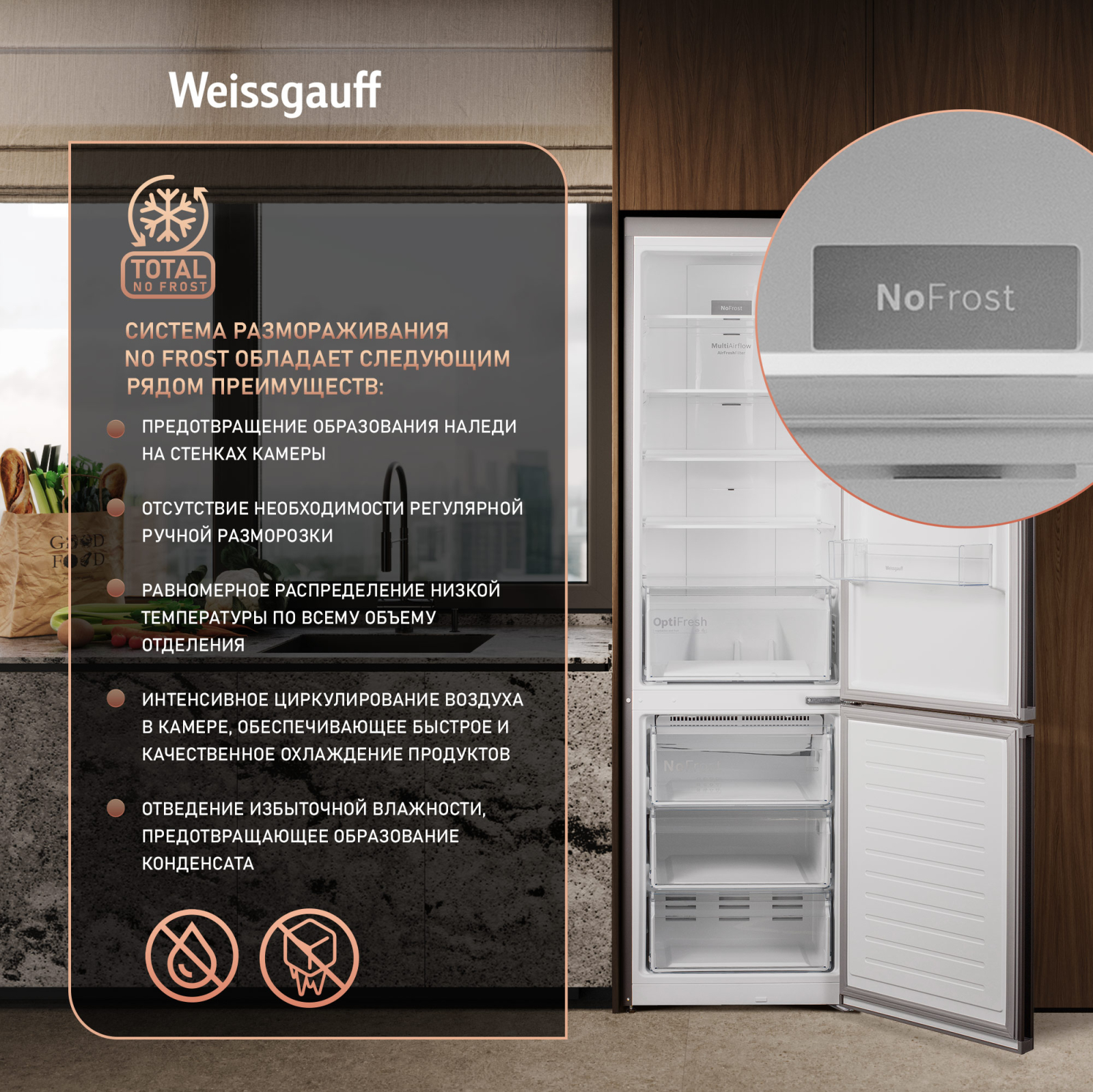 | Размораживание: | Full No Frost (система NoFrost и в холодильной, и в морозильной камерах) |