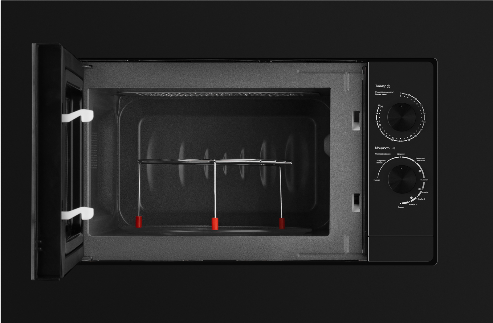 Встраиваемая микроволновая печь Weissgauff с объемом 20 литров, выполненная в черном закаленном стекле, равномерно разогревает еду при помощи поворотного стола, а также оснащена грилем с возможностью работы в комбинированном режиме!